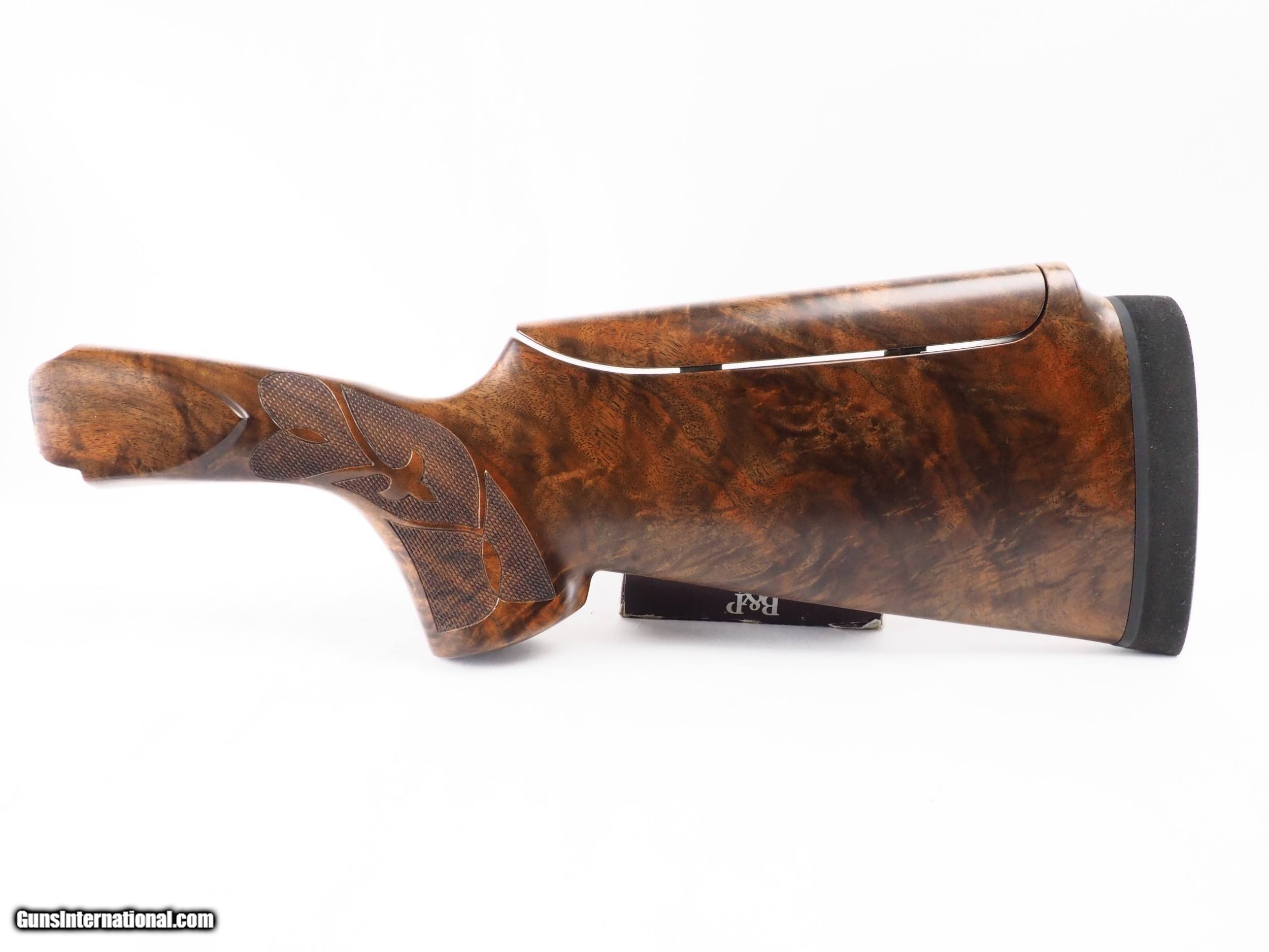 Description: Excellent condition RH stock set for Perazzi RS-height trap rib. Includes stock bolt, forearm for O/U barrels, and an additional forearm meant for a to-single barrel. As you can see in the photos, the wood is gorgeous! Length of pull is 14 1/4". The only cosmetic blemish is one small ding on the side of the stock. This stock set would easily cost $4k to have made. Outstanding value! SOLD |