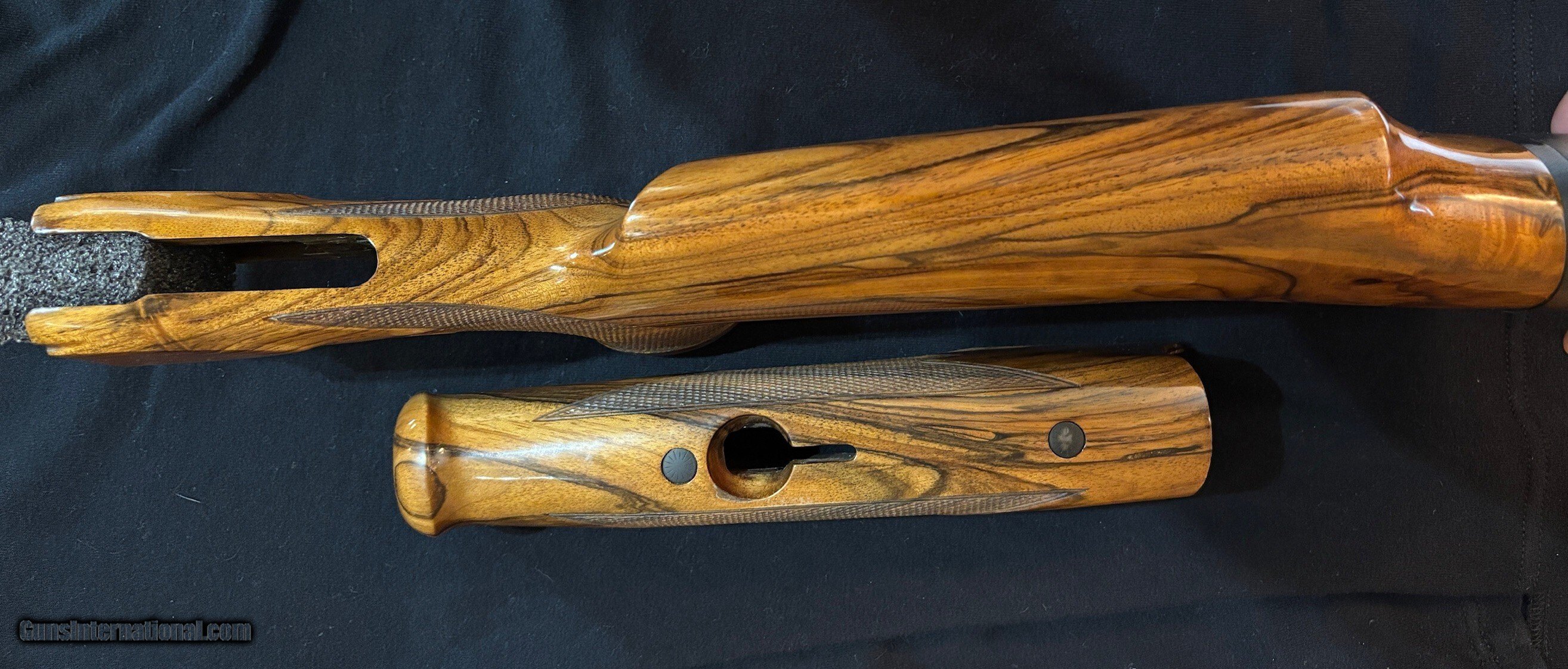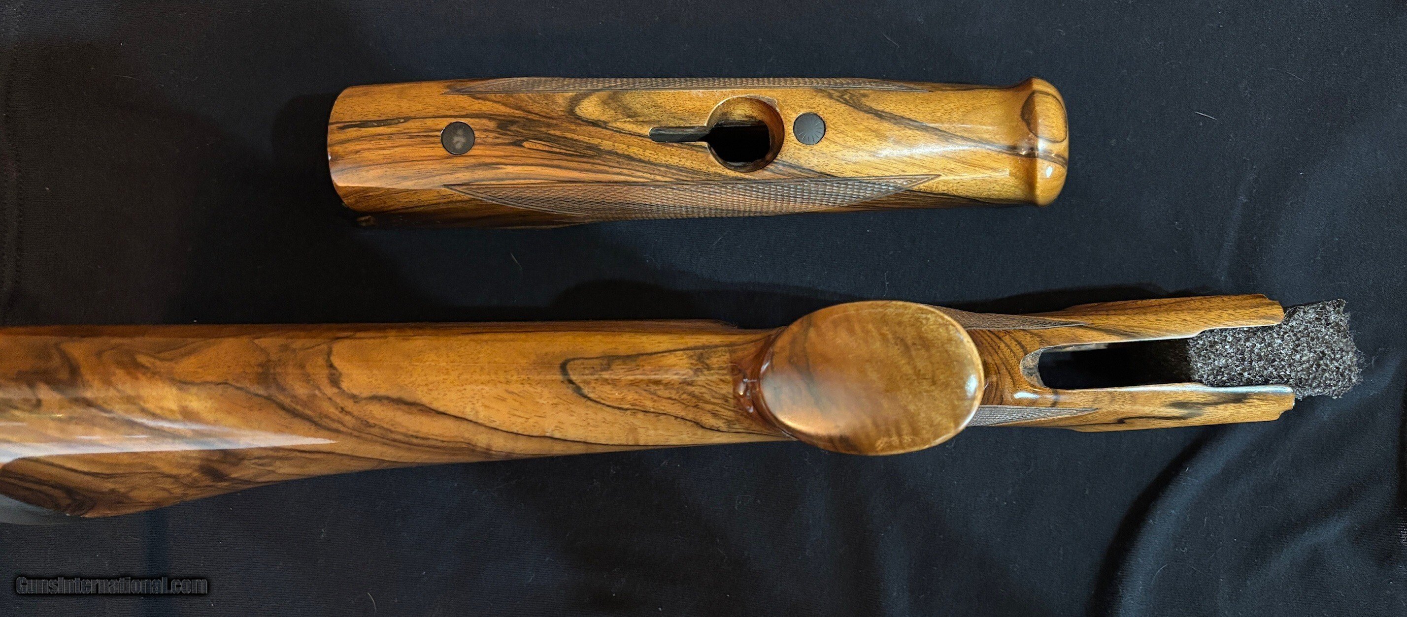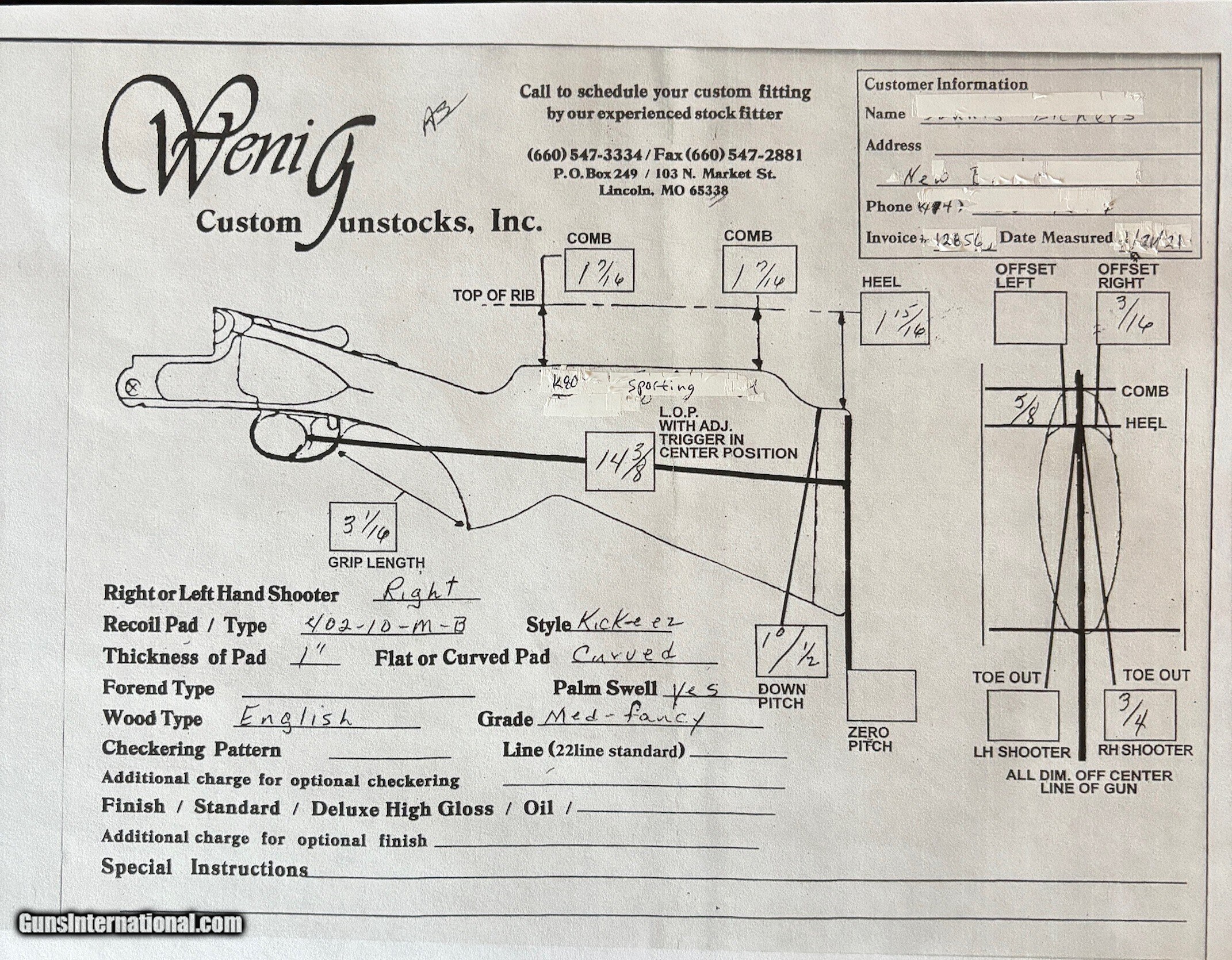 Description: I have a Custom Wenig Stock for a Krieghoff K80 available. Stock was built in 2021 for a Krieghoff K80 with a 32" Sporting barrel. Measurements are on the build sheet in the pics. The fore end will come with the blued rosettes installed as in the pictures and there is a stock bolt included. There is a slight imperfection in the finish on the pistol grip as shown in the pic, this is an indentation or dimple in the finish but the finish is there. Stock is in great condition as it was always carried in a gun slip on the course. This is a 50% or Medium Fancy select wood grade. The pictures should speak for themselves but feel free to contact with any questions. Thanks for Looking. Price: $2,500.00 Contact Seller |