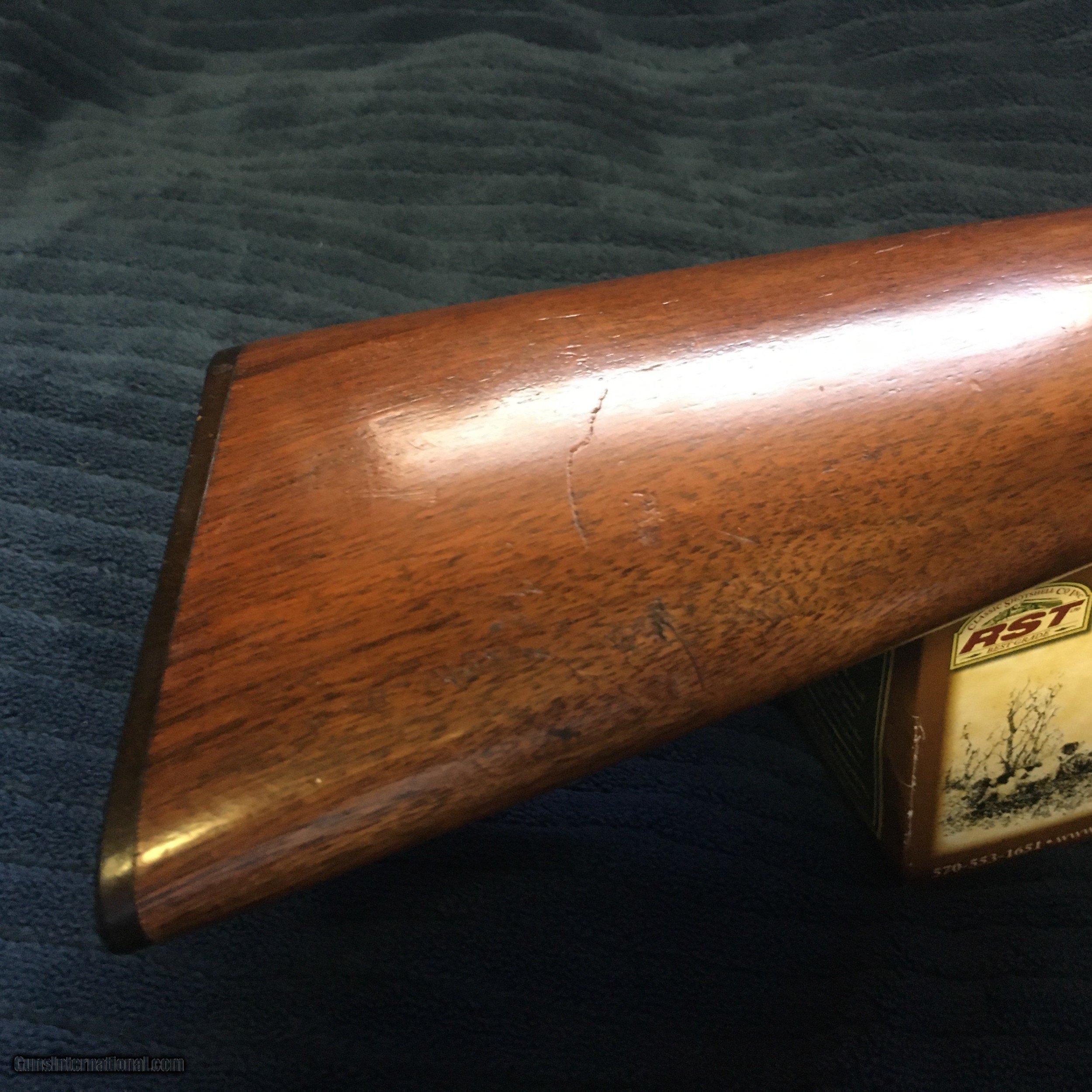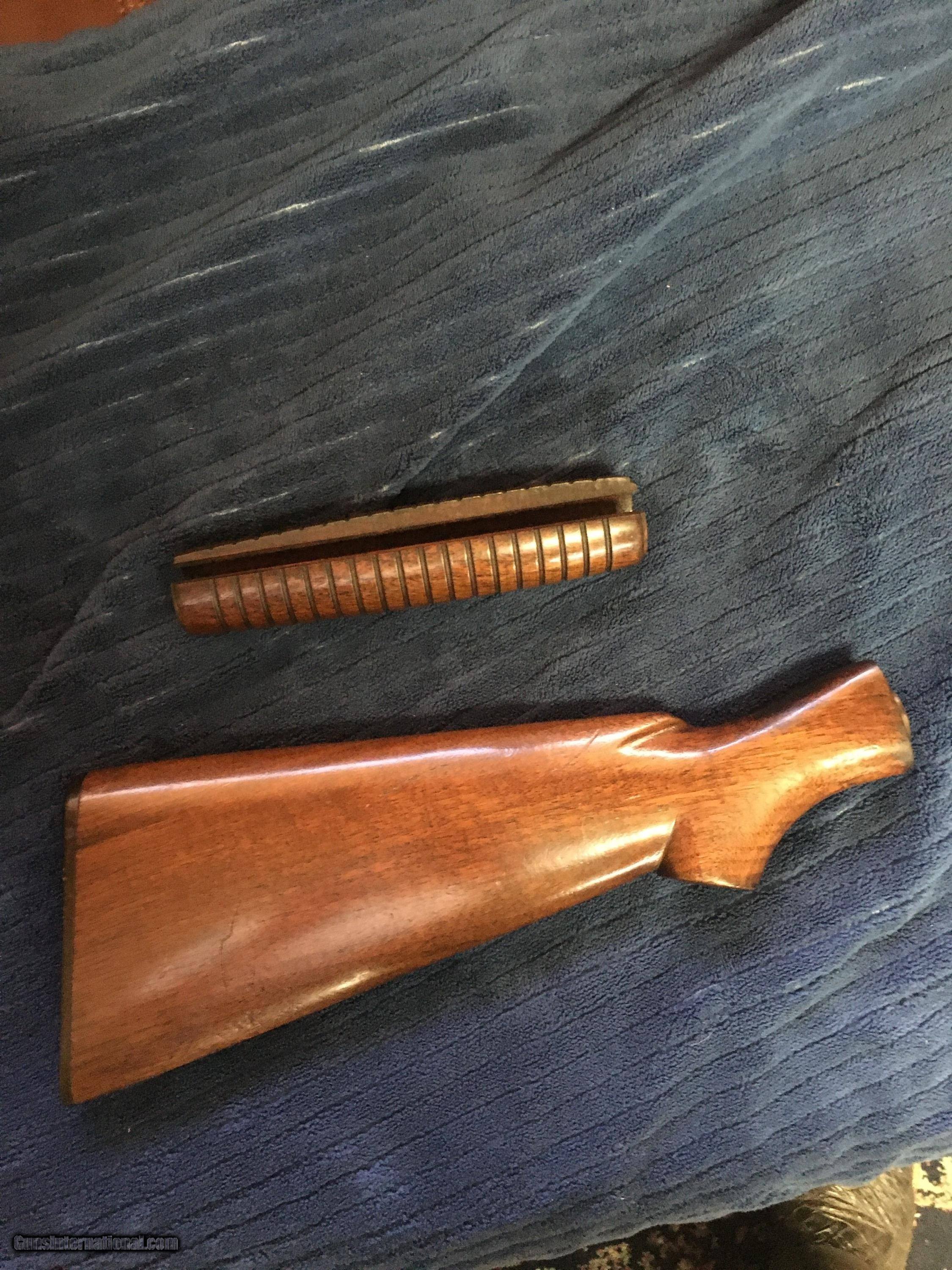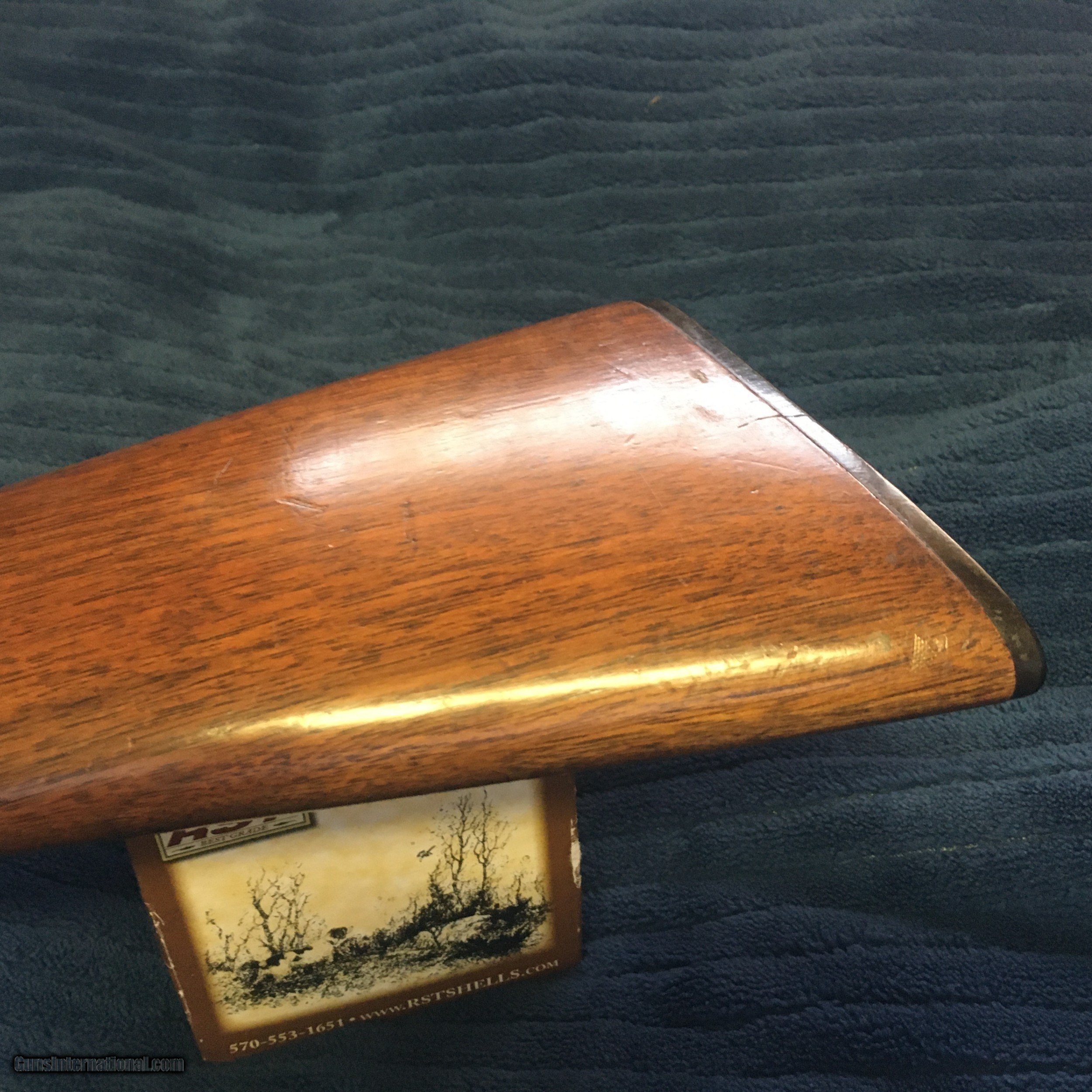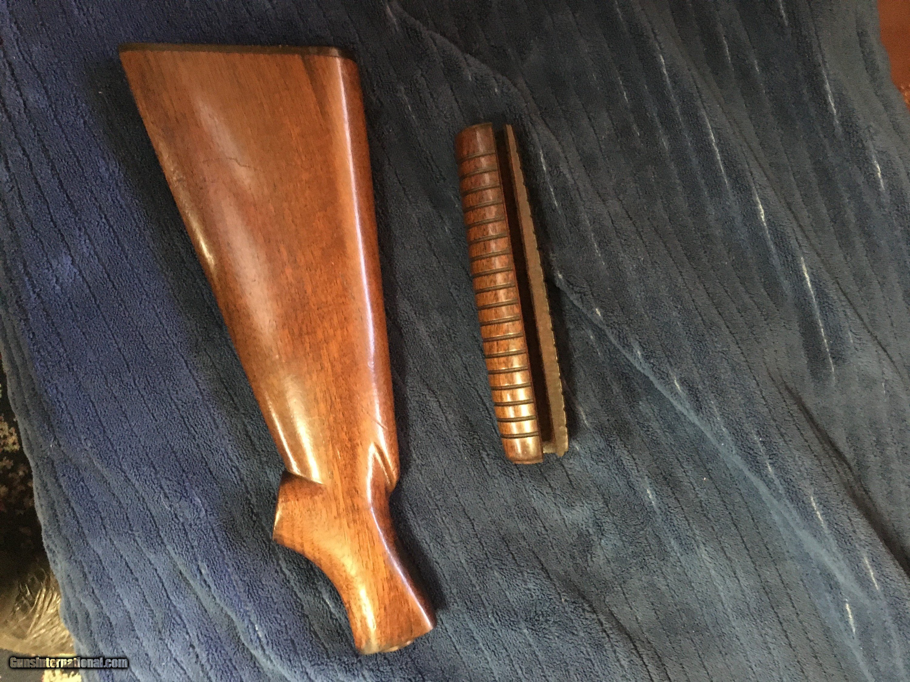 Description: WINCHESTER MODEL 42(FIELD STYLE) BUTTSTOCK AND FOREARM SET. factory original finish and original butt plate. no cracks or splits.original 14" pull, some light hunting marks (see pics) but very good overall. this item is (used) not a replacment stock. very hard to find as a lot of these got cut down for youths and women. SOLD Shotgun Gauge: .410 Gauge |