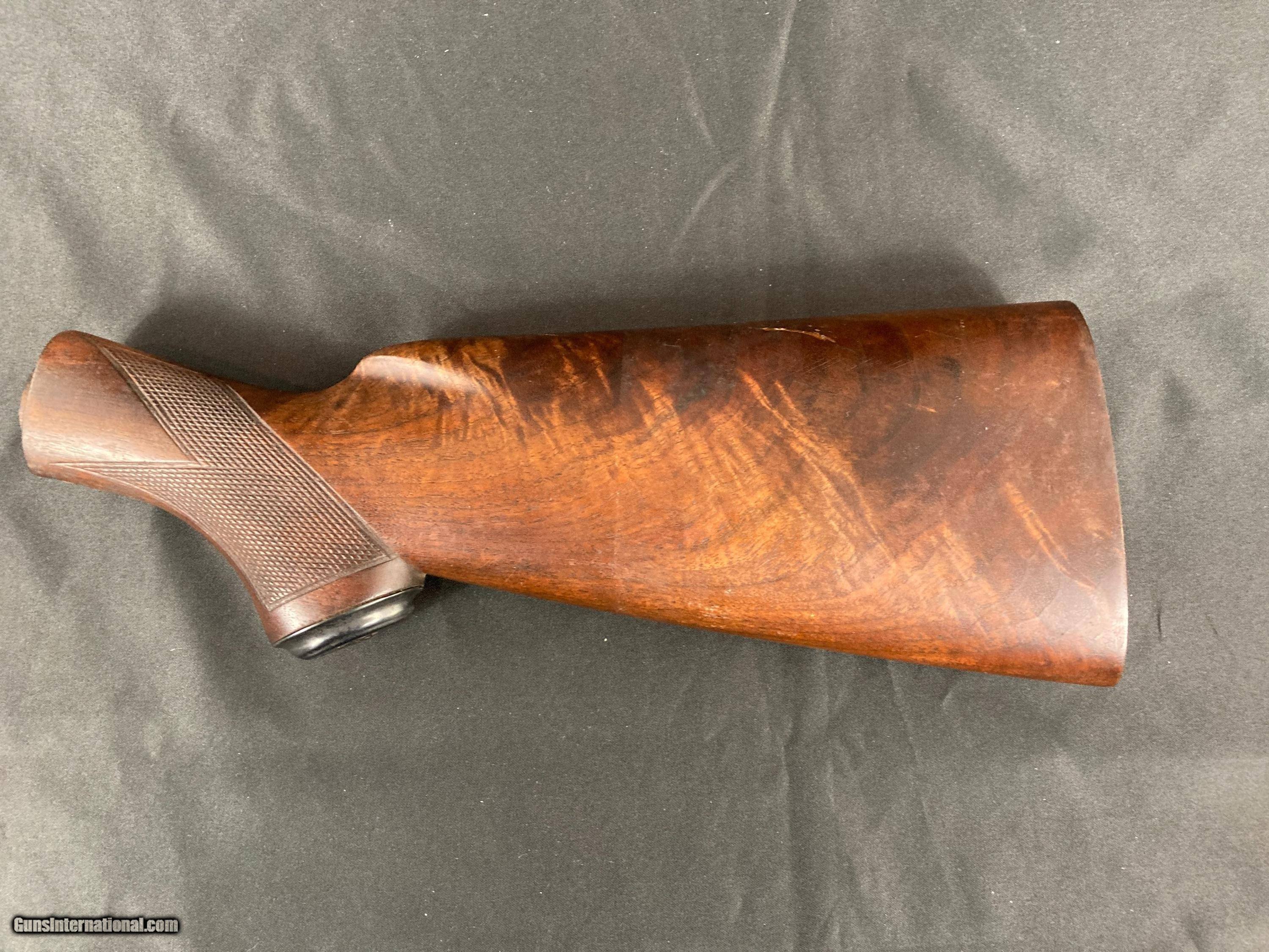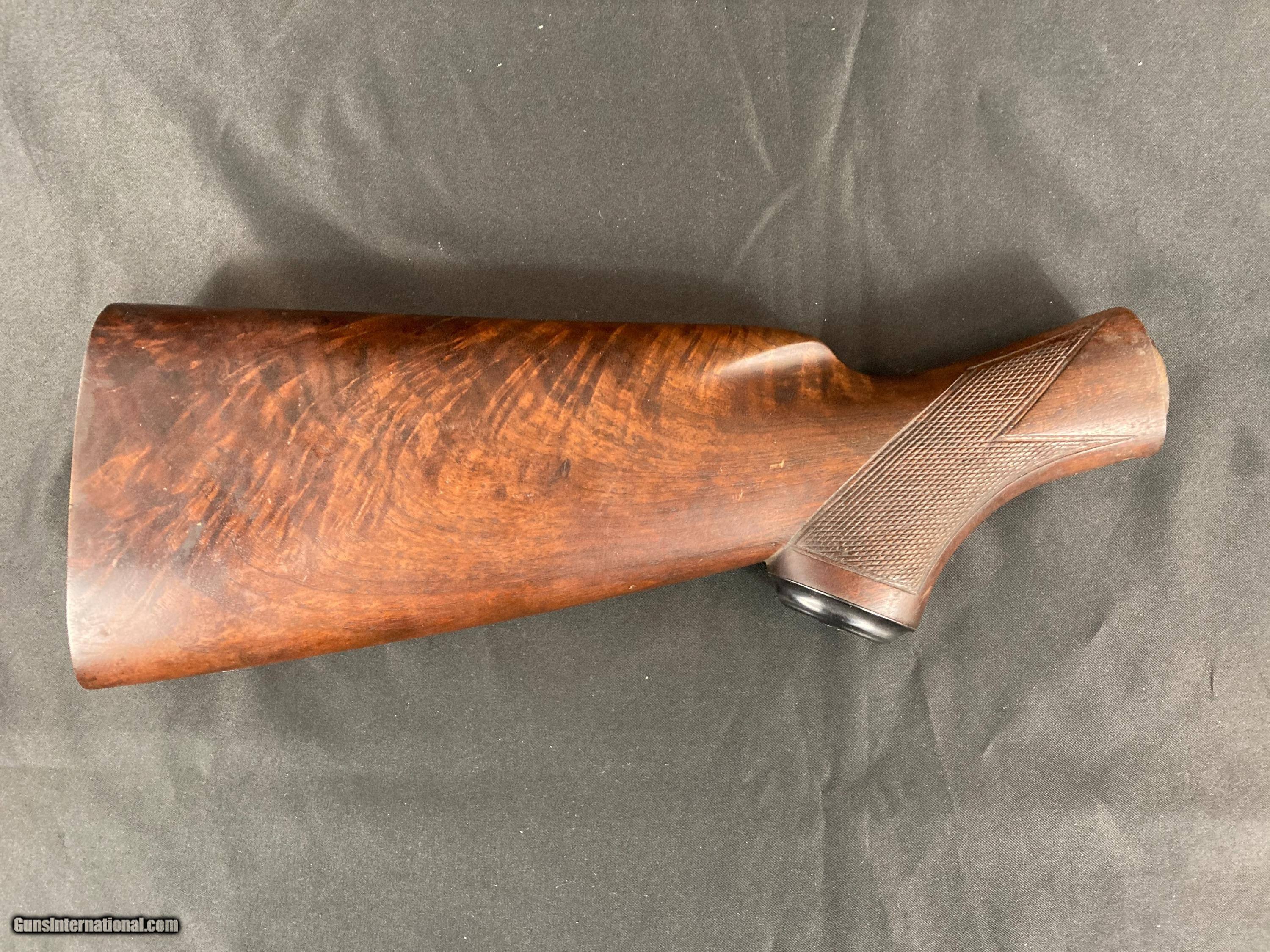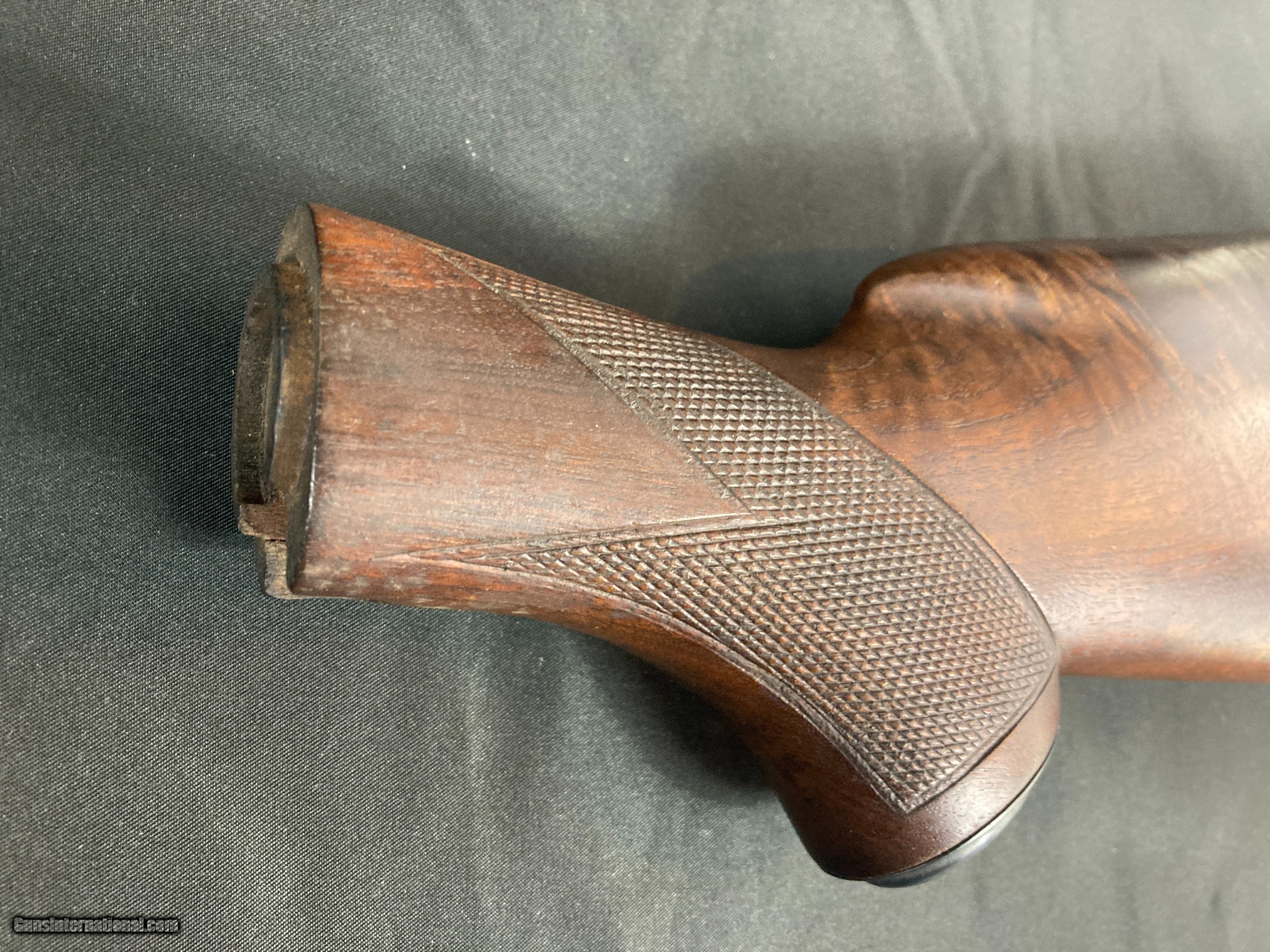 Description: dark fancy burl, factory checkered, with a factory metal grip cap, excellent condition, needs a recoil pad for the standard length of pull, $15 shipping SOLD |