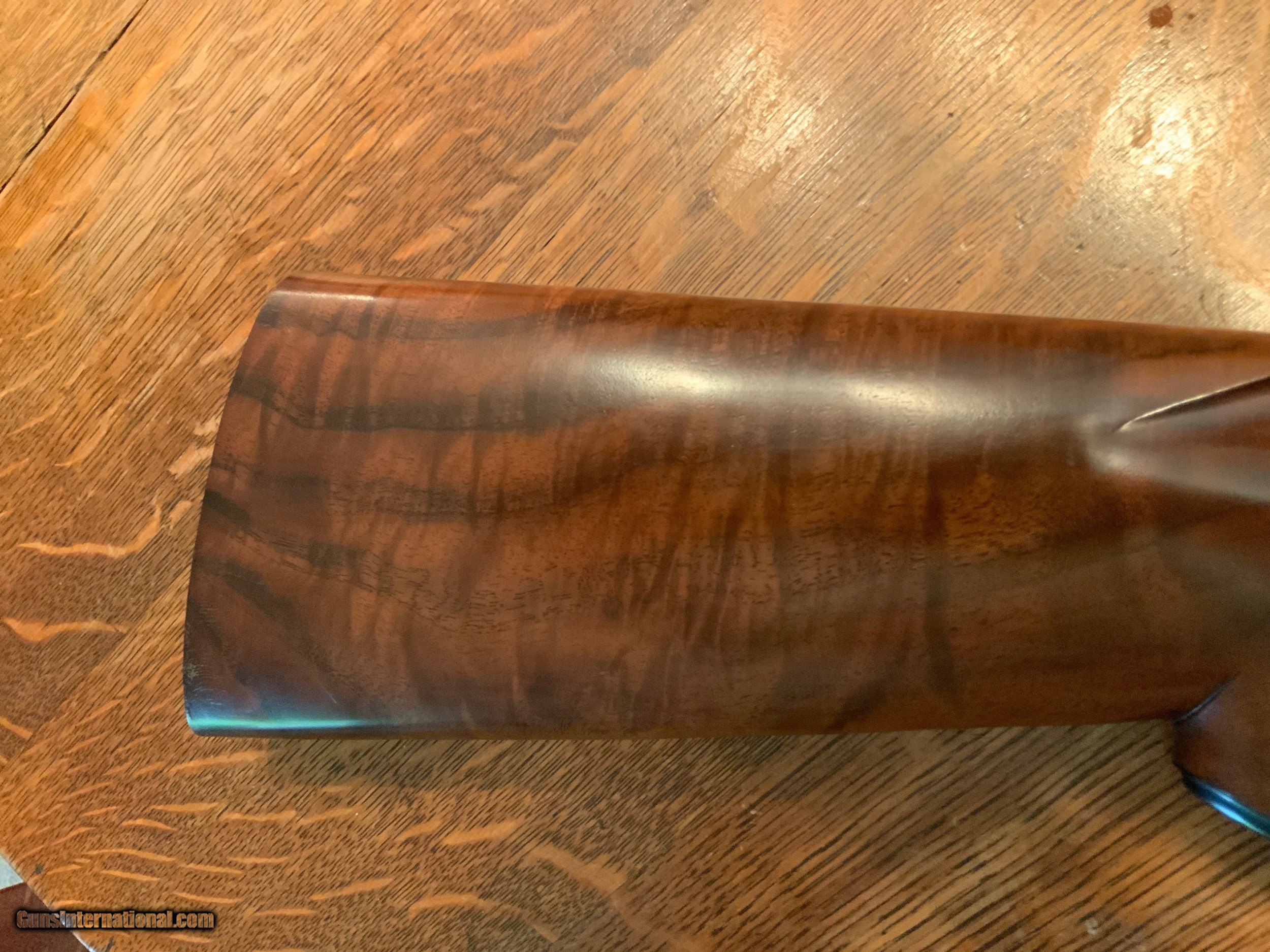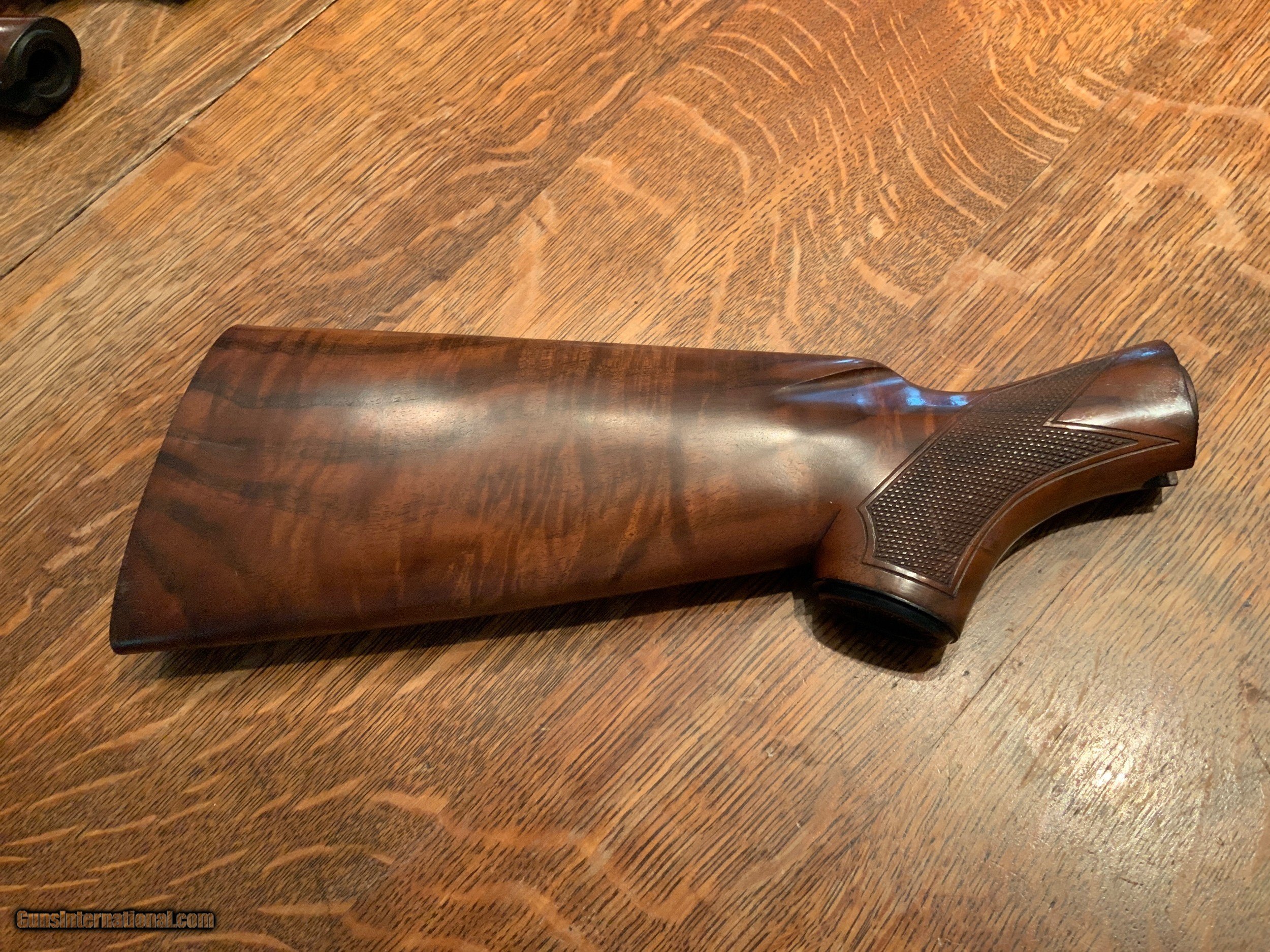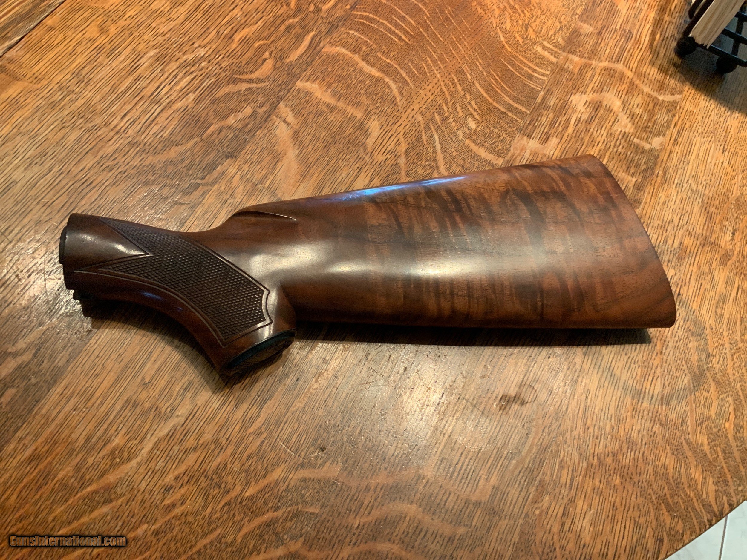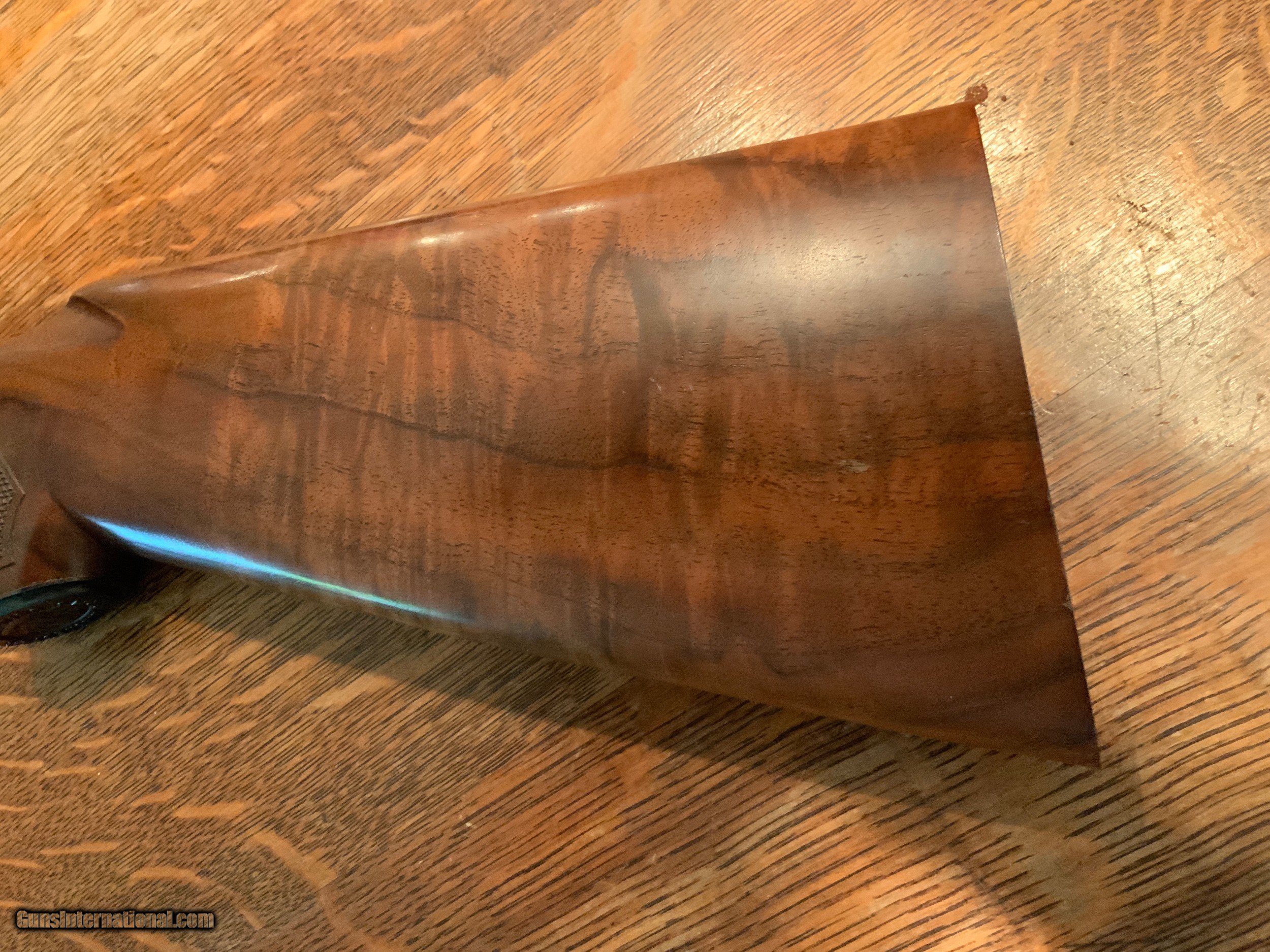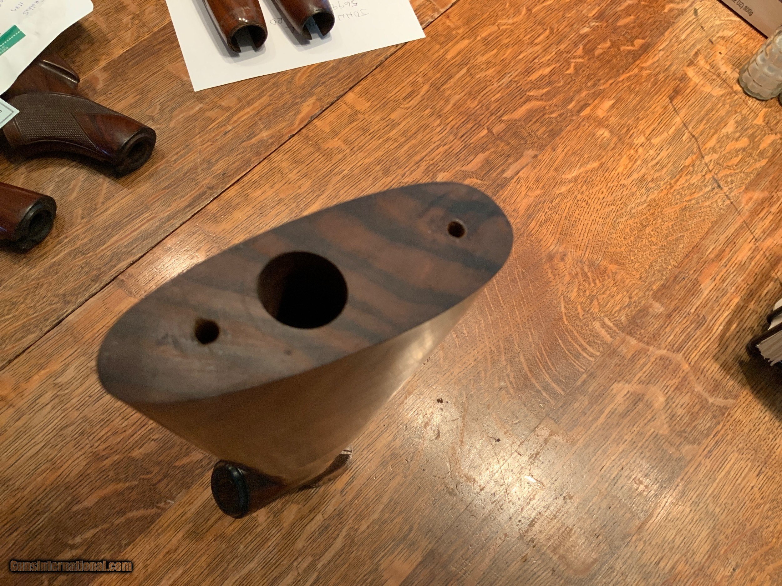 Description: (Sale Pending)Beautiful buttstock for the Y series model 12 Winchester pump shotgun. The stock measures 12 3/4 inches from the front of the wood to the middle of the butt. From what I was told this is a uncut stock. nicely figured wood and original grip cap. Price includes shipping. SOLD |