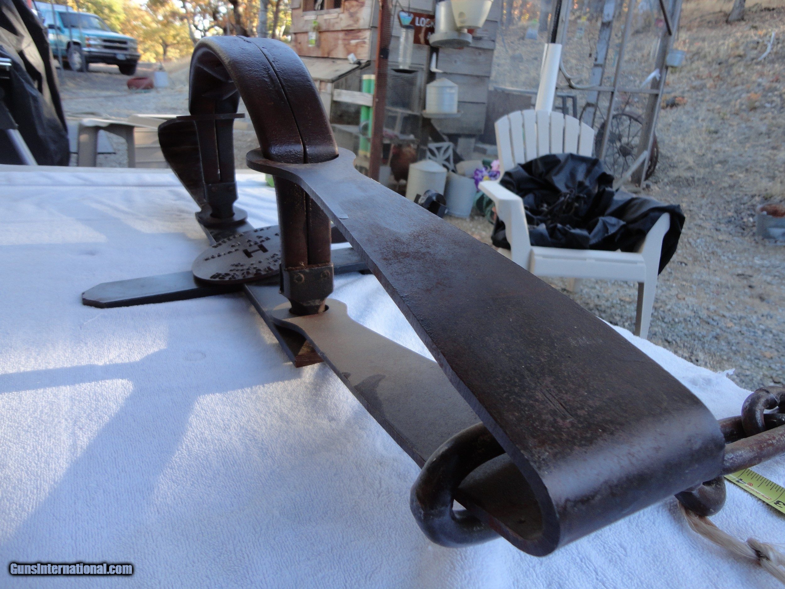 Description: Up for sale is a rare and seldom seen old bear trap with teeth. Herters made this trap from 1950 to 1970. Federal law made these illegal to use after 1970. This trap hung in a local lodge resort here in the Pacific Northwest. There are millions of guns, but very few of these old traps left. Minty condition. Local pickup in Southern Oregon, or we can ship it to you, you pay shipping and insurance. We pack the traps very well so they do not break out of the box when in transit. Please refer to the photos to further assess the condition of the trap. If you use the Guns International inquiry form to contact us, please make sure to check the email associated with your GI account for our response. We are on the west coast (pst), so please excuse any lag or delays on our responses to you. If paying by credit card, you will need to provide a valid email address for us to send your invoice to for payment. Credit card payments have a 4% additional charge. Trap ships once payment is received by us. All traps ship insured and tracked, no exception. (Shipping carrier to be determined by us to adjust for timeliness and to keep costs low for you.) ???????No international sales, please don't ask. Thanks for looking. SOLD |