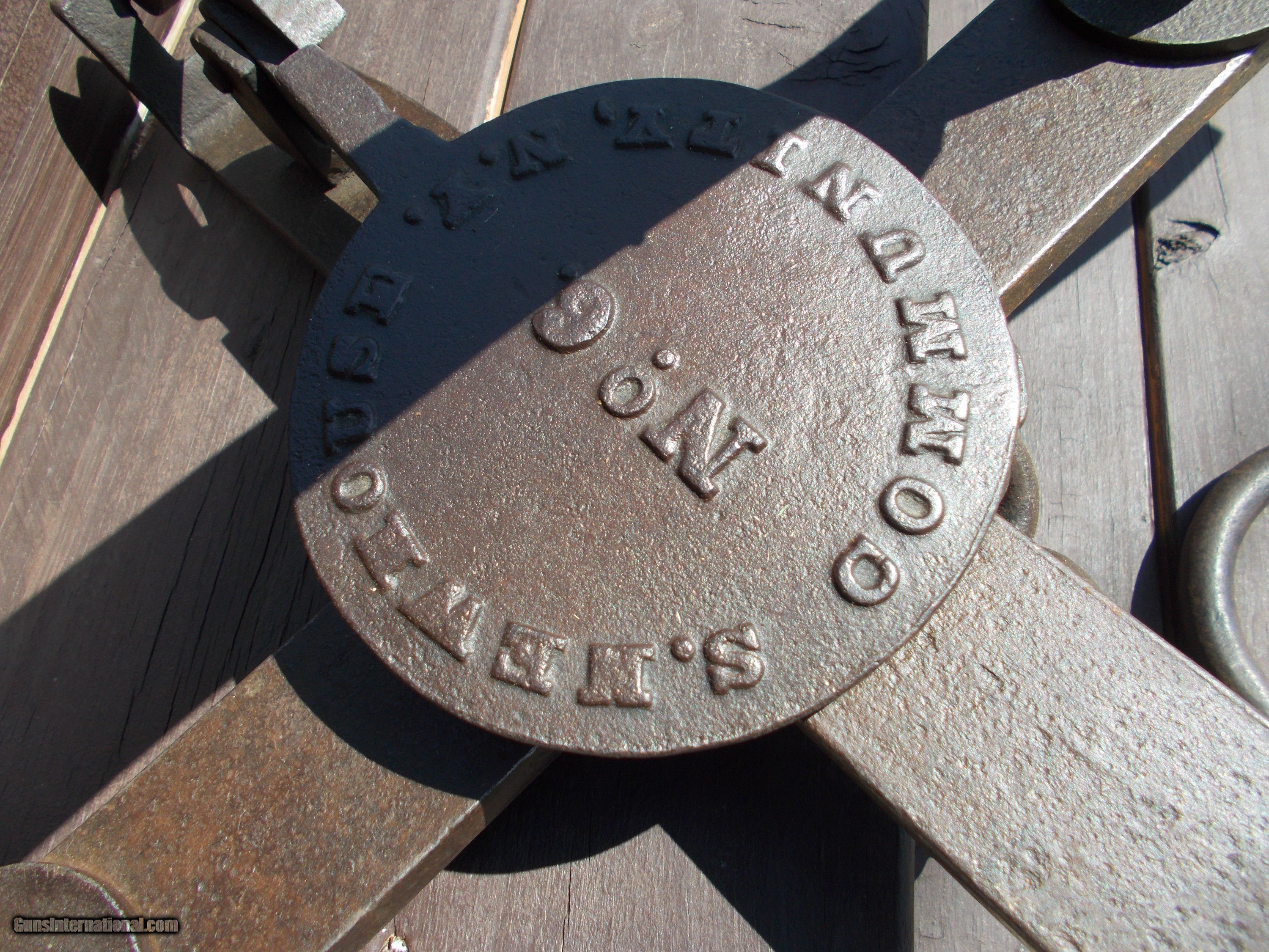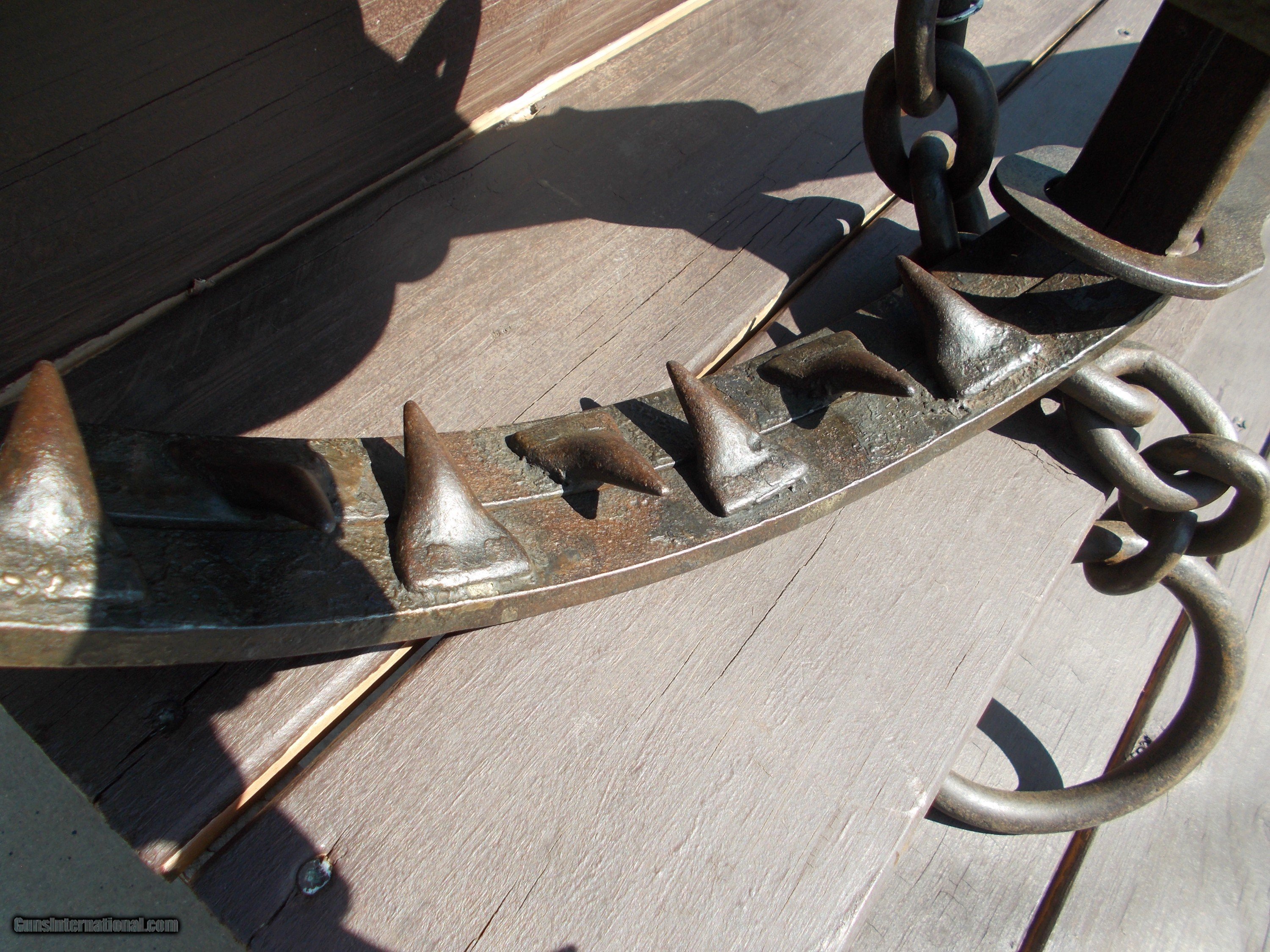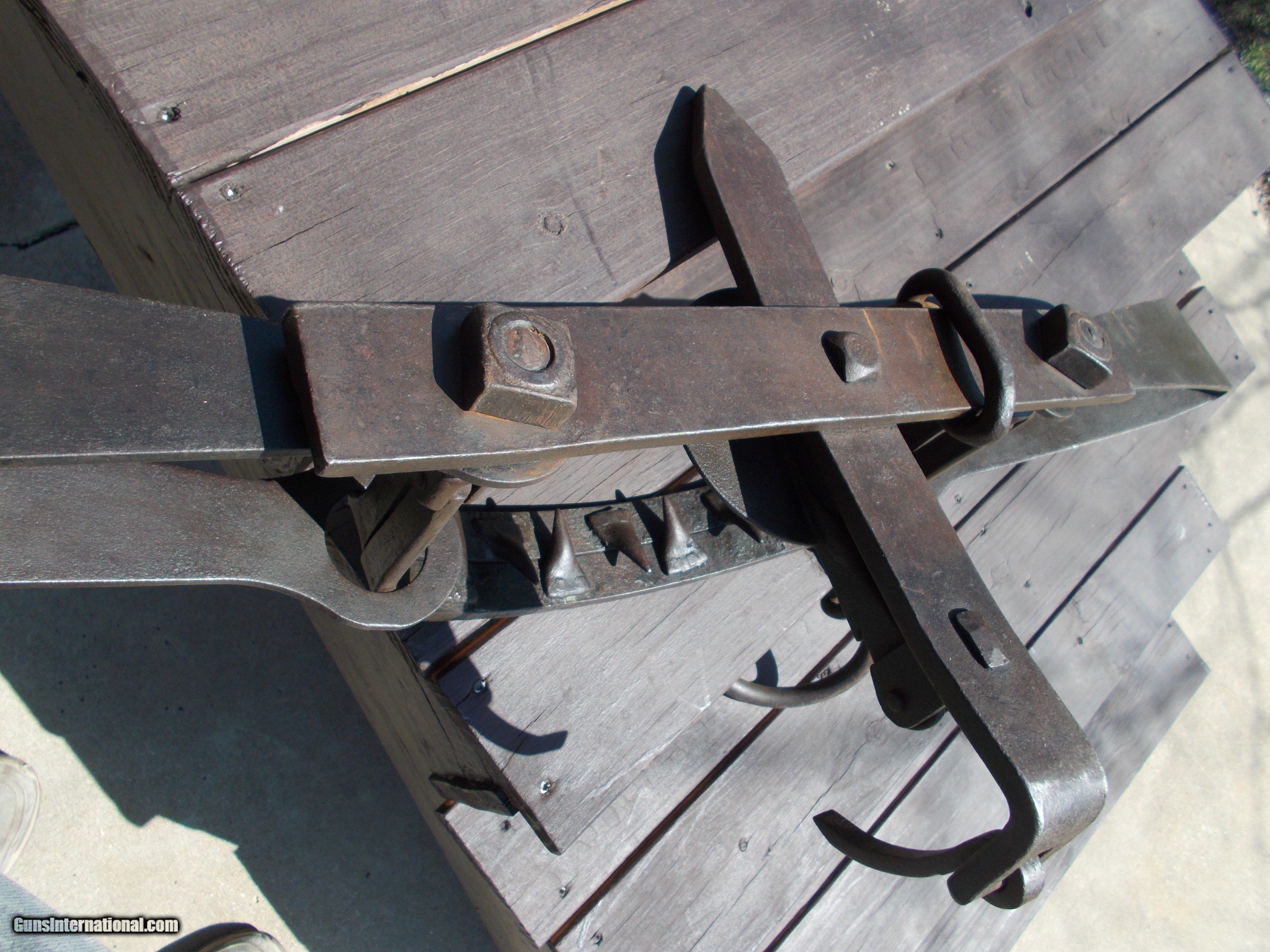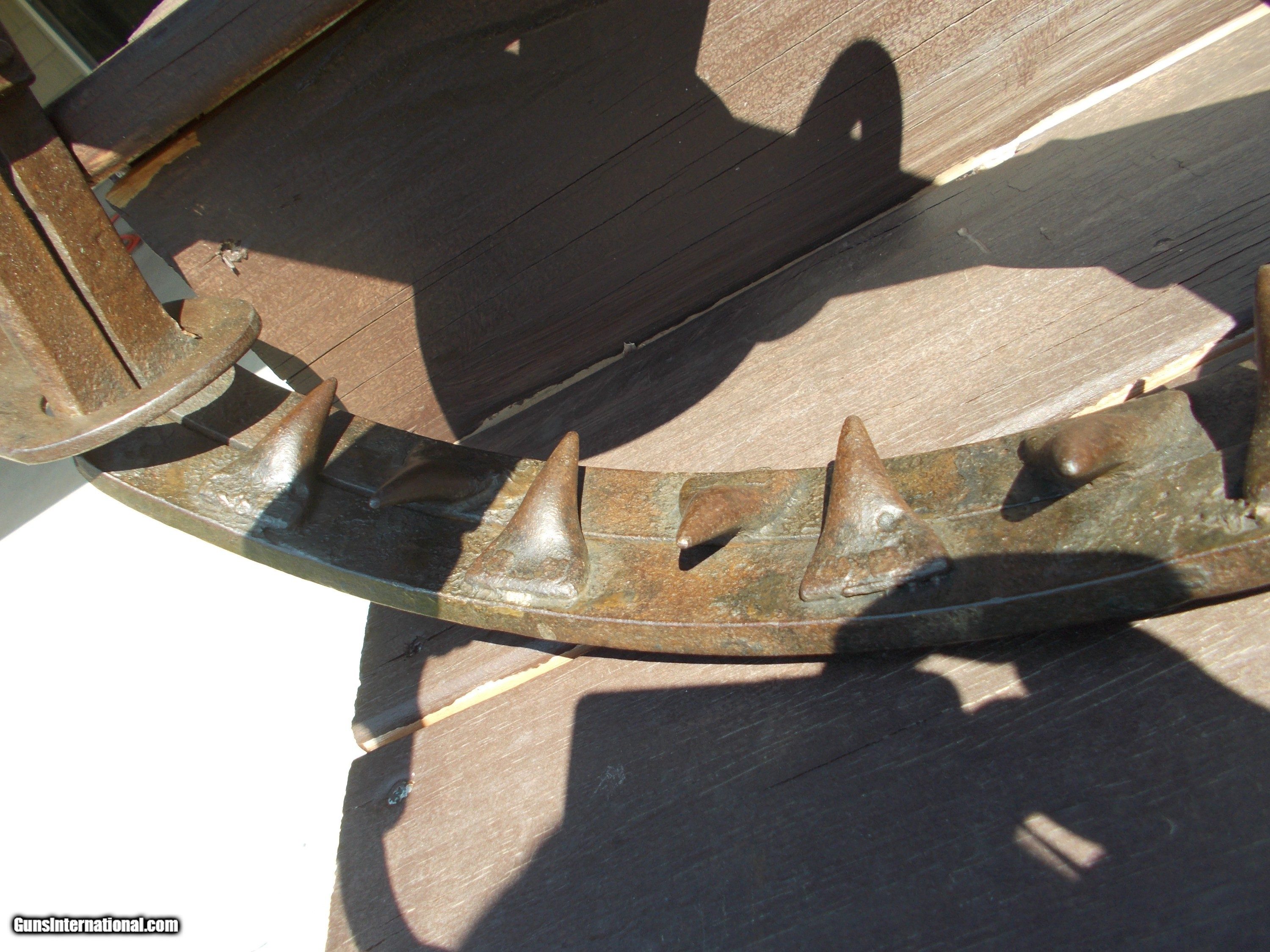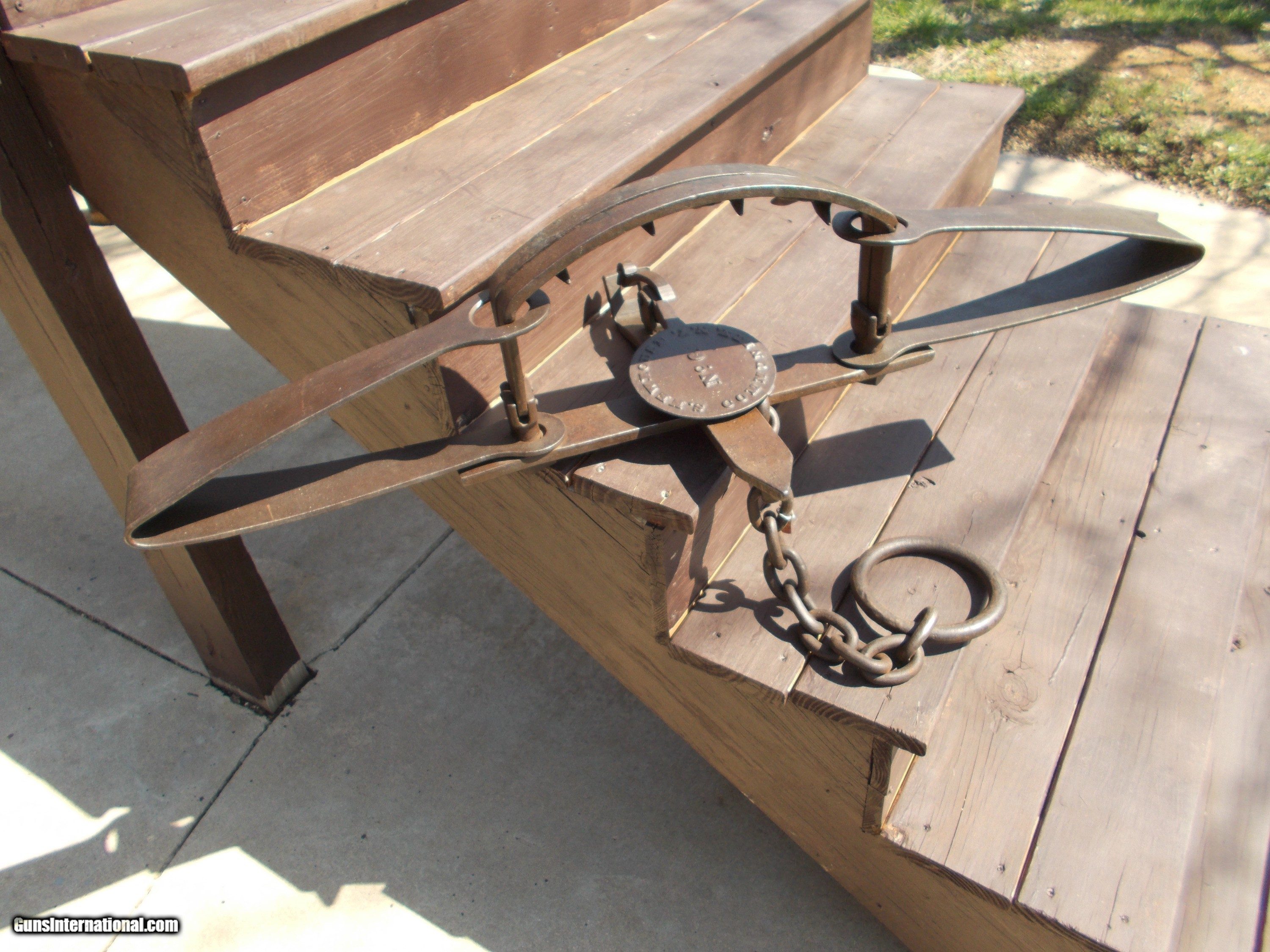 Description: This is a very nice No 6 Rome community marked bear trap good dpring stamps still very readable like gold they go up and harber to find 100.00 ship 7000.00 ph 2174153218 very nice original trap SOLD |