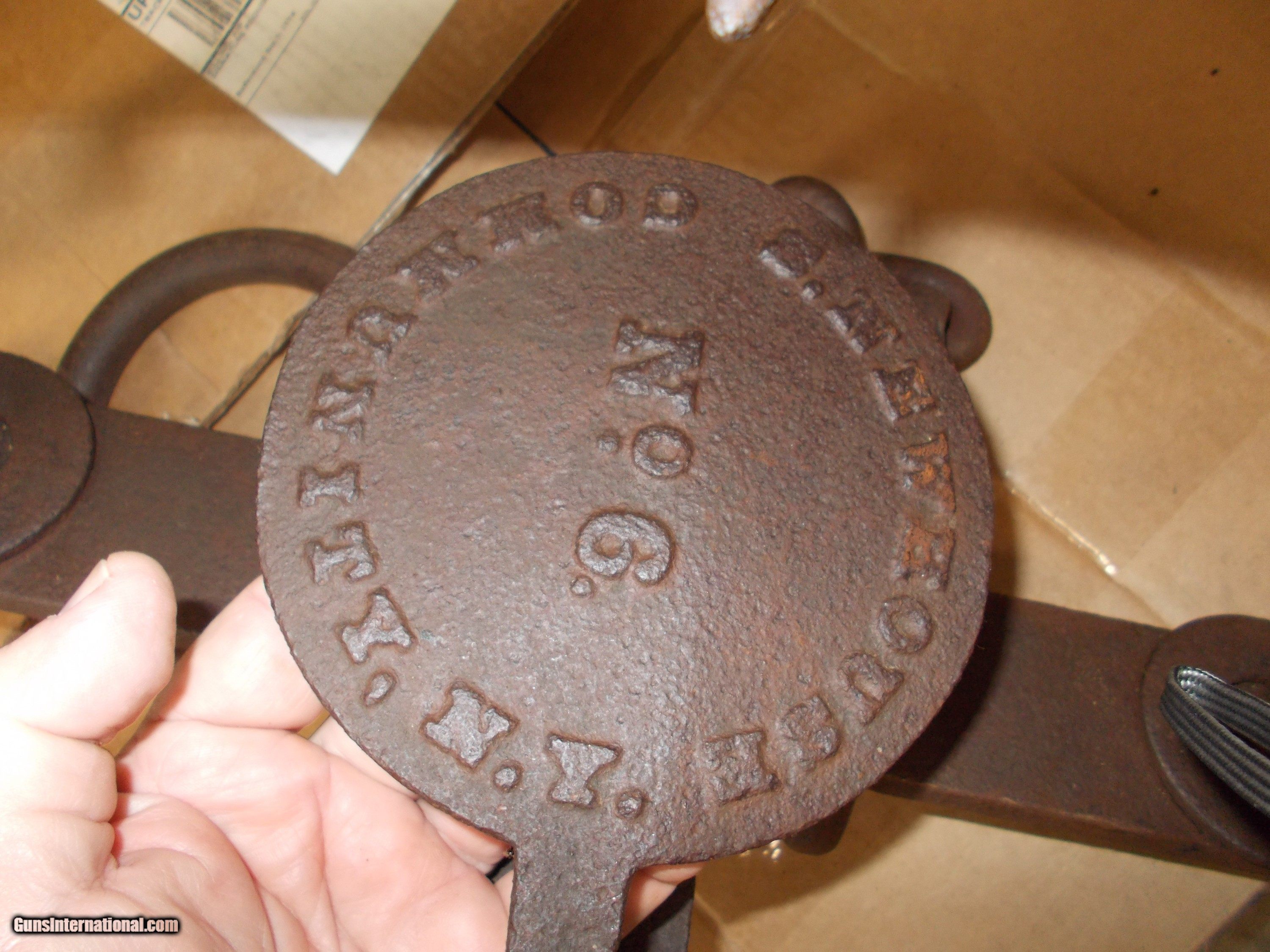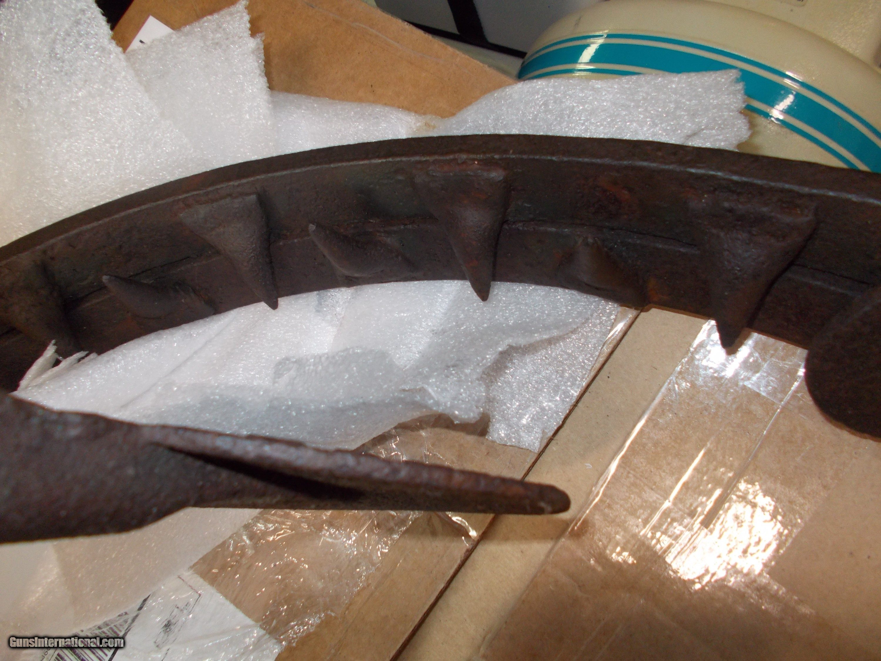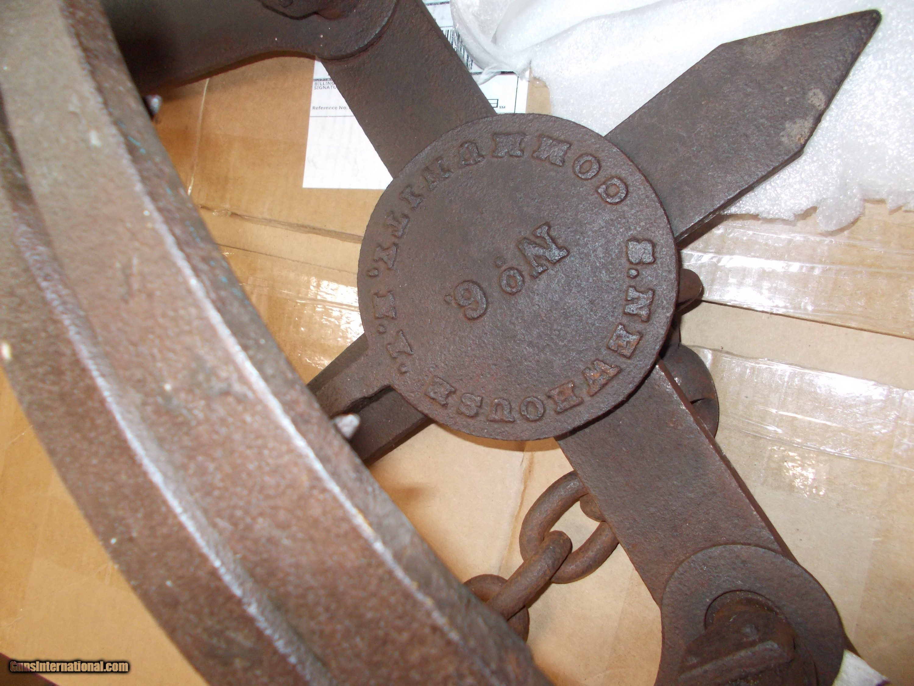 Description: These are getting harder to find nice old No6 Community all intaked riveted teeth are good. Spring stamps are all but gone over all a decent example 80.00 ship SOLD |
