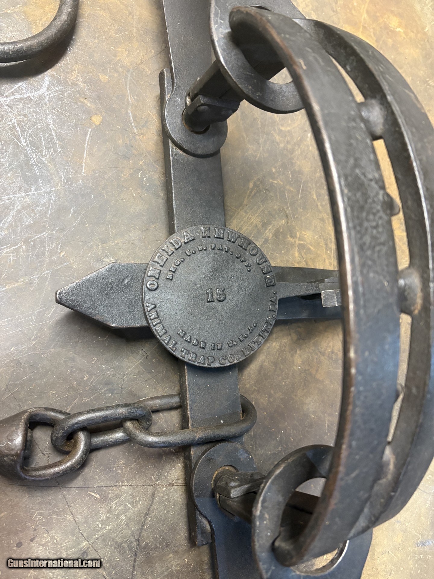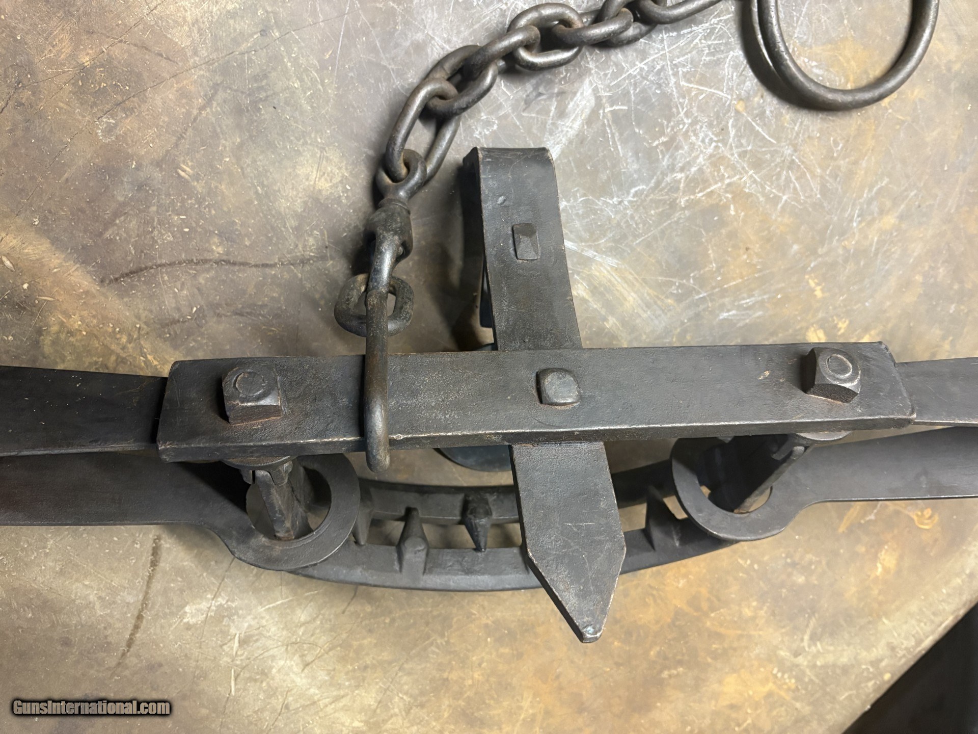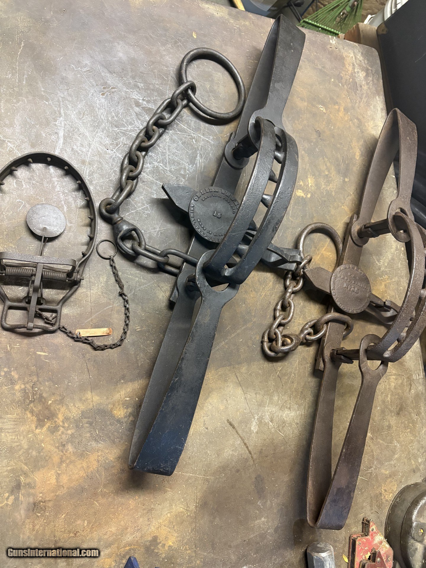Description: Nice original antique S. Newhouse #15 bear trap. All complete with offset jaws and teeth, strong springs, and in great condition. Price: $1,500.00 Contact Seller |