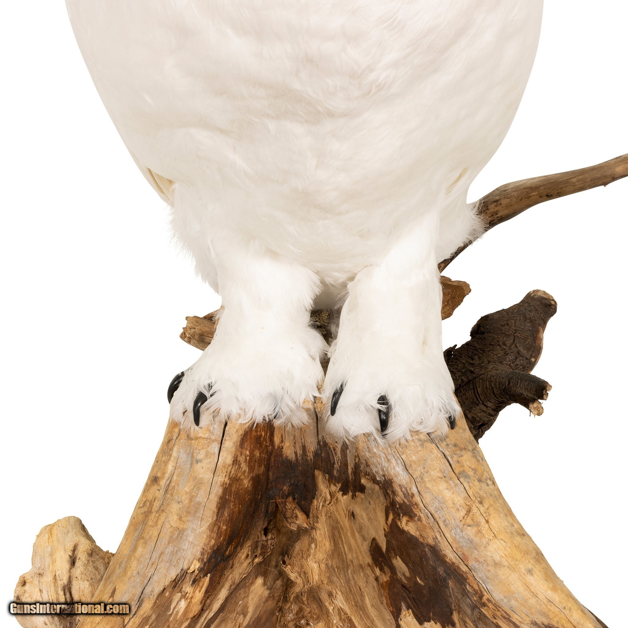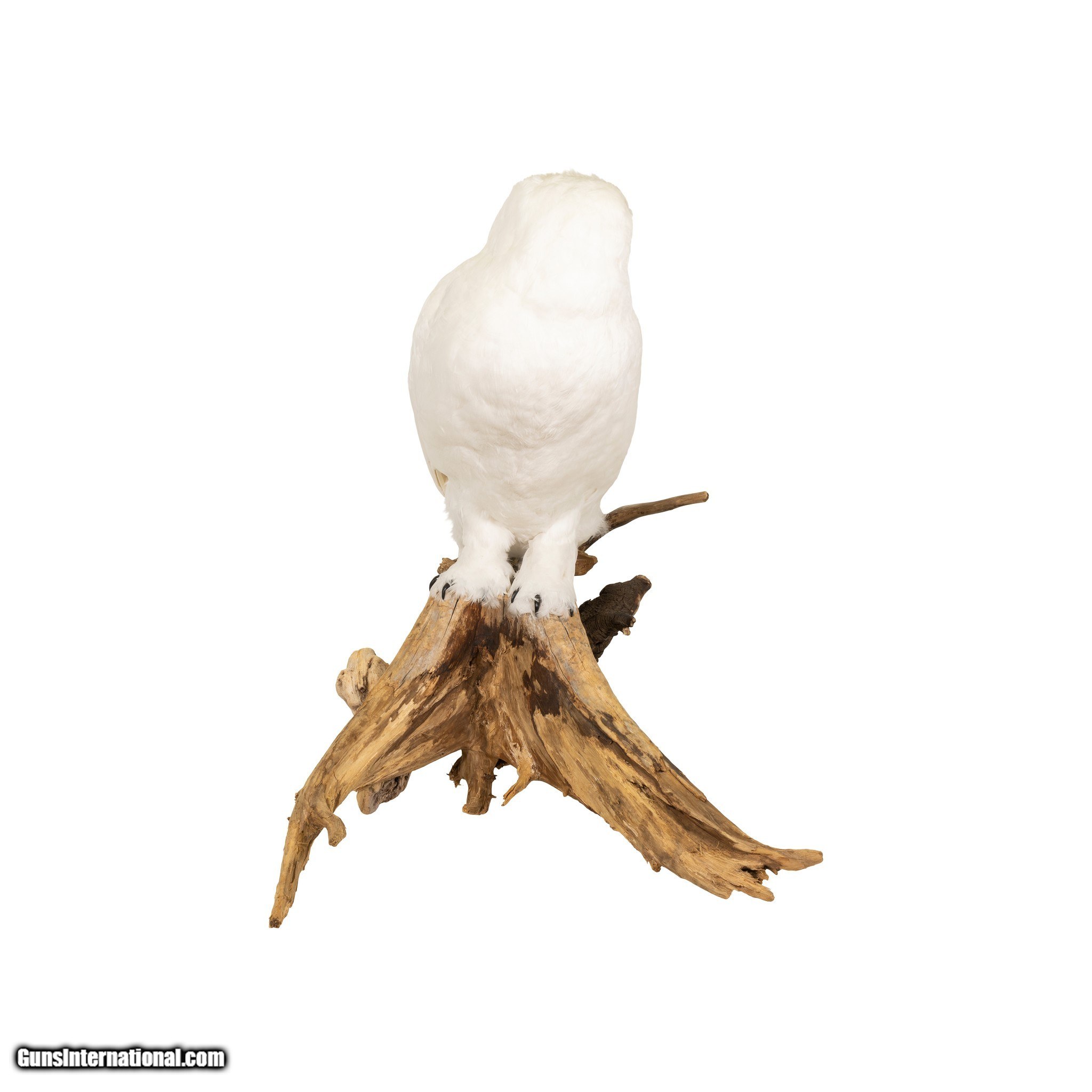 Description: Snow owl on driftwood mount. Life size and realistic however made of white imden farm goose feathers as a recreation. The beak and claws are sculpted from a resin material. 28"H x 16"W x 20"D including base. SOLD |