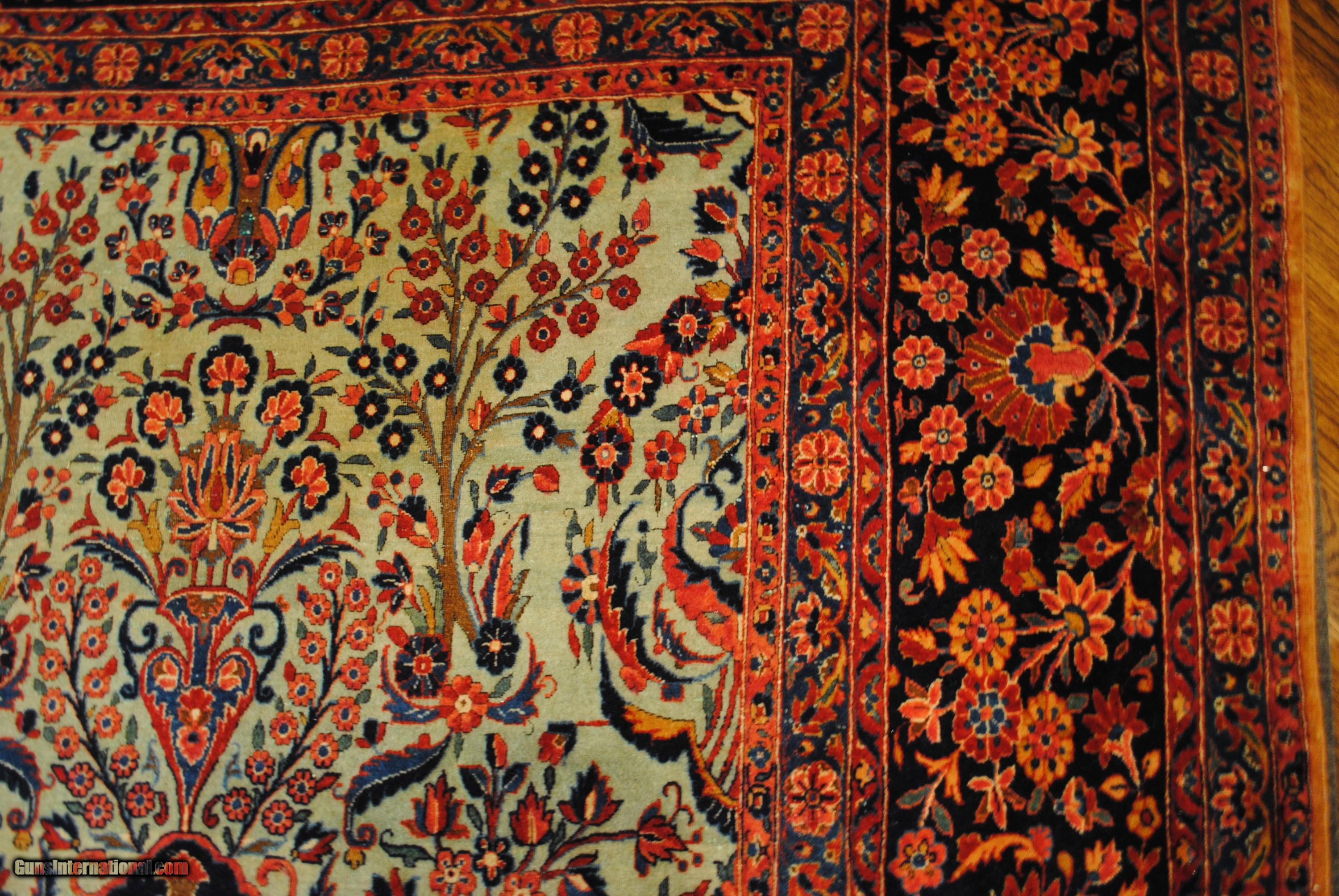 Description: This antique Kashan rug was the centerpiece in a Florida Collectors Gun Room. Detail is oustanding with roses, flowers, vines and scroll. Condition is excellent. Size is 10' x 16'. Would really dress up any gun room. Priced at about 30% of cost. Shipping is $125. Will trade for firearms. For inquiries please call Guy - 407-721-3748 SOLD |