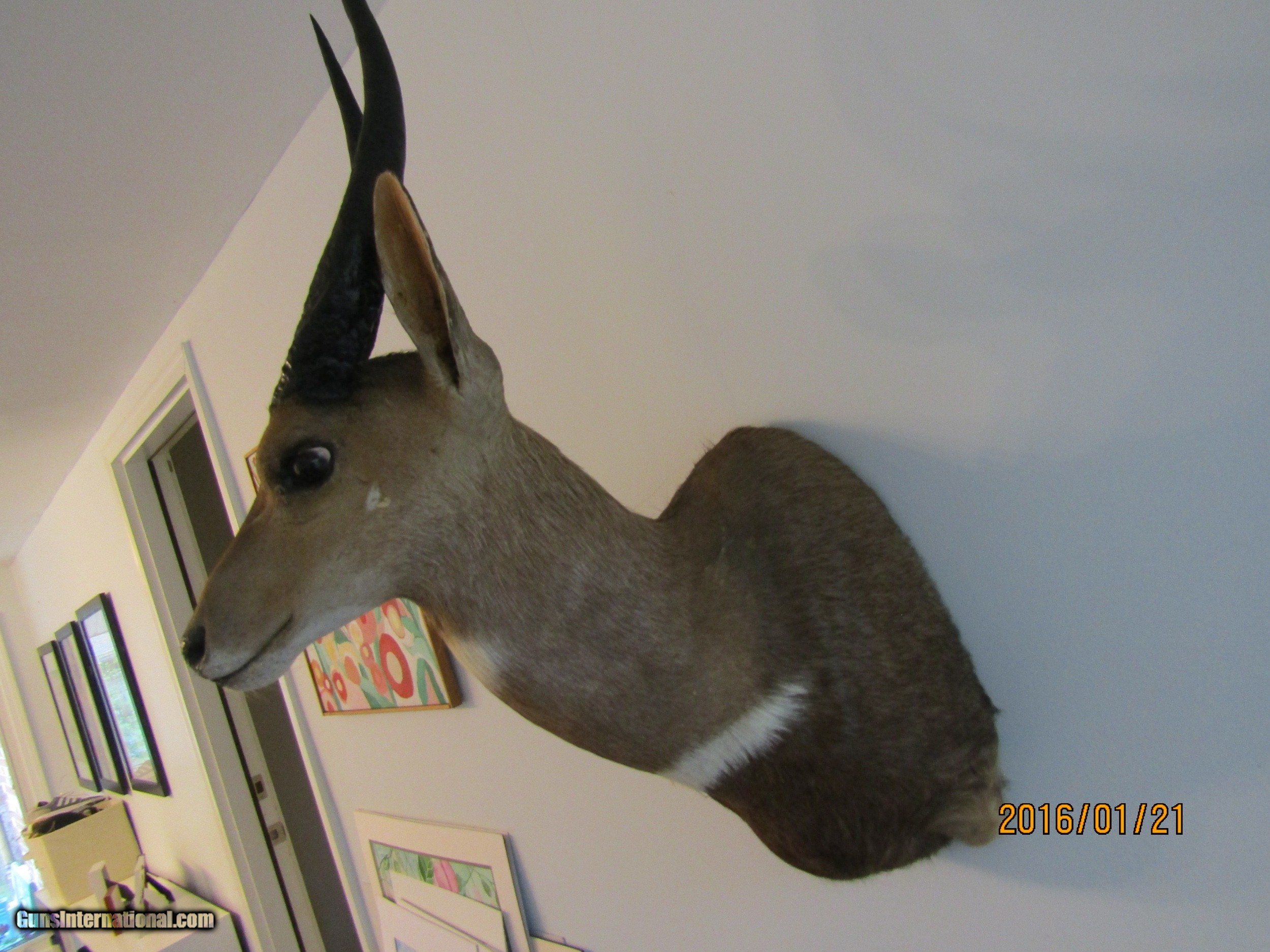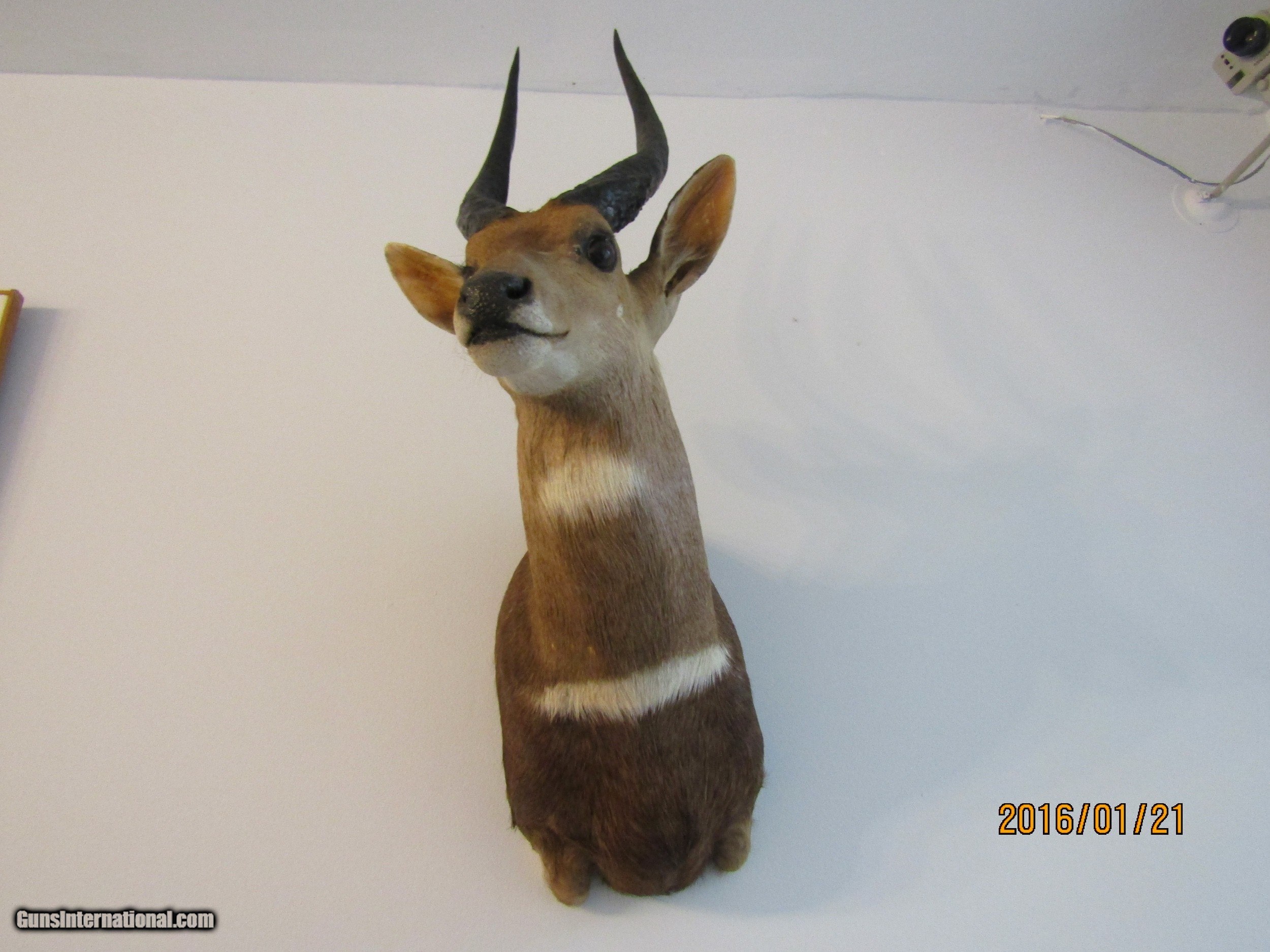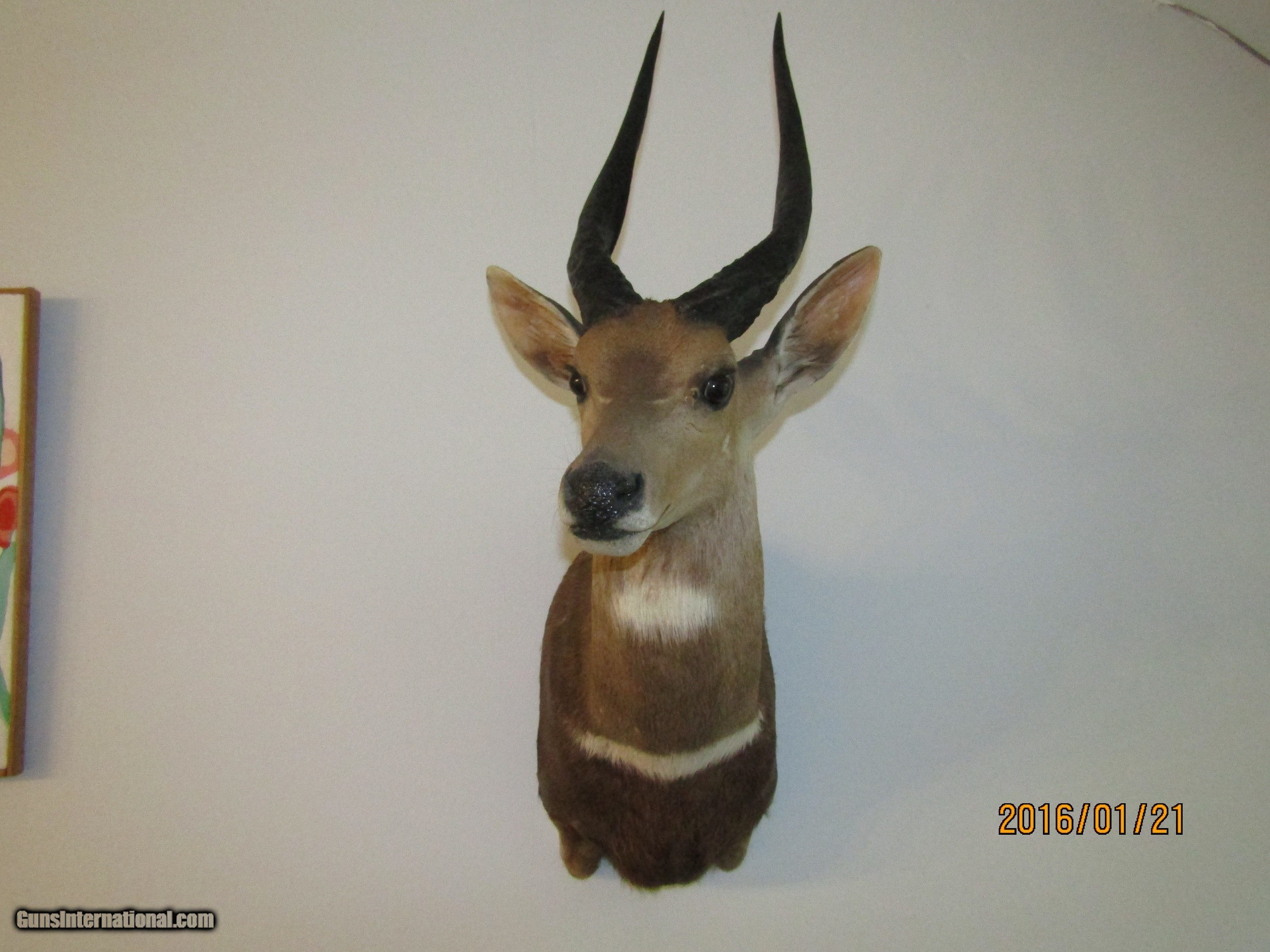 Description: This BUSH BUCK displays well is in beatiful shape and is one of five shoulder mounts I am selling. This is light and has the hook attachment ,ready to mount. I am considing reducing the price if you buy more then one of the mounts slightly. I would consider diving, rather then shipping, a mount if you live near the upper part of Michigan, you pay gas. Call 859-533-5445 Dan SOLD |