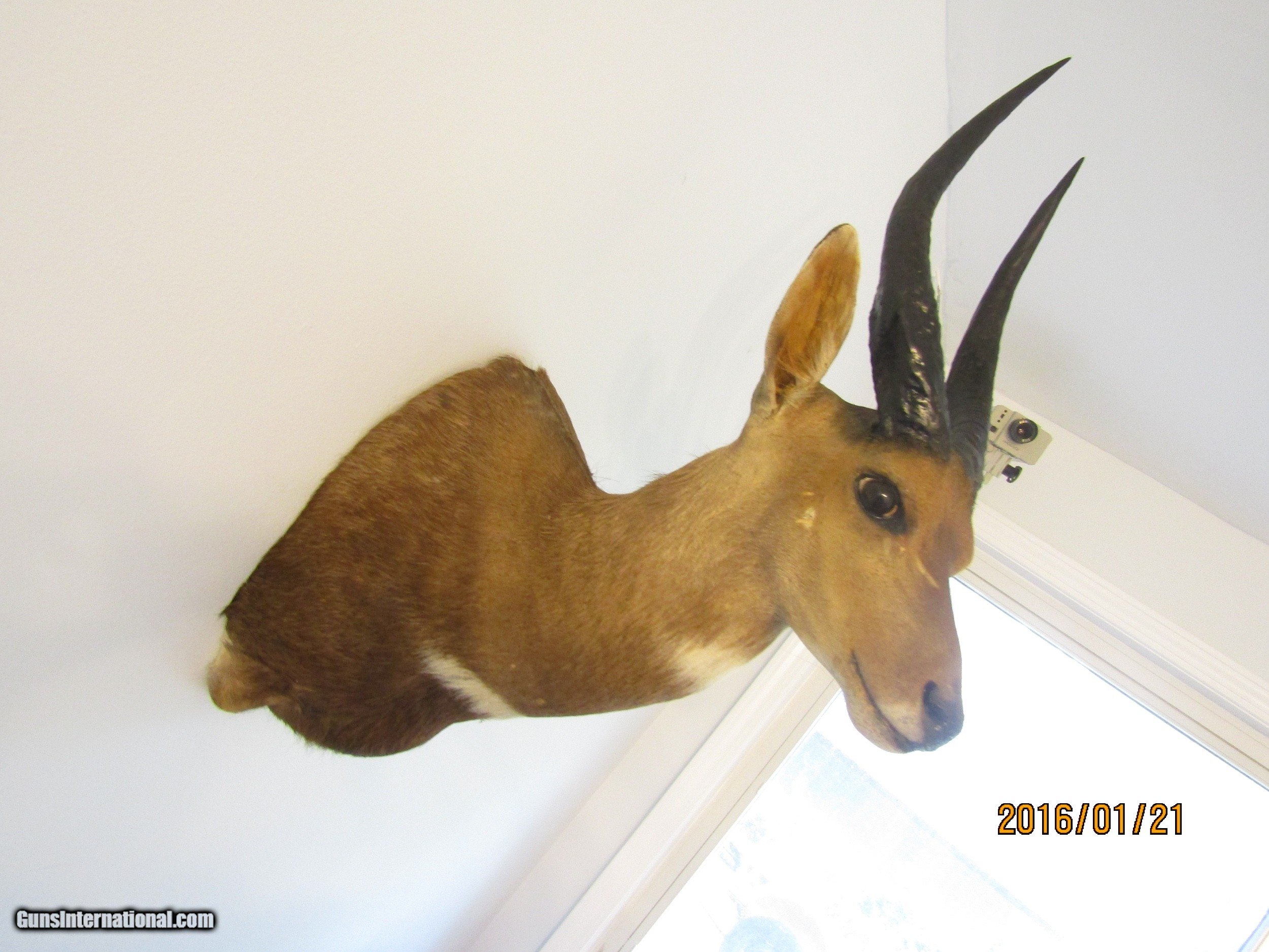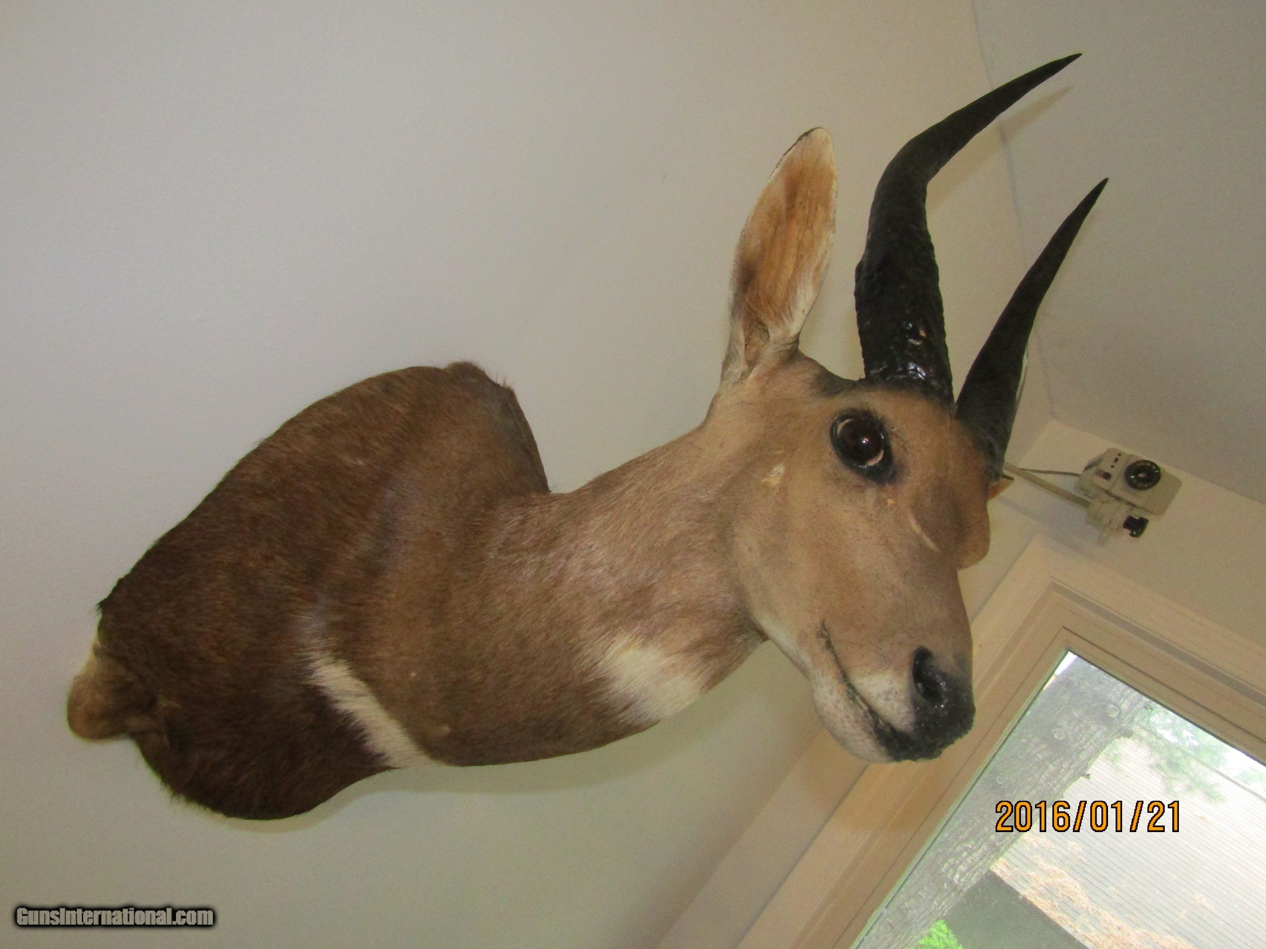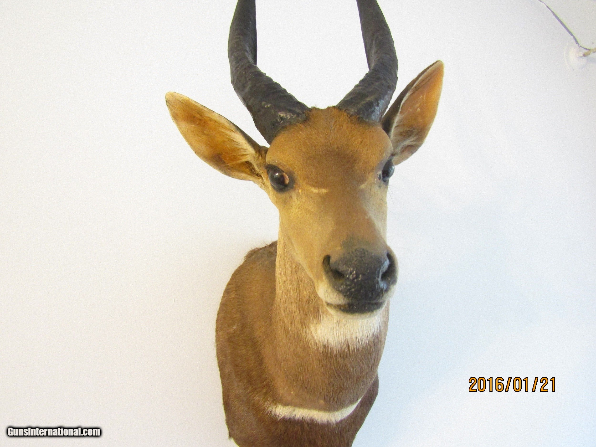 Description: This BUSH BUCK displays well is in beatiful shape and is one of five shoulder mounts I am selling. This is light and has the hook attachment ,ready to mount. I am considing reducing the price if you buy more then one of the mounts slightly. I would consider diving, rather then shipping, a mount if you live near the upper part of Michigan, you pay gas. Call 859-533-5445 Dan SOLD |