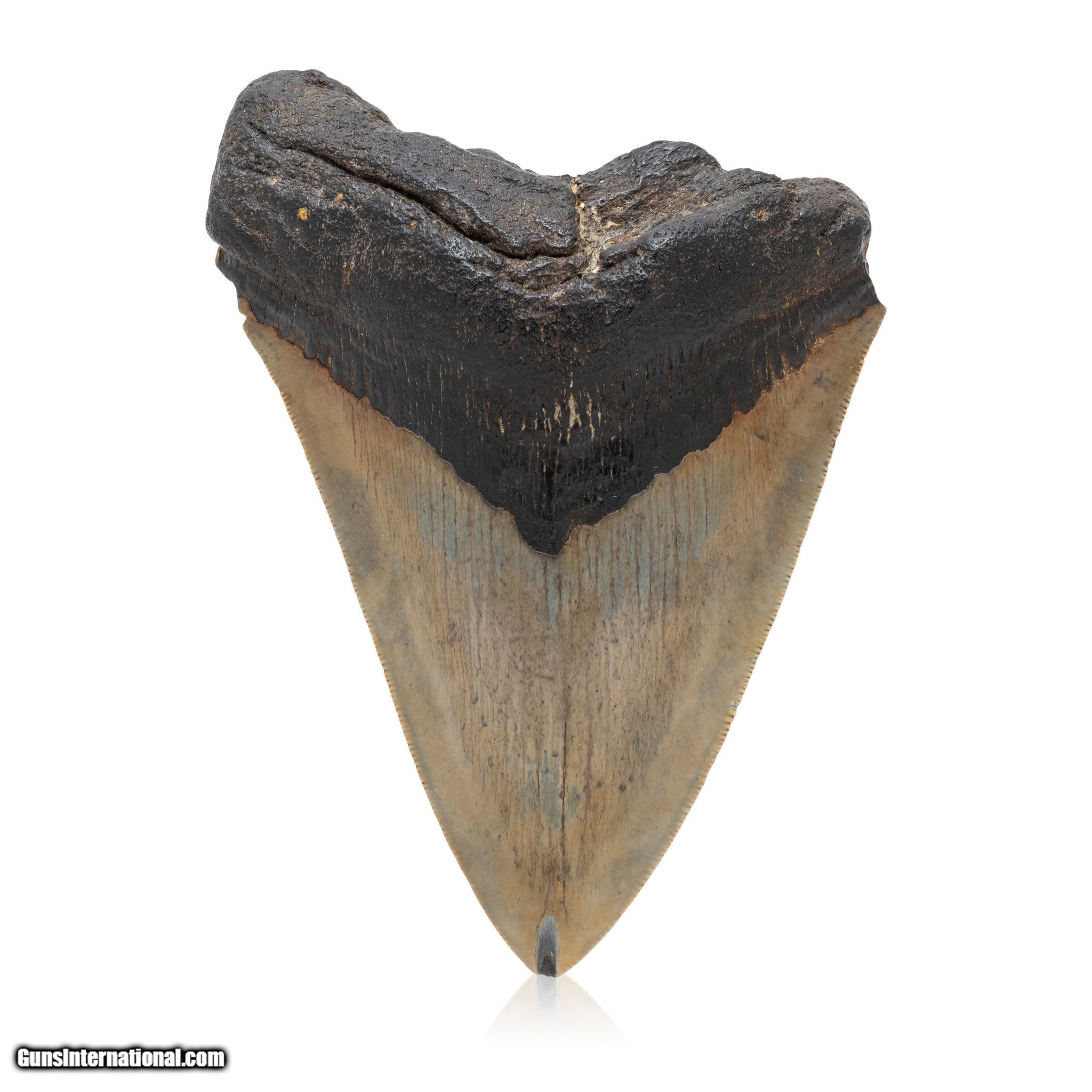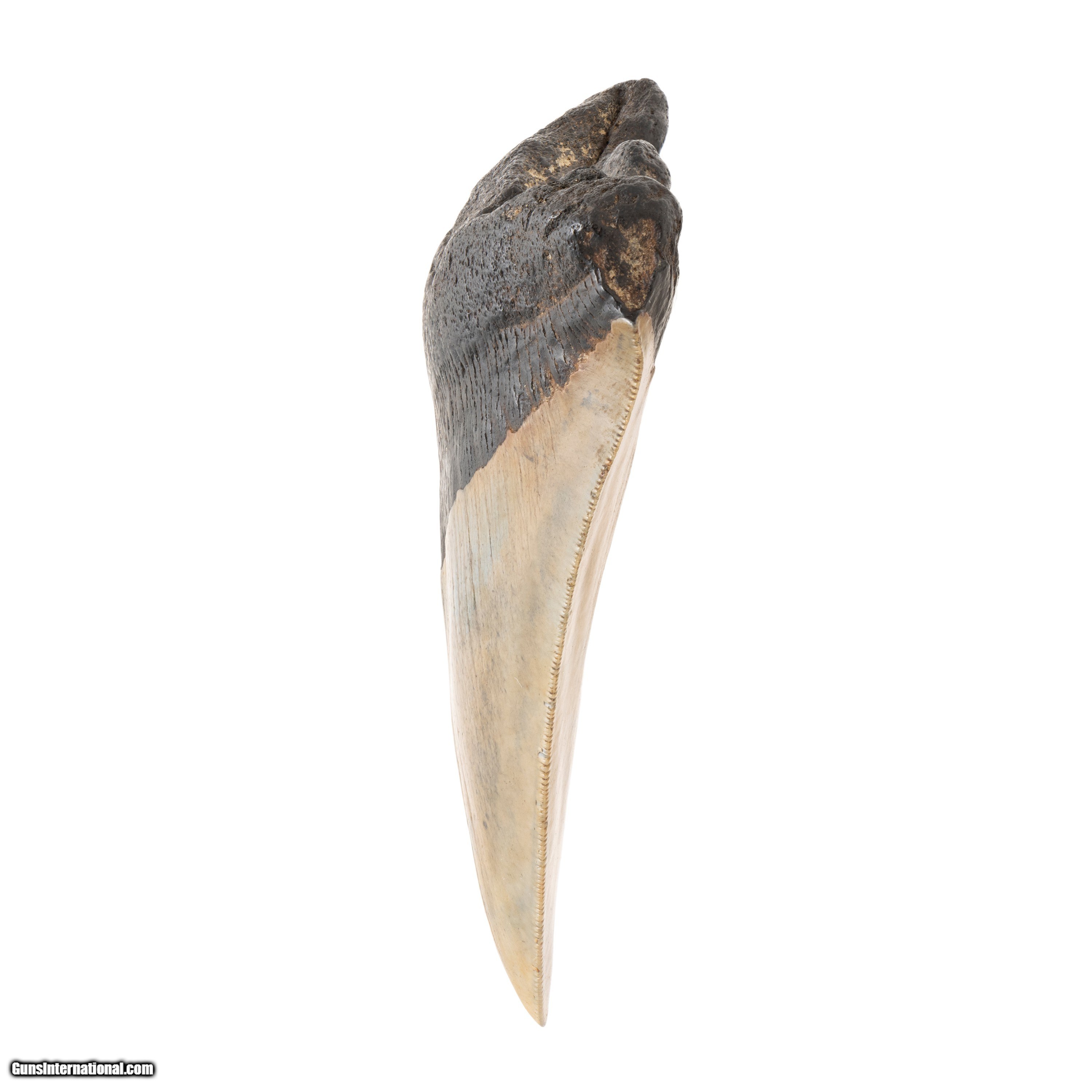 Description: Large megalodon shark tooth. Fossil, natural, specimen. Featuring grey, brown, and black colors. In good condition, great for continued display in a fossil or marine life collection. Collected in North Carolina. Size: 4 1/2" Family Owned & Operated Cisco’s Gallery deals in the rare, exceptional, and one-of-a-kind pieces that define the history of America and the Old West. Our pieces range from American Indian to Cowboy Western and include original items of everyday life, commerce, art, and warfare that tamed America’s frontier. Our 14,000 square foot gallery opened in 1996 in beautiful Coeur d’Alene, Idaho. Personal Service Cisco’s operates on old fashioned values – honesty and integrity, and all of our items are backed by our money back guarantee. We appreciate the opportunity to earn your business. Whether you desire assistance with a jewelry purchase, choosing a gift, identification, or even selling – we hope to be your trusted source. SOLD |