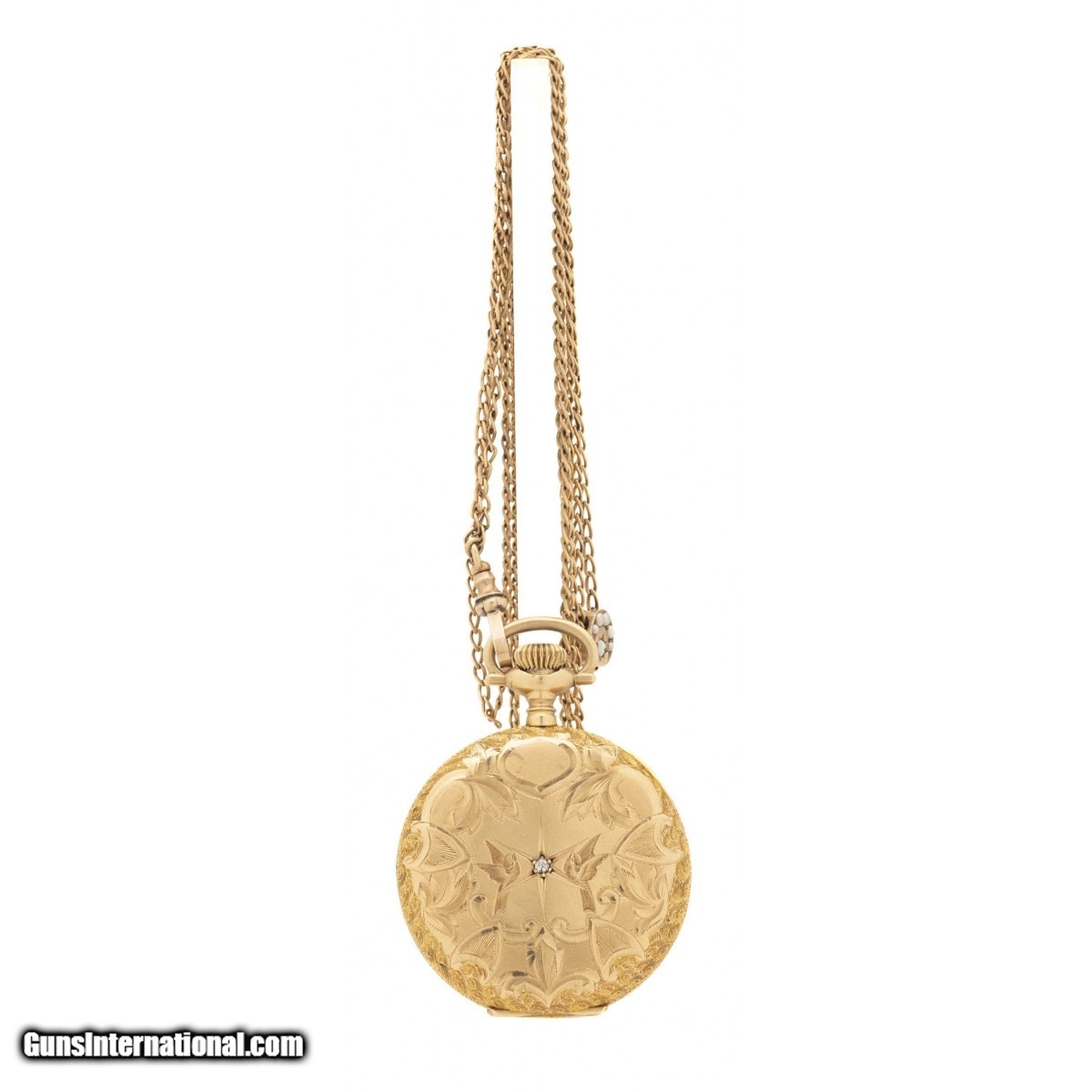 Sadie Earp's 14K Gold Watch. This item came from John Flood who was Wyatt and Sadie Earp’s personal Secretary and closest confidant. Mr. Flood even wrote a biography on Wyatt Earp that was never published. He was given and inherited numerous items from the Earp’s. Mr. Flood in turn passed the Earp collection on to John Gilchriese. Mr. Gilchriese owned and operated The Wyatt Earp Museum in Tombstone, AZ, where all of these items were displayed. These items were sold directly by Mr. Gilchriese to David Roberts along with Mr. Gilchriese’s notes on each item. Each item comes with a certificate of authenticity from Collectors Firearms.
