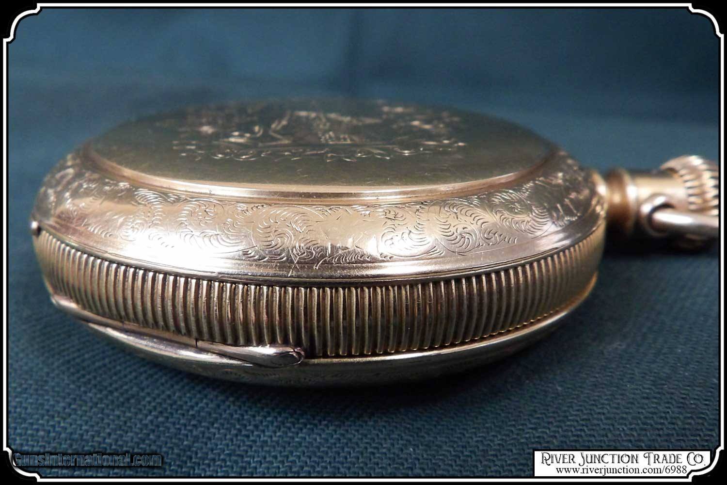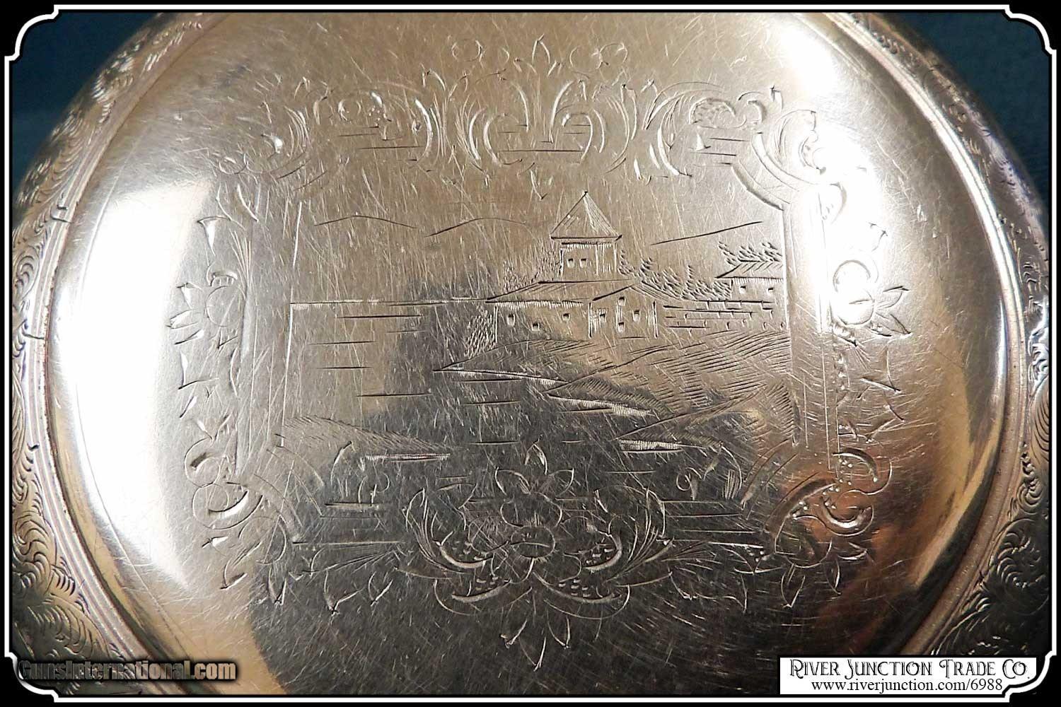 Description: Elgin Natl Watch Co Mechanical watch Gold Case with engraved Landscape with building on front and a Bird on the back Price: $300.00 Buy Now Contact Seller |