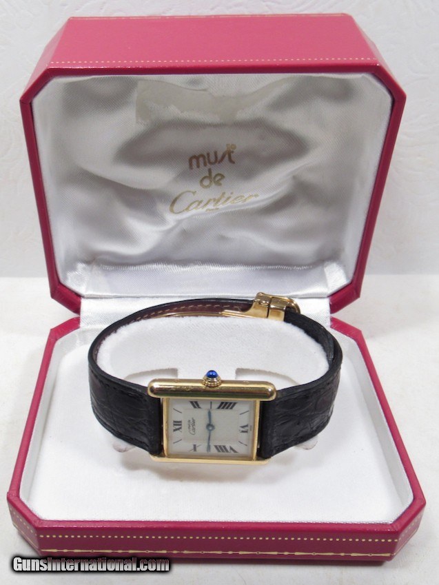 Description: SOLD - Cartier “Tank Must” Watch; Gold Over Sterling Silver Case; Made in Switzerland; Gold Clasp with Leather Band; Crown with Blue Sapphire Bead; Factory Box and All Papers; Fresh Battery as of May 2022; Current Retail is $2,790; See All Photos for Condition; No Texts; Call (254)541-5765 or Email Only; PERSONAL PROPERTY of Harold Wieser; Price: $975 + $45 S&H Via USPS PRIORITY MAIL; Payment Address: Harold Wieser - 1466 U.S. Hwy 77 - Rosebud, TX 76570; SEND PAYMENTS VIA USPS PRIORITY MAIL; BEWARE of SCAMS!!! – DO NOT SEND MONEY or CORRESPONDENTS ELECTRONICALLY UNLESS YOU HAVE SPOKEN to HAROLD WIESER FIRST! 254-541-5765 SOLD |