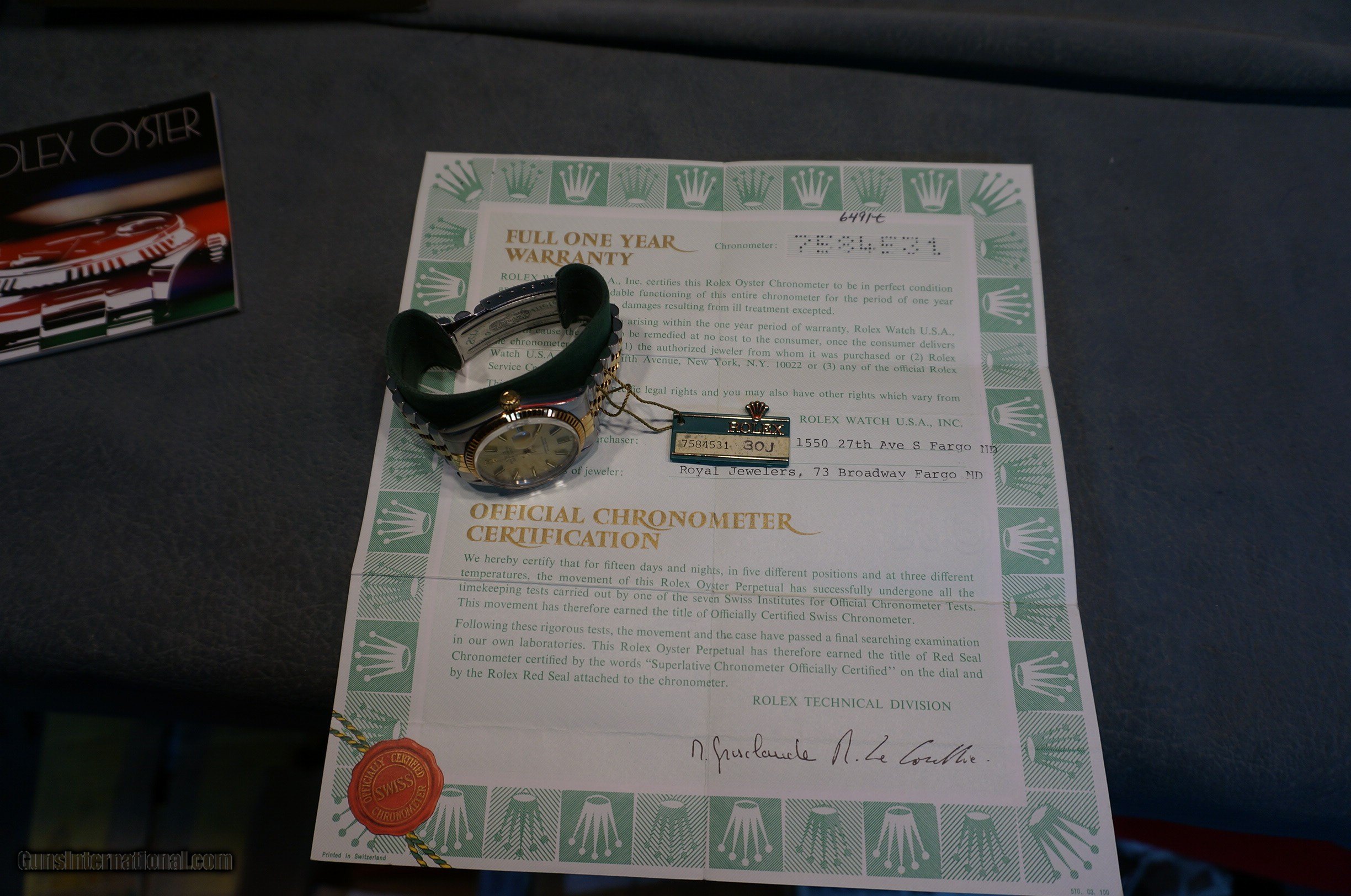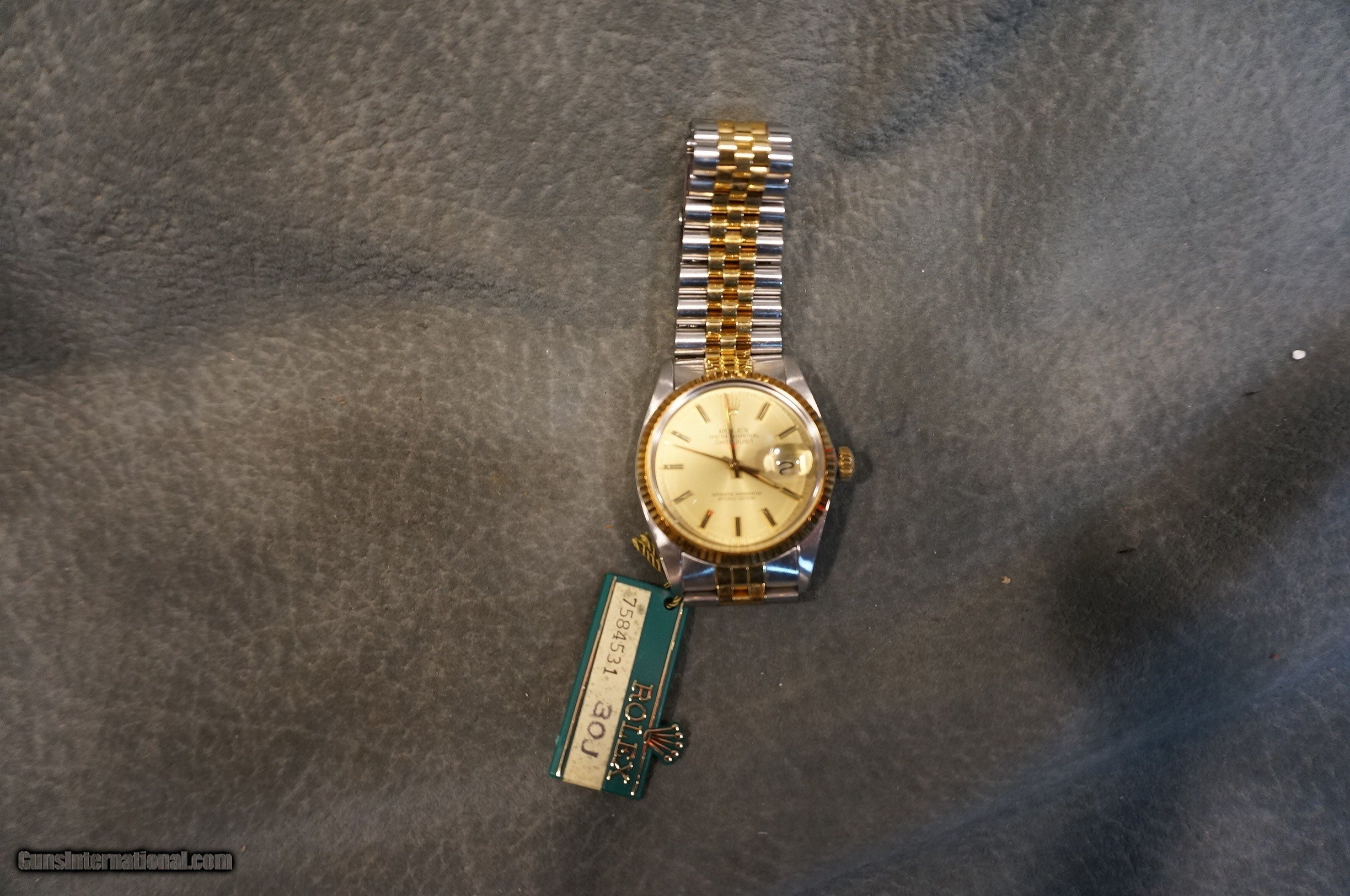 Description: Rolex Datejust Oyster Perpetual gold/stainless,excellent condition with the box and papers. GUN COLLECTIONS WANTED FOR CASH! We buy, sell, consign and trade new and used firearms. This is our 44th year in business. We offer 90 day layaways with 20% down. No return on layaways. Firearms will need to be transferred through a FFL dealer. Prices reflect a cash discount. There will be 3% added to credit card sales. We trade for gold and silver. THANK YOU! SOLD |