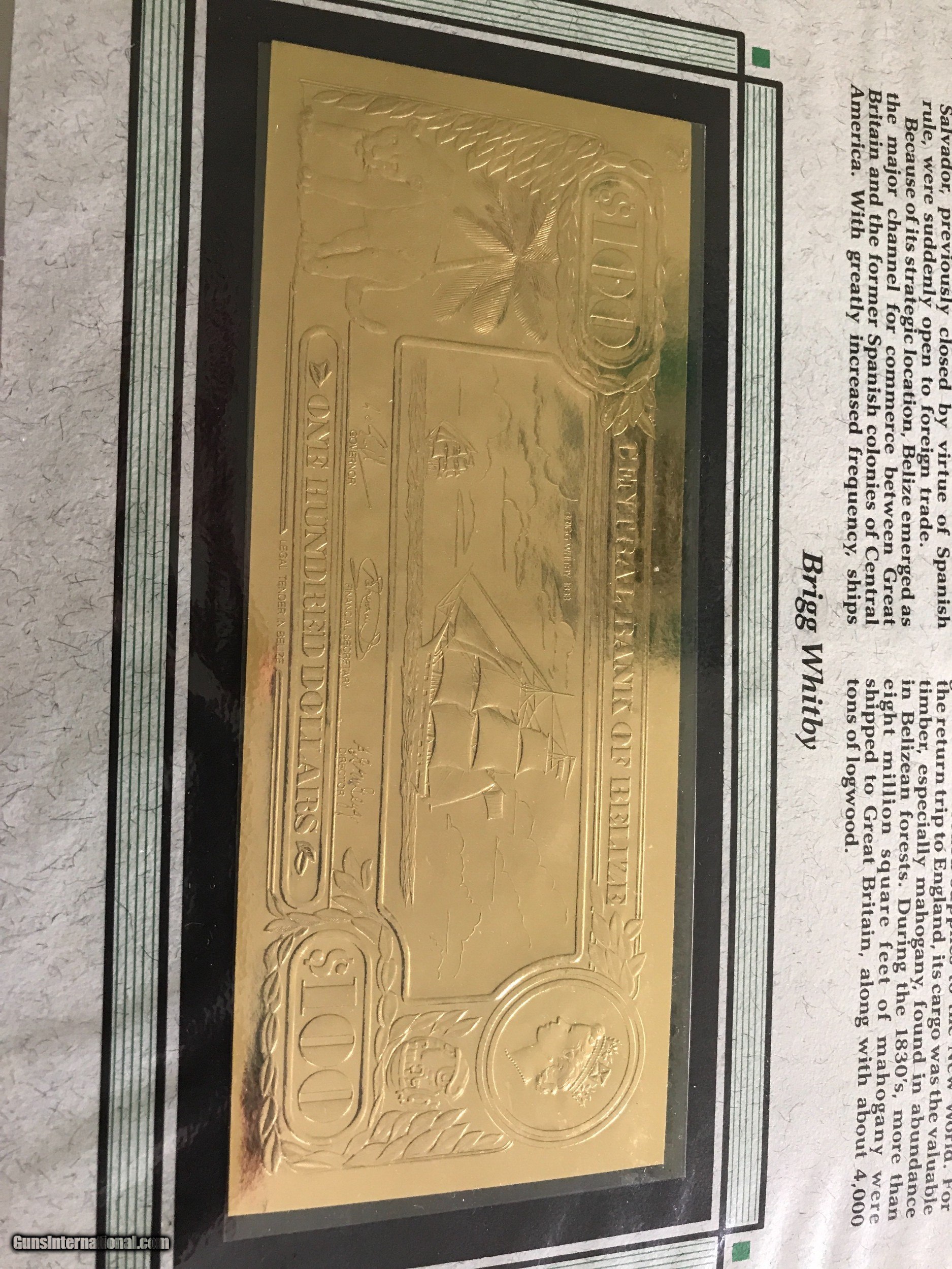 The First Gold Bank Notes Of Belize 22 Kt Gold