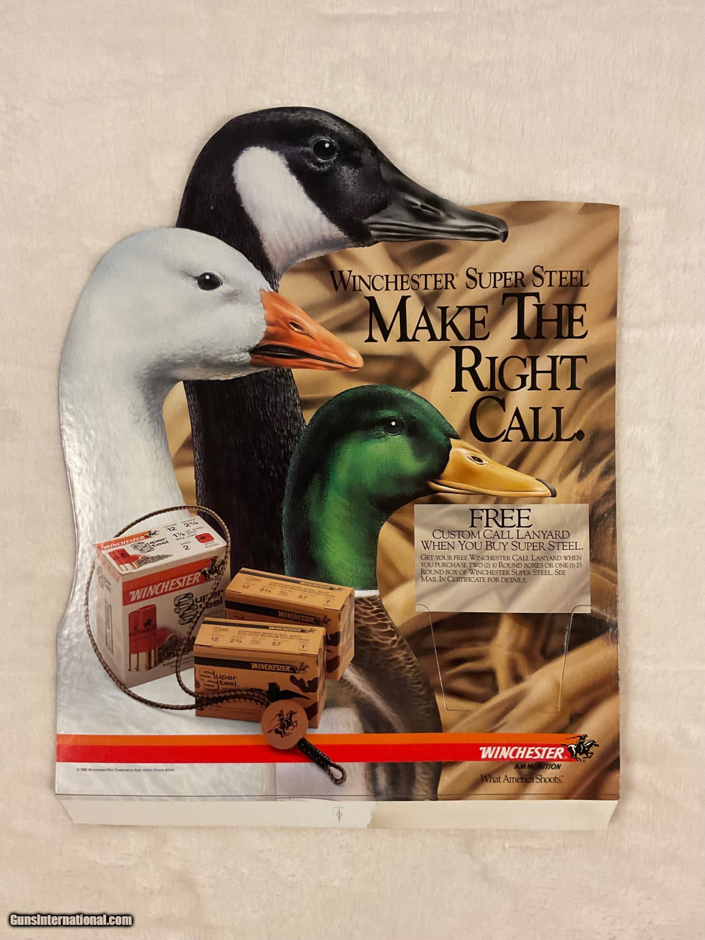 Description: Retro Winchester Cardboard Counter Sign 17.5in x 14in 'Make the Right Call' Like new condition Ground shipping included Credit card accepted with 4% service fee SOLD |