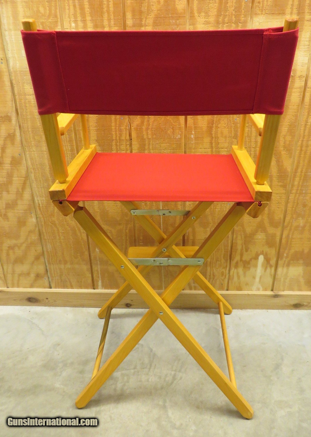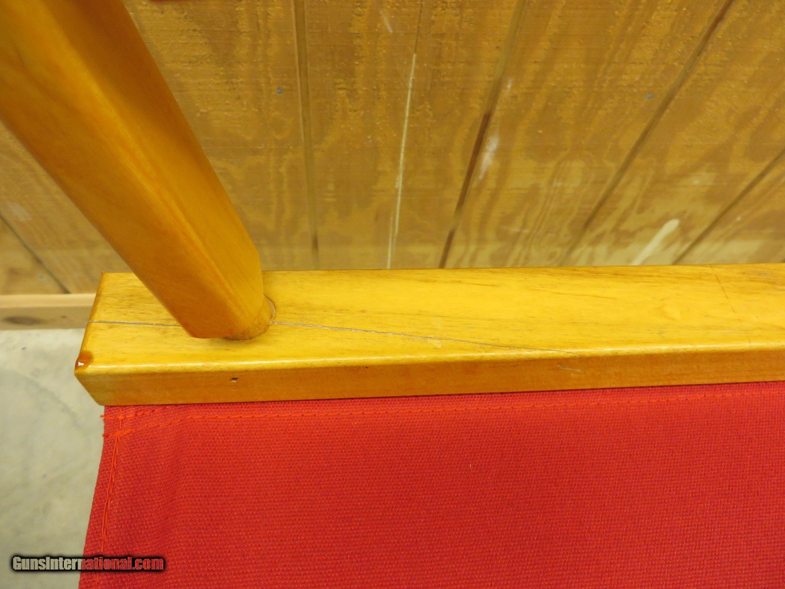 Description: Early 1990's directors chair with 31 inch high seat and 46 inch high back. Folds flat for storage and has footrest. New in original packaging but the wood under the left arm rest dried out and cracked. Has been repaired with epoxy and hidden screws so should be strong as ever. SOLD |