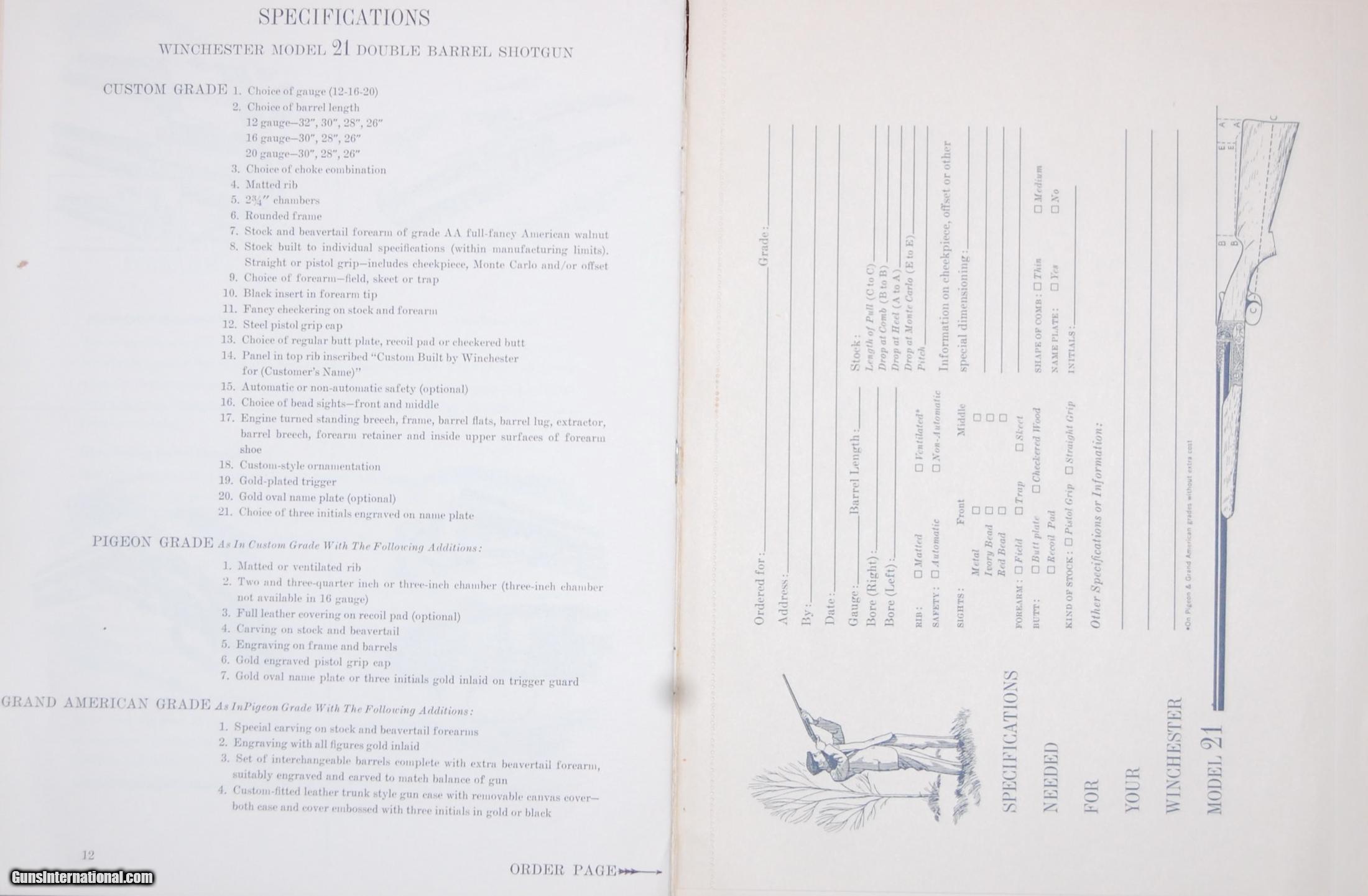 Winchester Model 21 Ten page brochure and order form