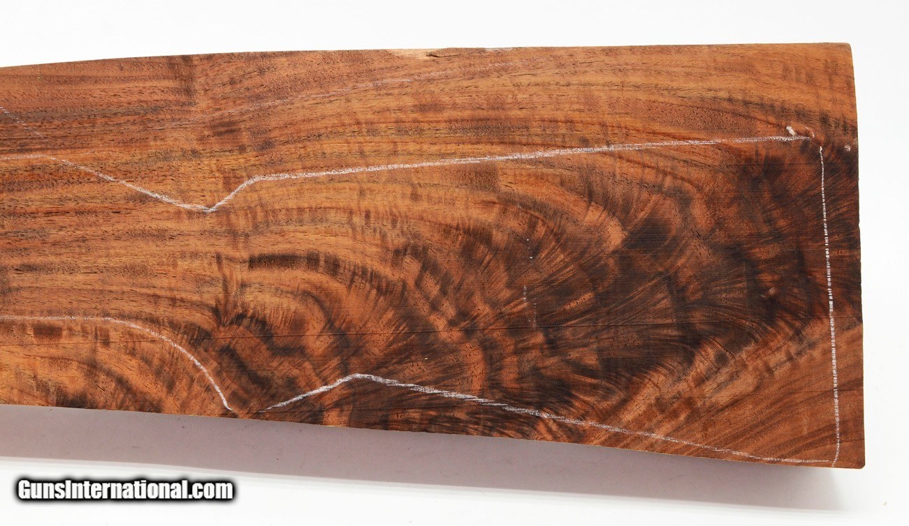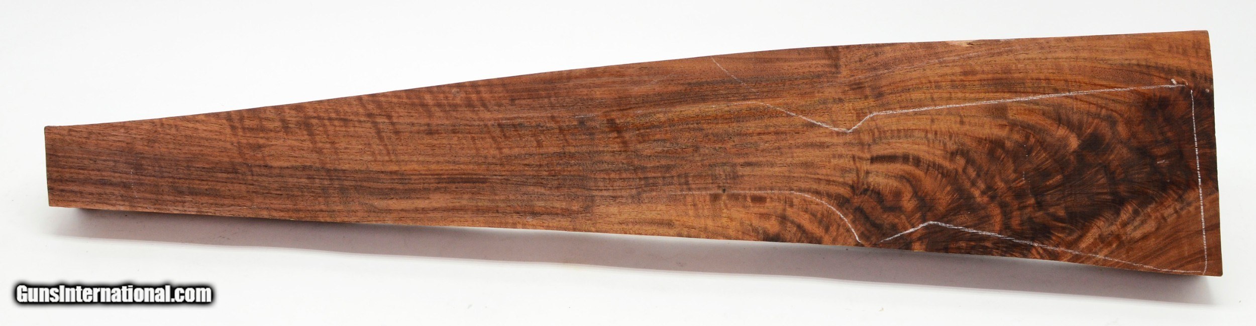 Description: AAA Grade Walnut Gunstock Blank AVAILABLE FOR PURCHASE AT OUR ON-LINE STORE Here at Custom Shop, we are proud to offer high quality, hand crafted gun stocks with multiple options available. Built on-site by our Master Stock Craftsman, we use hand selected hardwoods in a variety of grades and types to match the palette of even the most discerning customer. We take pride in every stock we create. With over 16 years experience, and more than 20,000 built, you are assured that your gun stock will meet or exceed your expectations. Whether you wish to restore and preserve your original stock or choose a completely new one, Custom Shop offers the finest in quality and customer satisfaction. DIMENSIONS