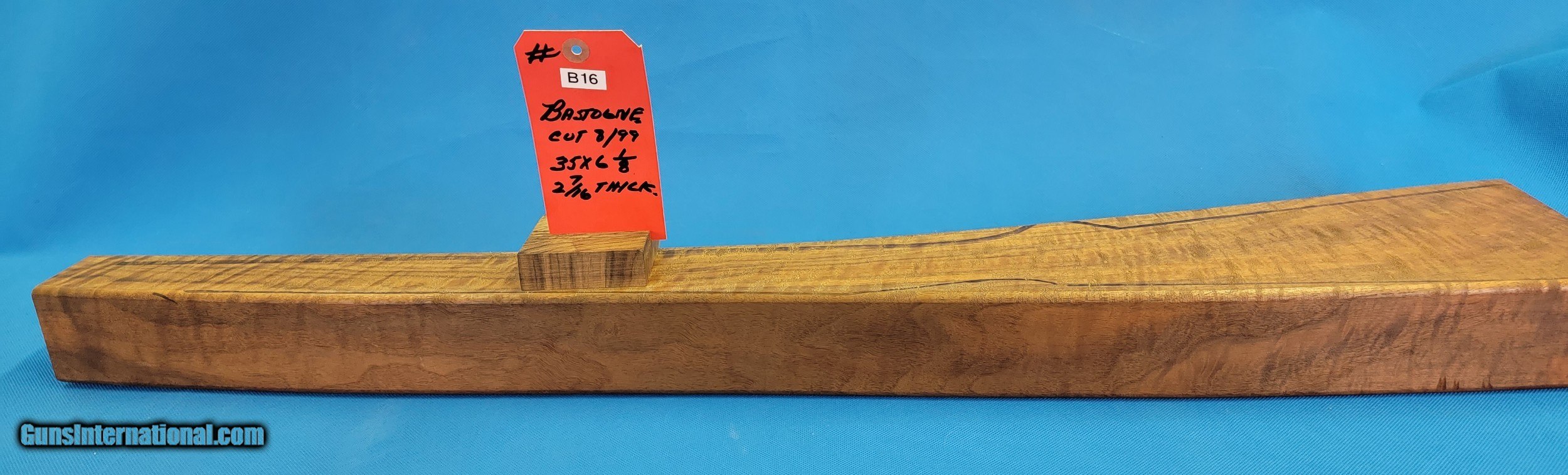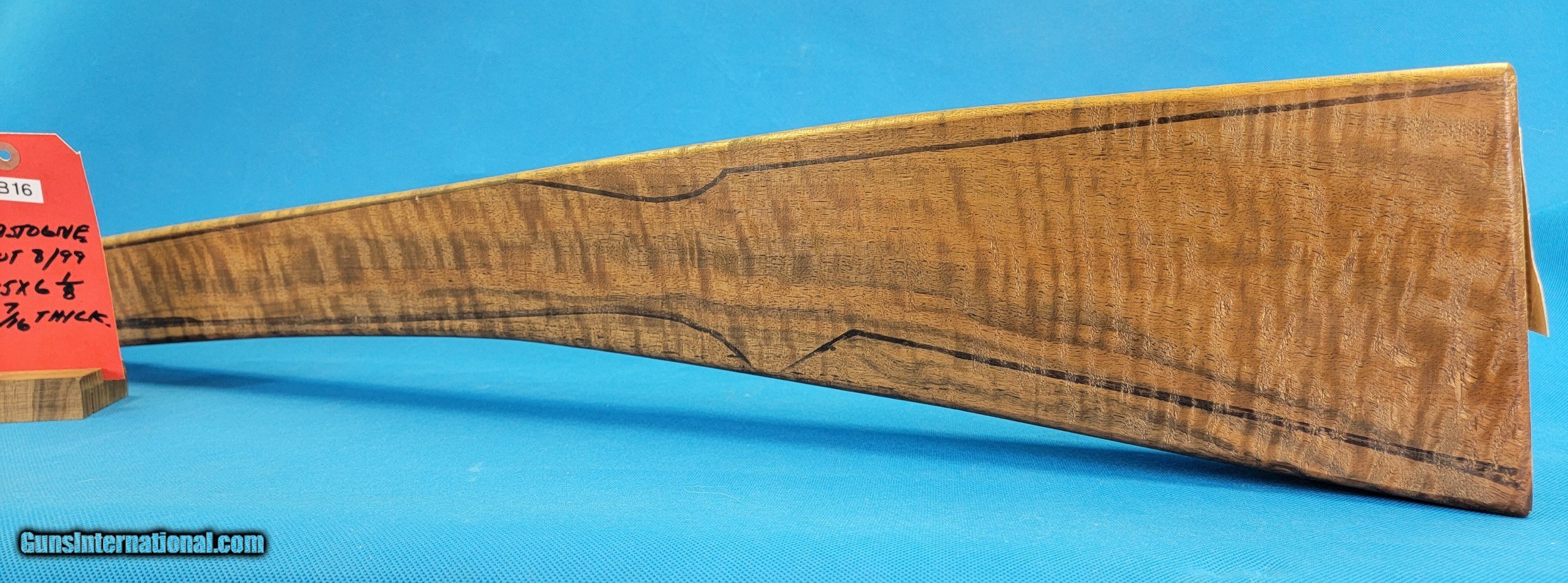 Description: I you are a fiddle man ( or woman) this blank will make your toes start to tap ! This is a full fiddleback blank with good color and mild striping here and there. Great layout, dense and strong. Cut and air dried since August of 1999. Suitable for any caliber. This blank Is READY TO CARVE! SOLD |