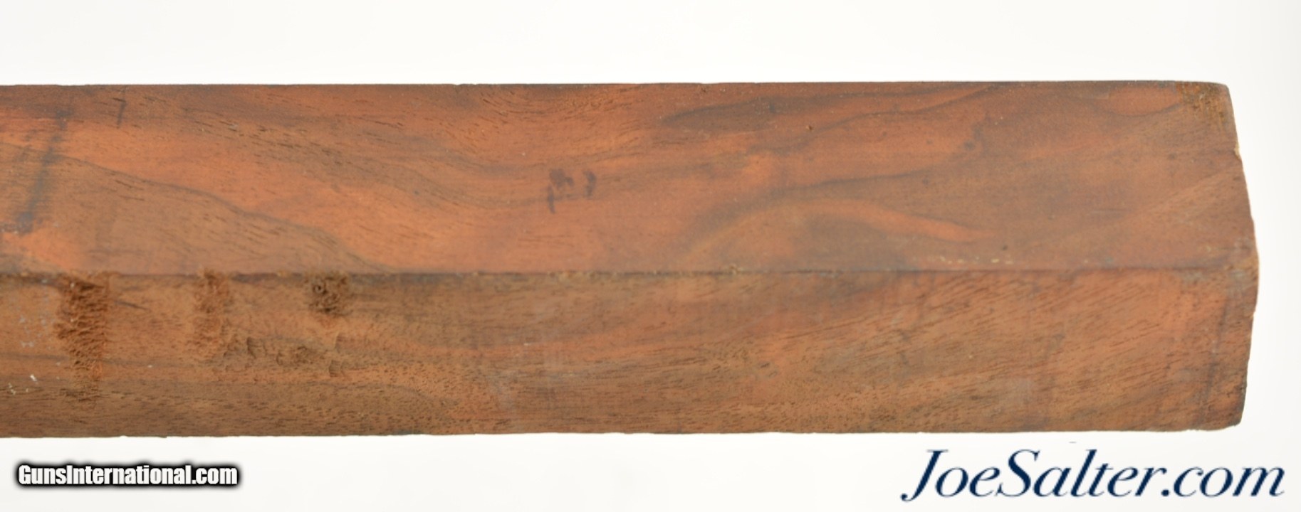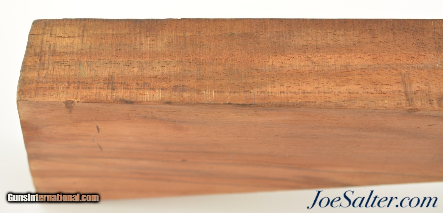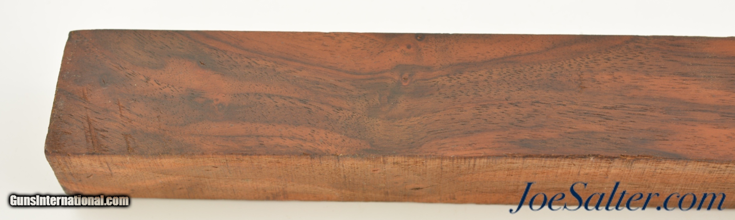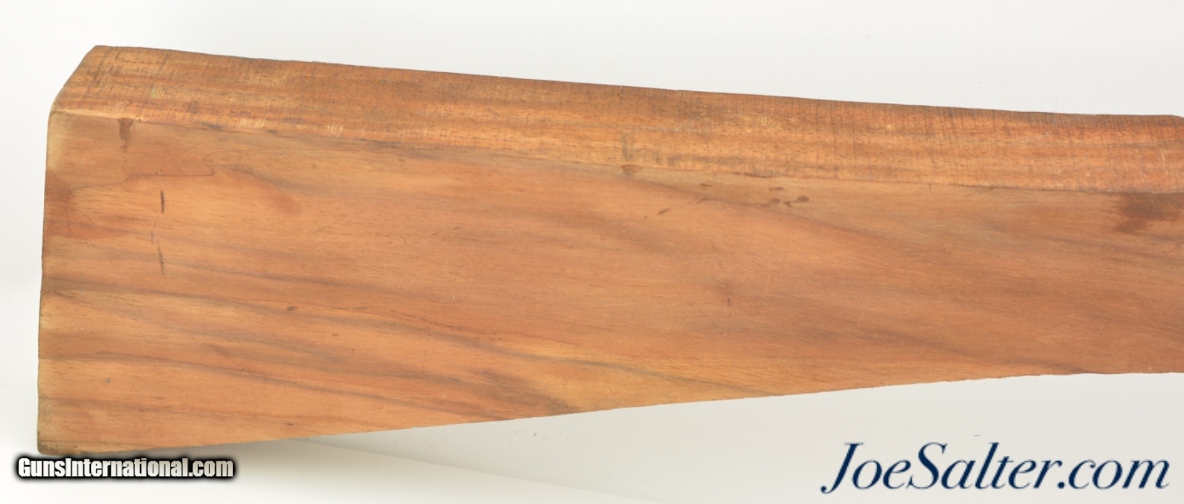 Description: This is a fine piece of figured Circassian Walnut wood cut into a gun blank for a traditional long rifle. This comes from an old New England gunsmith who put aside a lifetime supply in his dry barn where it has slowly aged from 40 to 60 years. It measures 60 inches in length and is 5" wide at the base tapering to 2" at the top and is 1" thick at the base and 1" at the top and weights 6lbs 3oz. Disclaimer: Wood blanks are sold as is with no written or expressed guarantee or warranty of defects, serviceability, or interior quality. In other words what you see is what you get - very slowly dried old growth wood and you will receive the exact one that is photographed. SOLD |