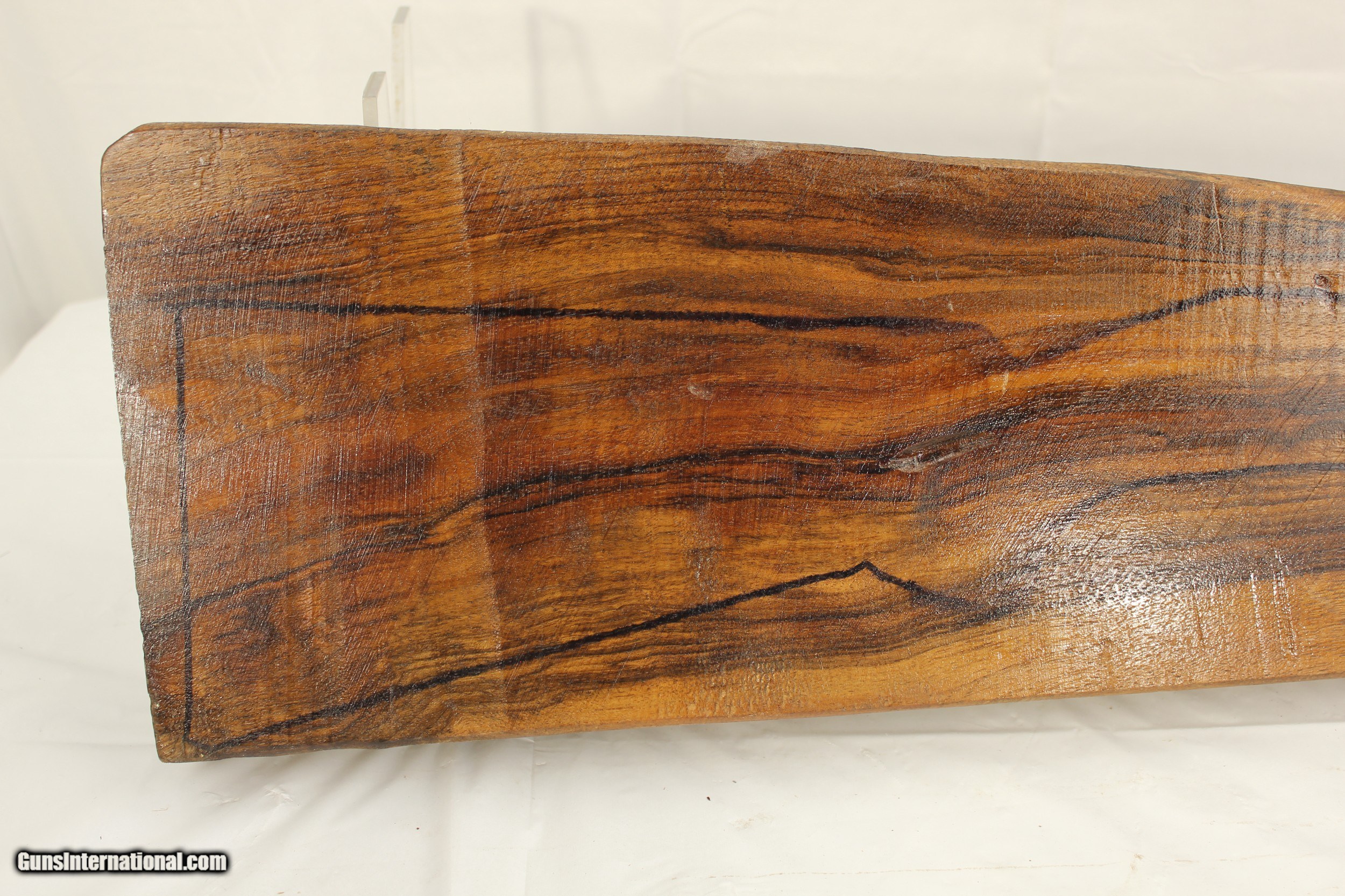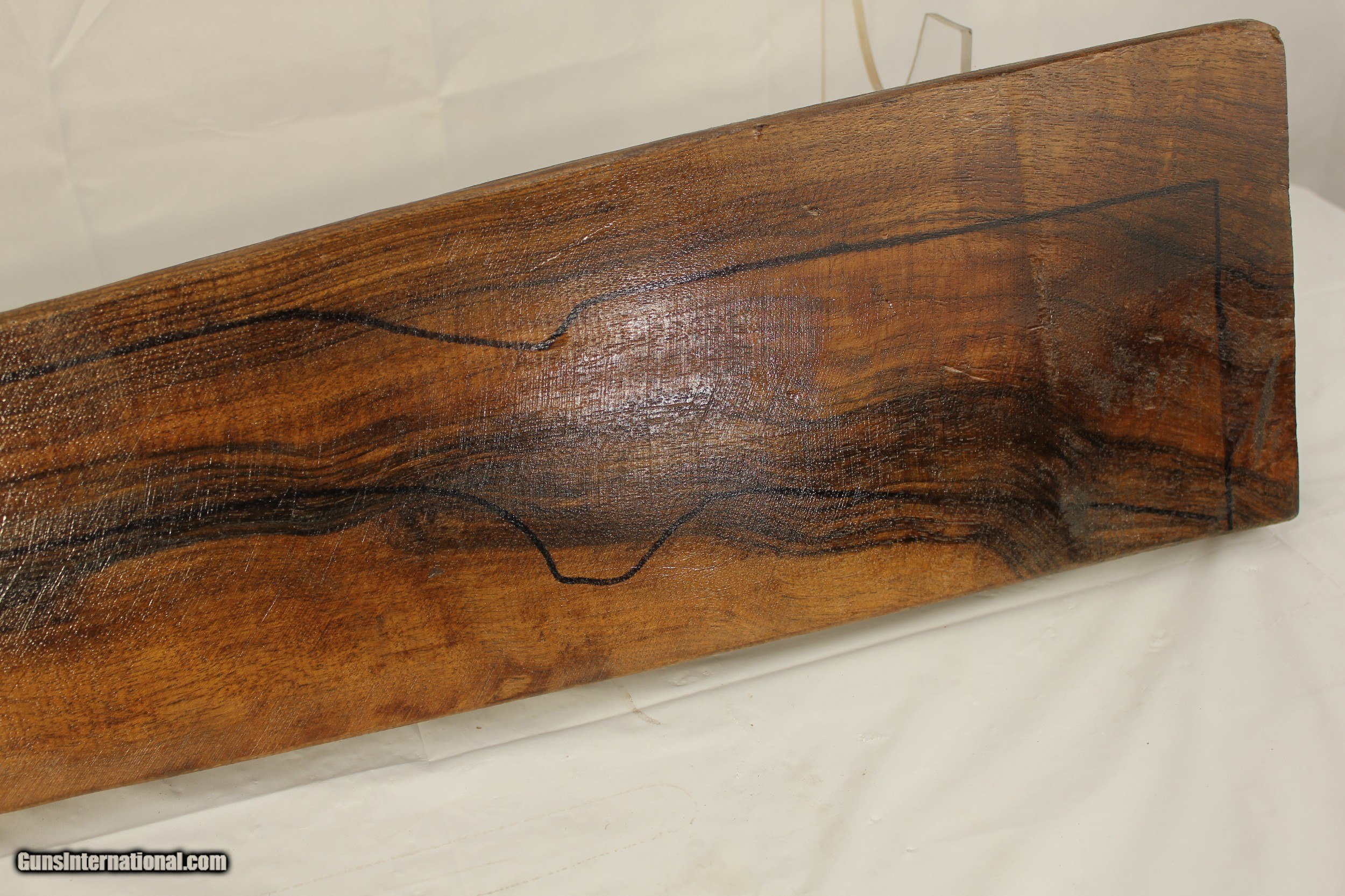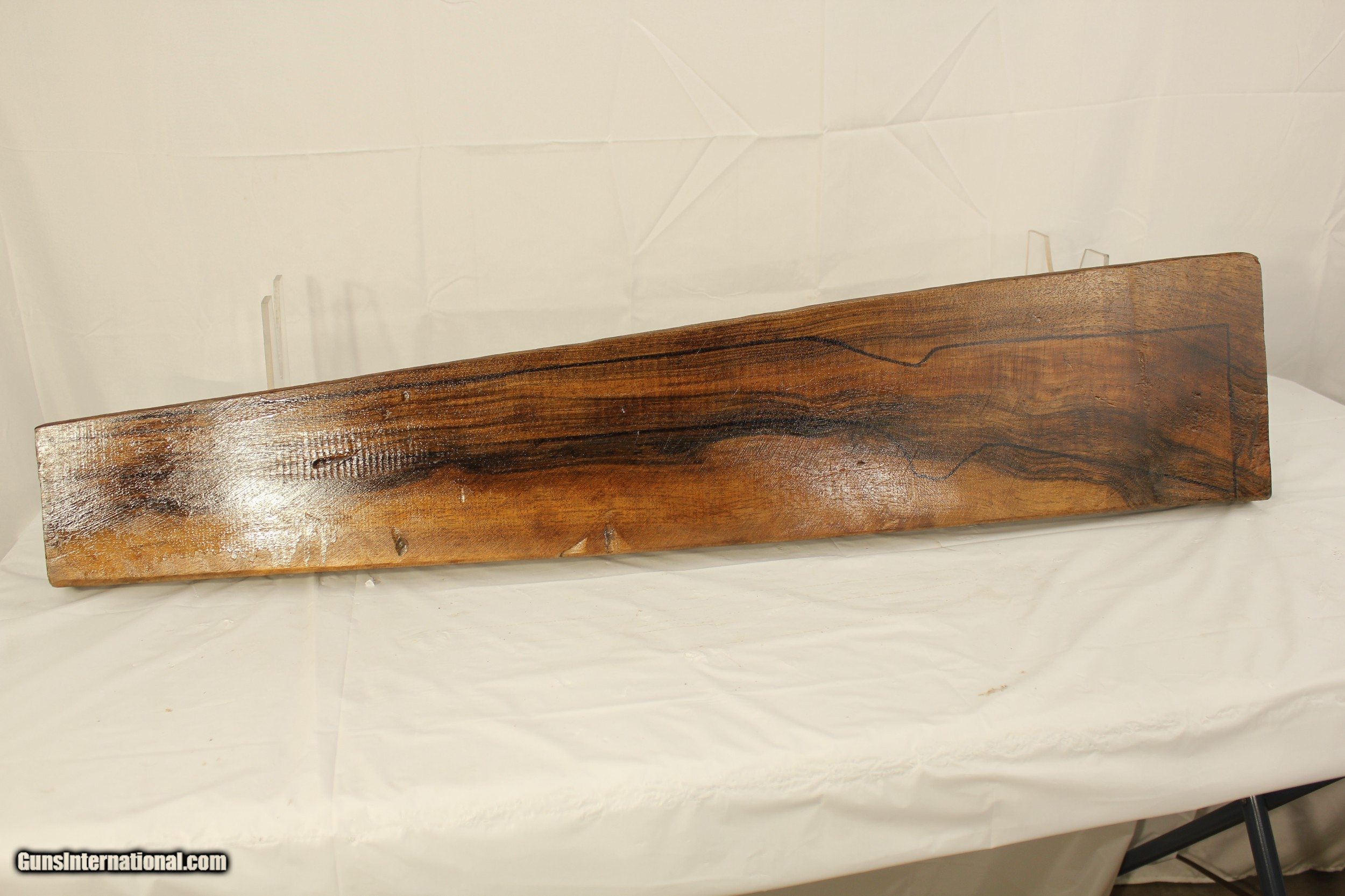 Description: A beautiful Black Walnut Rifle blank with good mineral streaks and figure. 36"x2.25"x7.75" x4.5 SOLD |