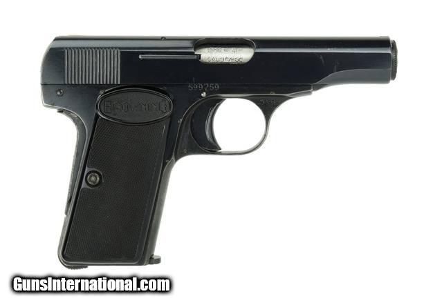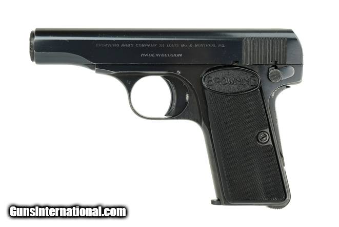 Description: Browning 1955 .380 ACP caliber pistol. Pre-1968 Pocket Auto. Shows some wear on the grip frame, very good condition.