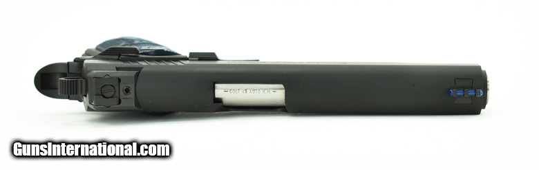 Colt Government Competition .45 Auto caliber pistol. Competition model with fiber optic sight and blue G10 grips.