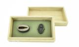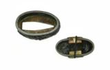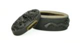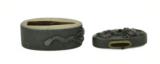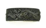 Description: Fuchi Kashira Kinko with dragon with gold eyes. Shakudo with Nanako ground. Unsigned. Very good condition. SOLD |