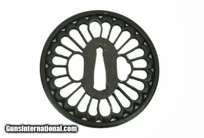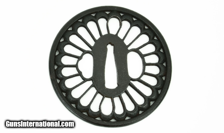 Description: Iron Sukashi Tsuba with 24 Petals. Diameter: 8 cm, 3 ¼”. SOLD |
