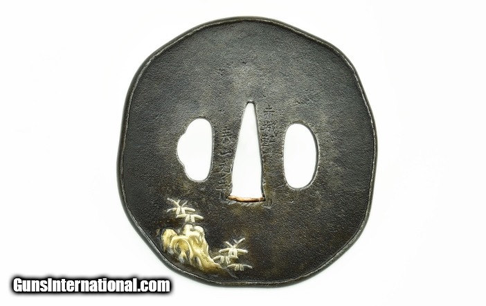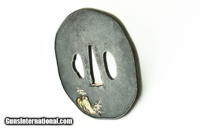 Description: Iron Tsuba Tiger in Bamboo. Signed Moto Masa (illegible last Kanji). Diameter: 8 cm, 3 1/8”. SOLD |