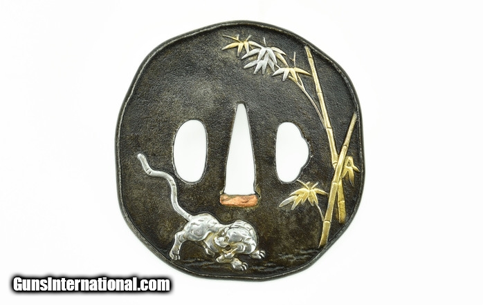 Iron Tsuba Tiger in Bamboo (MGJ48)