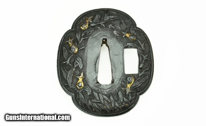 Description: Iron Tsuba with Nanako Foliage Motif. Diameter: 6 cm, 2 3/8”. SOLD |
