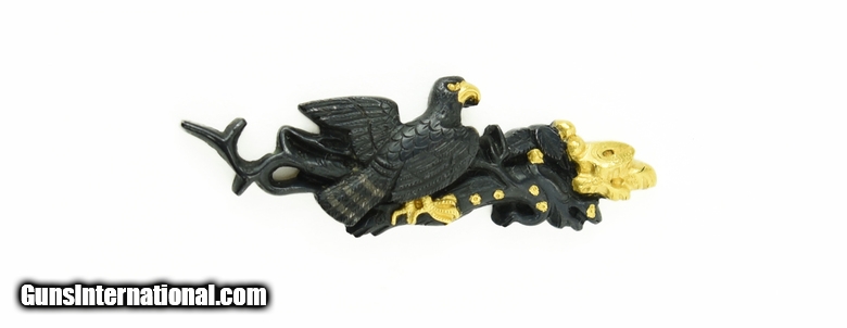 Kinko Menuki. Polished shakudo ground. Hawks resting on tree branches with gold highlights. Ishiguro School is highly rated. Very early 19th Century. N.B.T.H.K. Hozon Tokubetsu issued in 1983. Excellent detail.