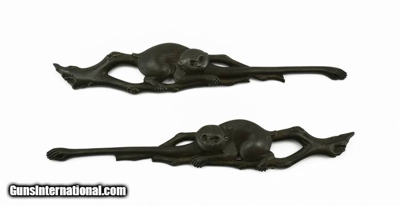 Kinko Menuki. Very large shakudo monkeys. They are 4 ½” long each!