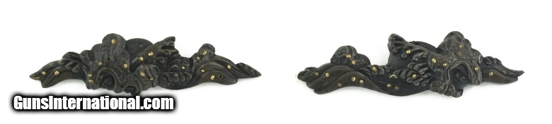 Description: Kinko Menuki. Motif of waves with froth and gold highlights. Large and very well done. Unsigned. Boxed. SOLD |