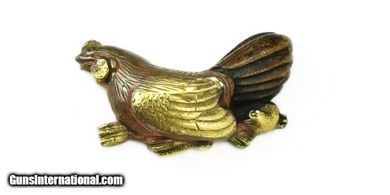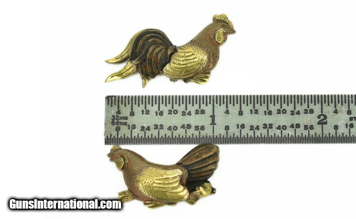 A pair of Menuki rooster and hen carved in copper and gold. Unsigned. Excellent condition.