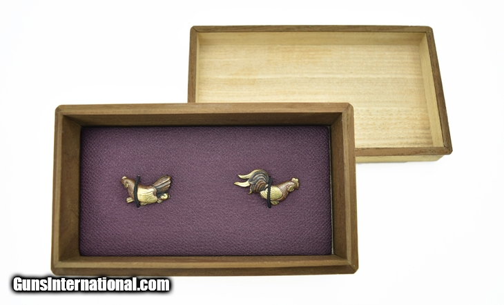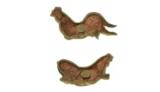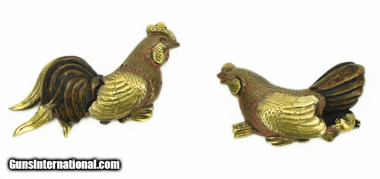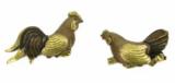 Pair of Menuki Rooster and Hen carved in copper and gold (MGJ77)