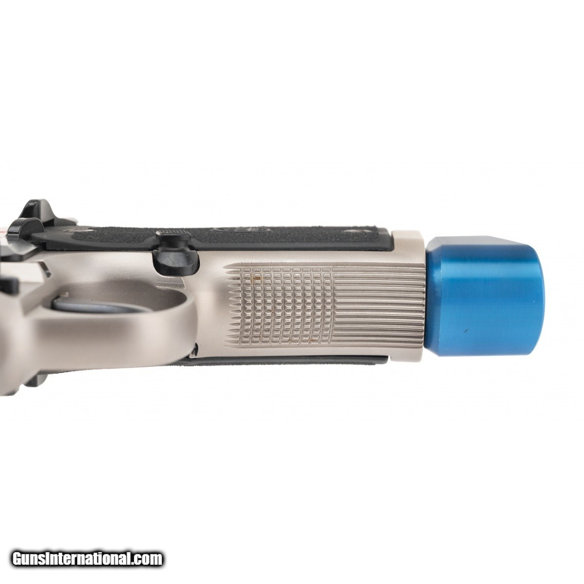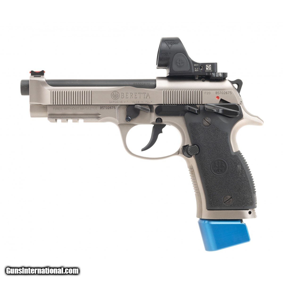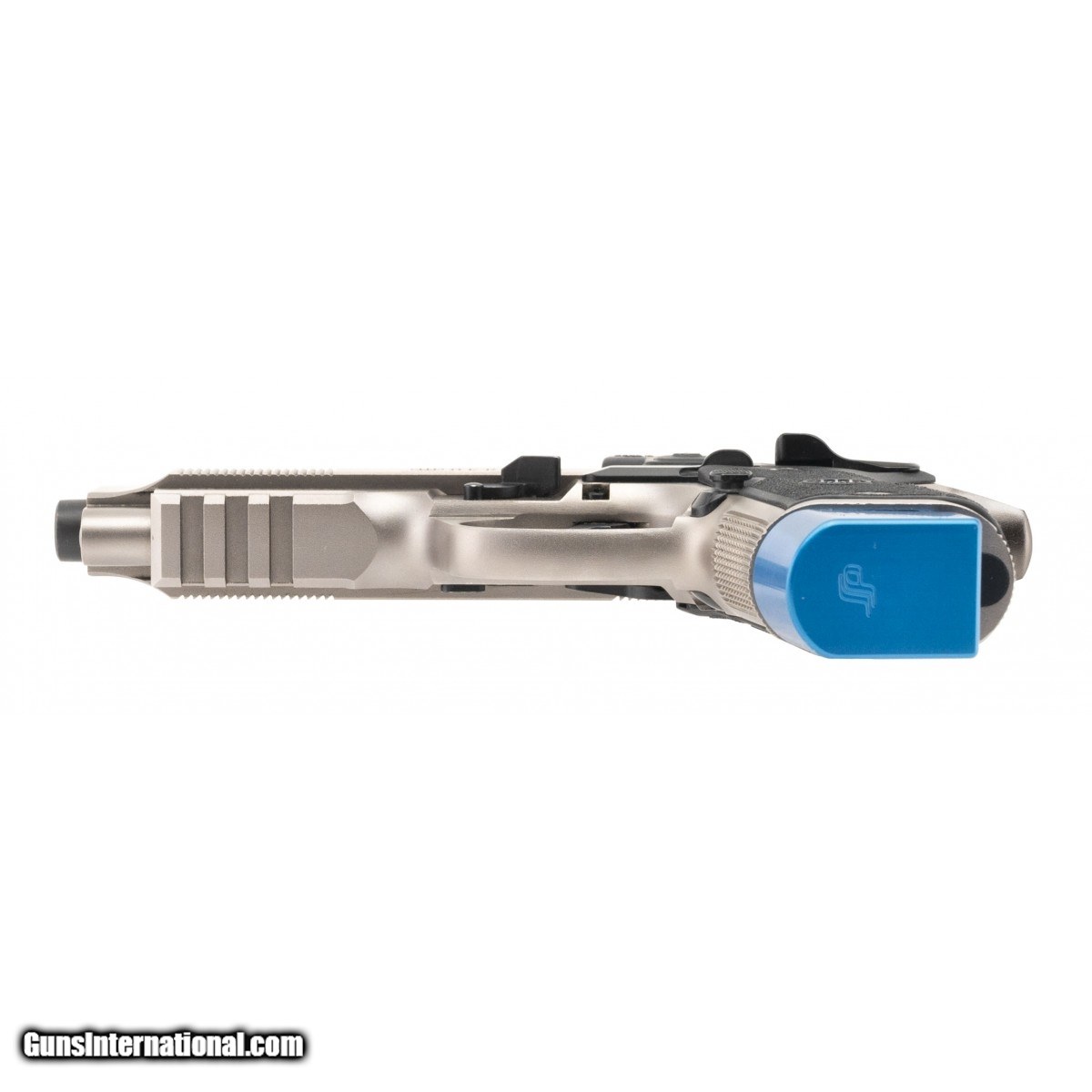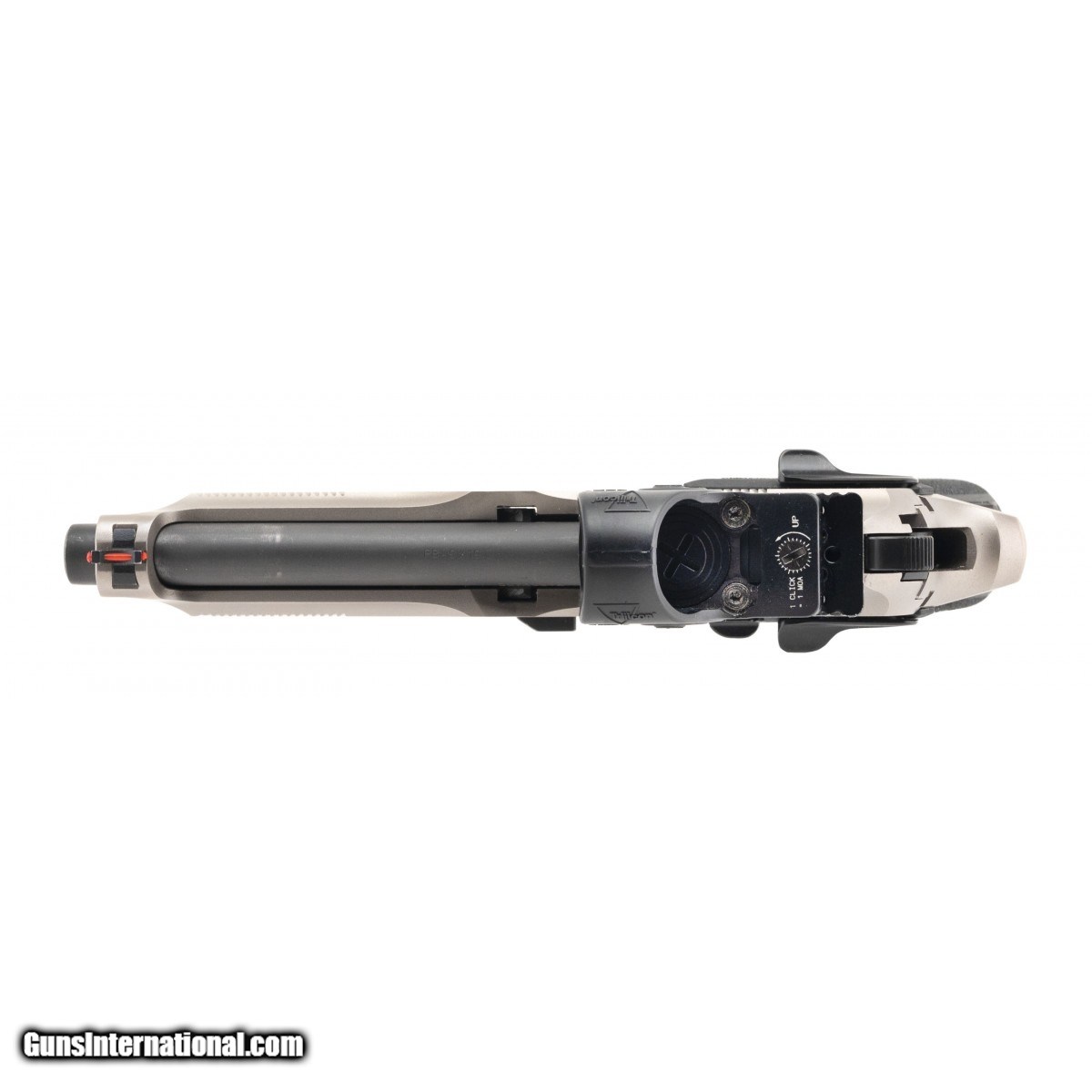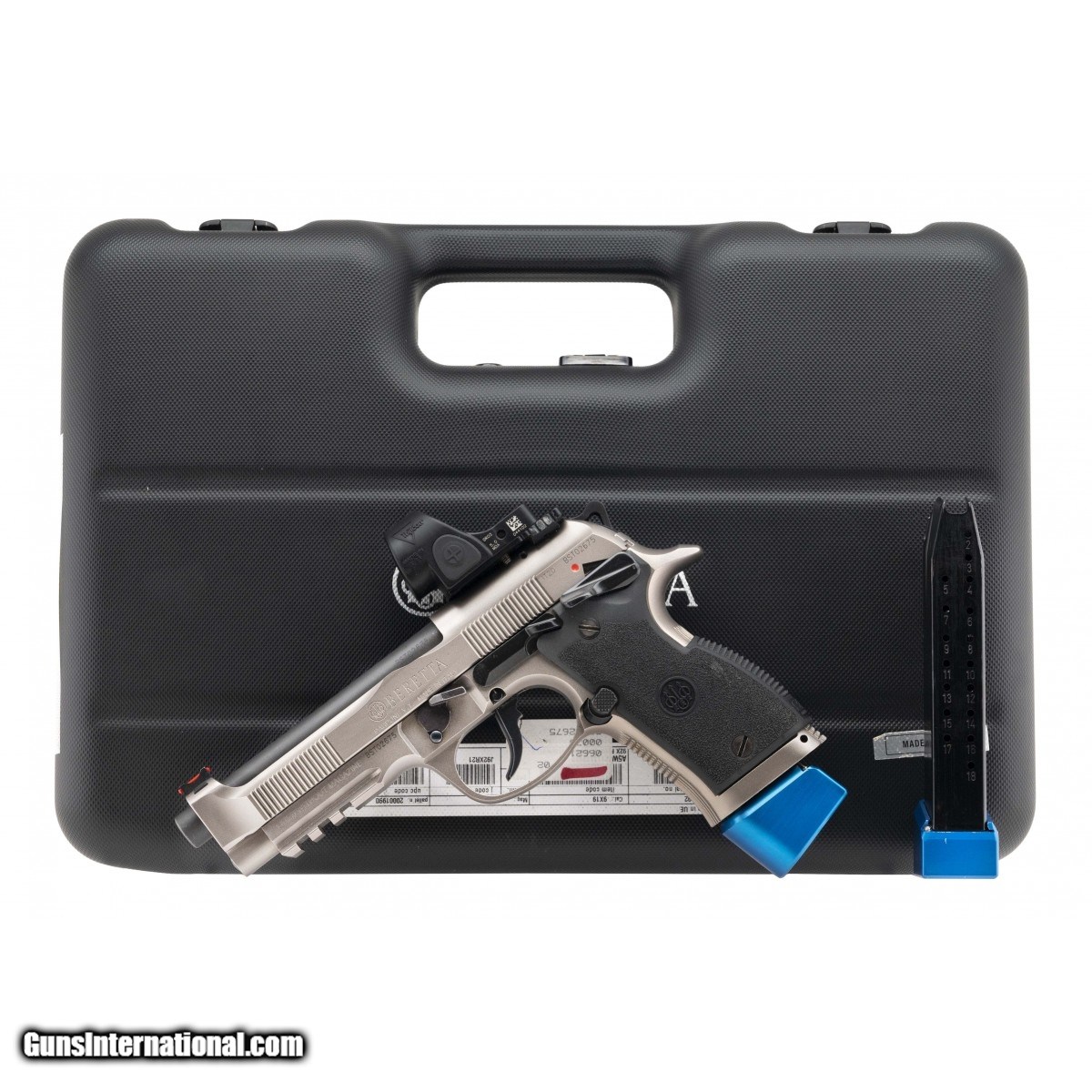 Single/Double action pistol with an ambi safety and, a fiber optic front sight. Overall in excellent condition, comes with the box, an extra magazine and, a Trijicon SRO.