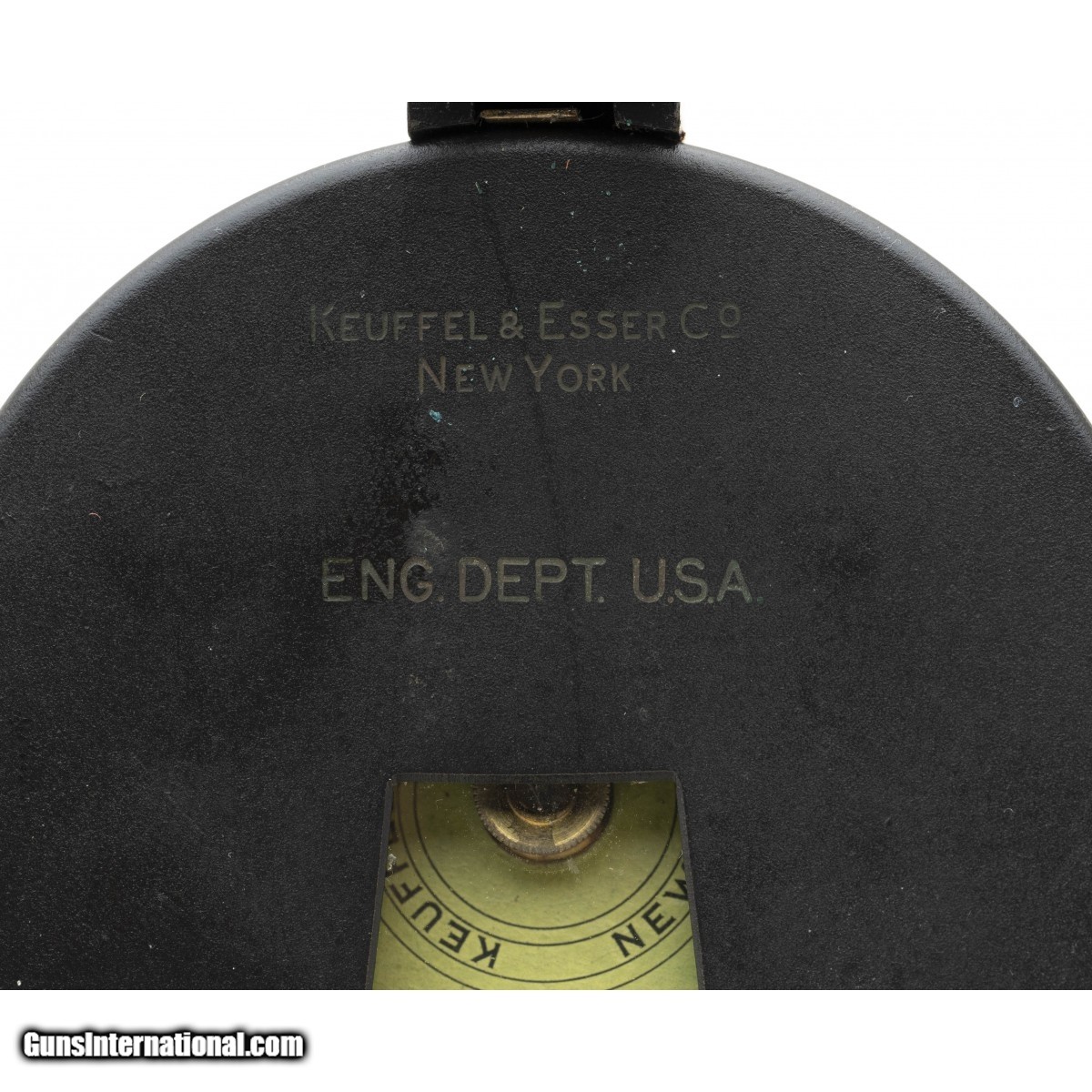 Description: " This compass is marked ""Keuffel & Esser Co./ New York/ Eng. Dept. USA"" The metal case and glass is in very good condition. Compass measures 3"" in diameter. Comes in a Prismatic Compass M1918 leather case. SOLD |