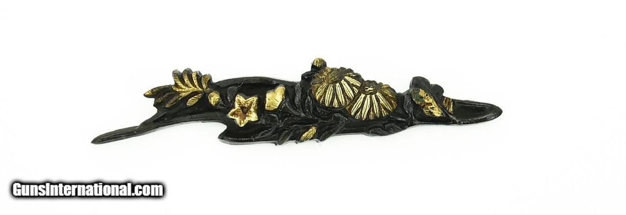 Description: "Kinko Menuki. Foliage motif with various flowers in gold. Katana sized. Unsigned. SOLD |