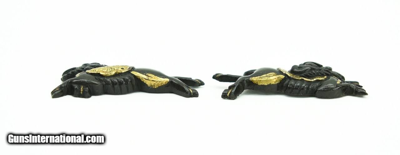 Description: "Kinko Menuki of running Shi-Shi in Shakudo and gold. Katana sized. SOLD |