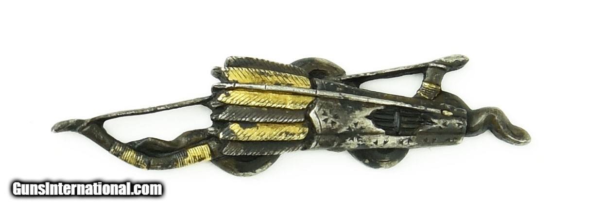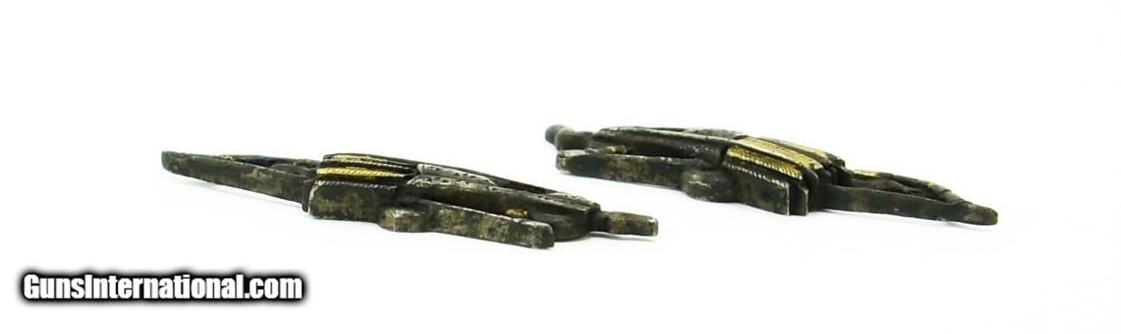 Description: "Menuki Bow, Arrow and Quiver Theme. Good detail with gold and silver highlights. Excellent condition. SOLD |