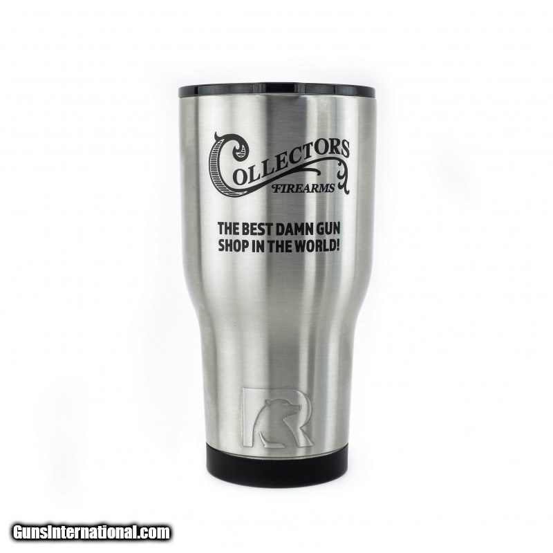 Description: "30oz RTIC double wall vacuum insulated tumbler, stainless steel. Splash proof flip lid included with purchase.Featuring laser engraved Collectors Firearms logo on cup body. CALL TO ORDER: (713)781-1960 SOLD |