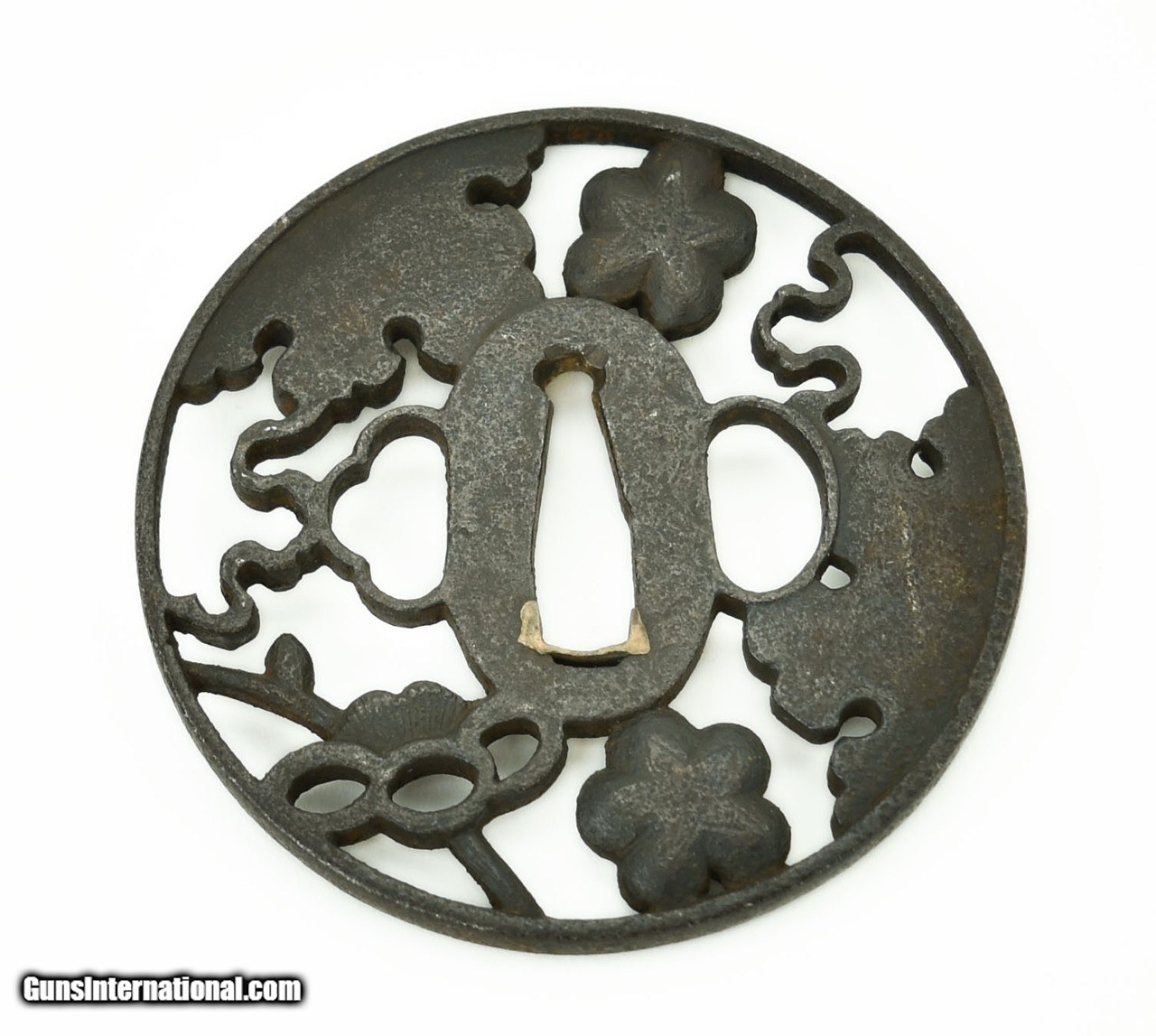 Description: "Sukash Tsuba with Floral Motif (7.9cm/3 1/16""). SOLD |
