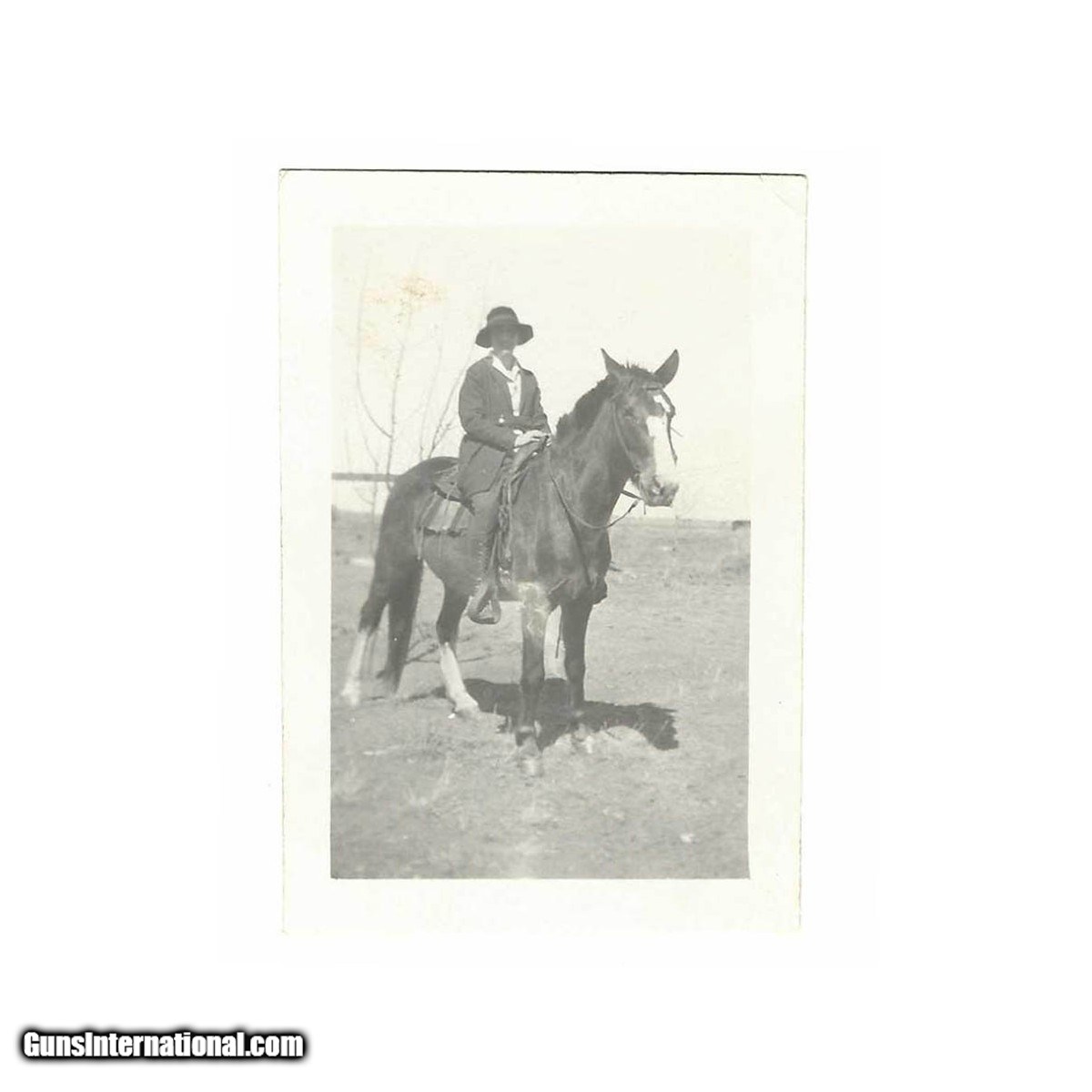Description: " Three photos taken by John Flood at the Earp’s property included a photo of Mrs. Earp in 1907. These items came from John Flood who was Wyatt and Sadie Earp’s personal Secretary and closest confidant. Mr. Flood even wrote a biography on Wyatt Earp that was never published. He was given and inherited numerous items from the Earp’s. Mr. Flood in turn passed the Earp collection on to John Gilchriese. Mr. Gilchriese owned and operated The Wyatt Earp Museum in Tombstone, AZ, where all of these items were displayed. These items were sold directly by Mr. Gilchriese to David Roberts along with Mr. Gilchriese’s notes on each item. Each item comes with a certificate of authenticity from Collectors Firearms. SOLD |