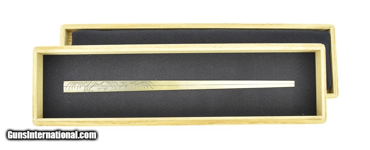 Description: "Wari-Kogai. Ferns with tree and birds. Appears to be Shibuichi in custom box. Excellent condition. Rare and elegant Wari-Kogai. SOLD |