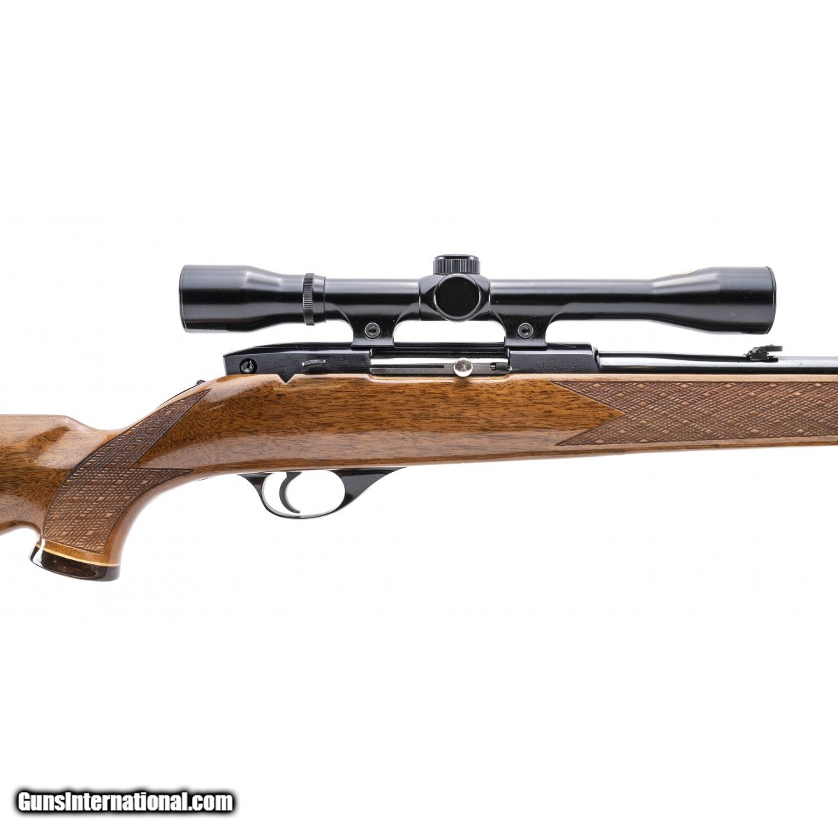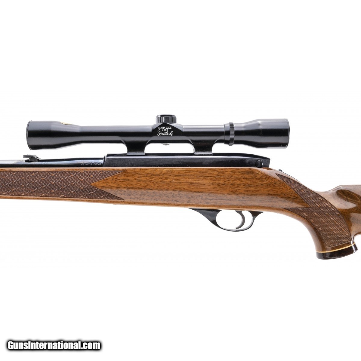 U.S. made Deluxe .22 semi-auto rifle with magazine tube. Has a Weatherby 4X scope. Excellent condition.