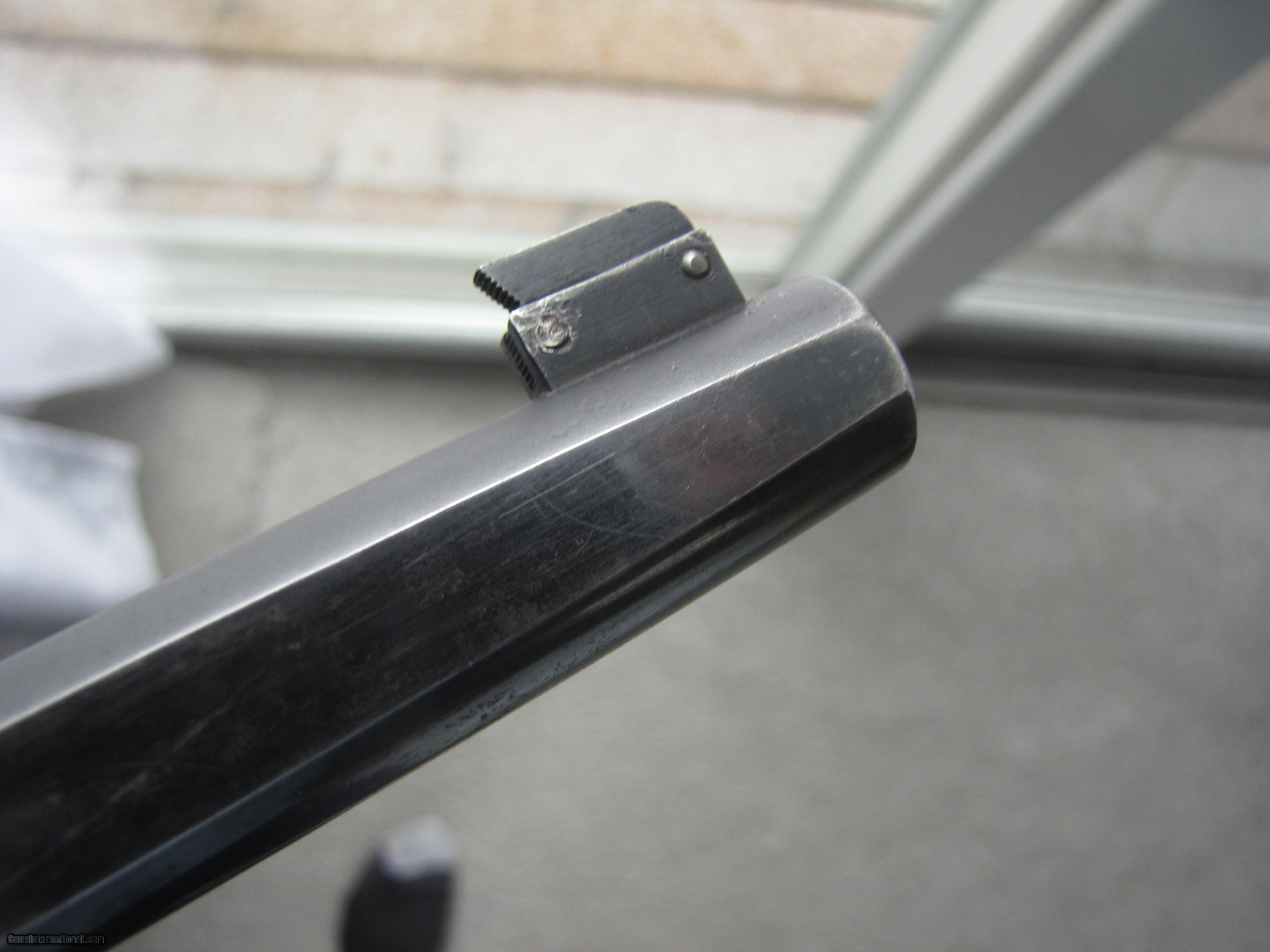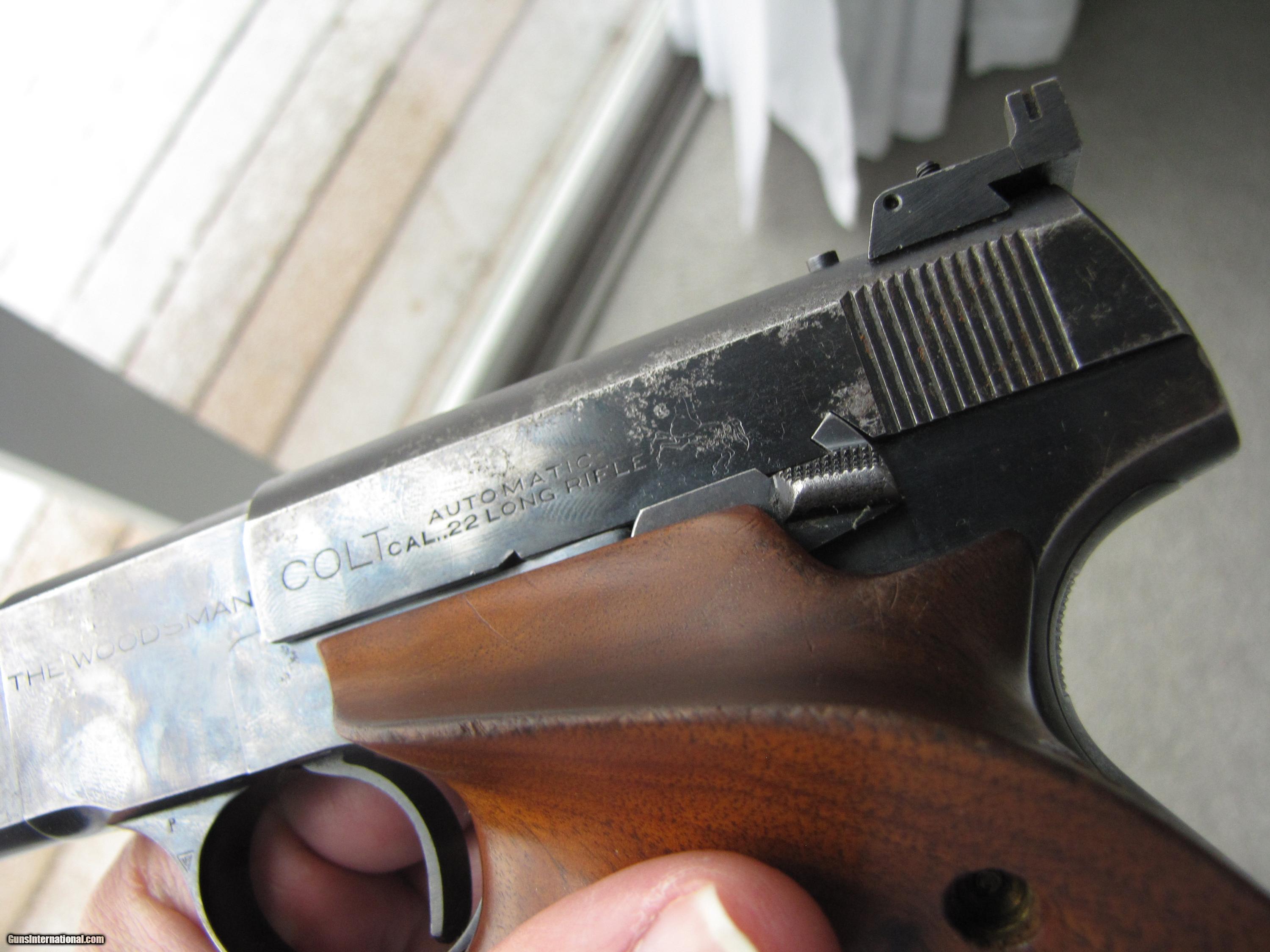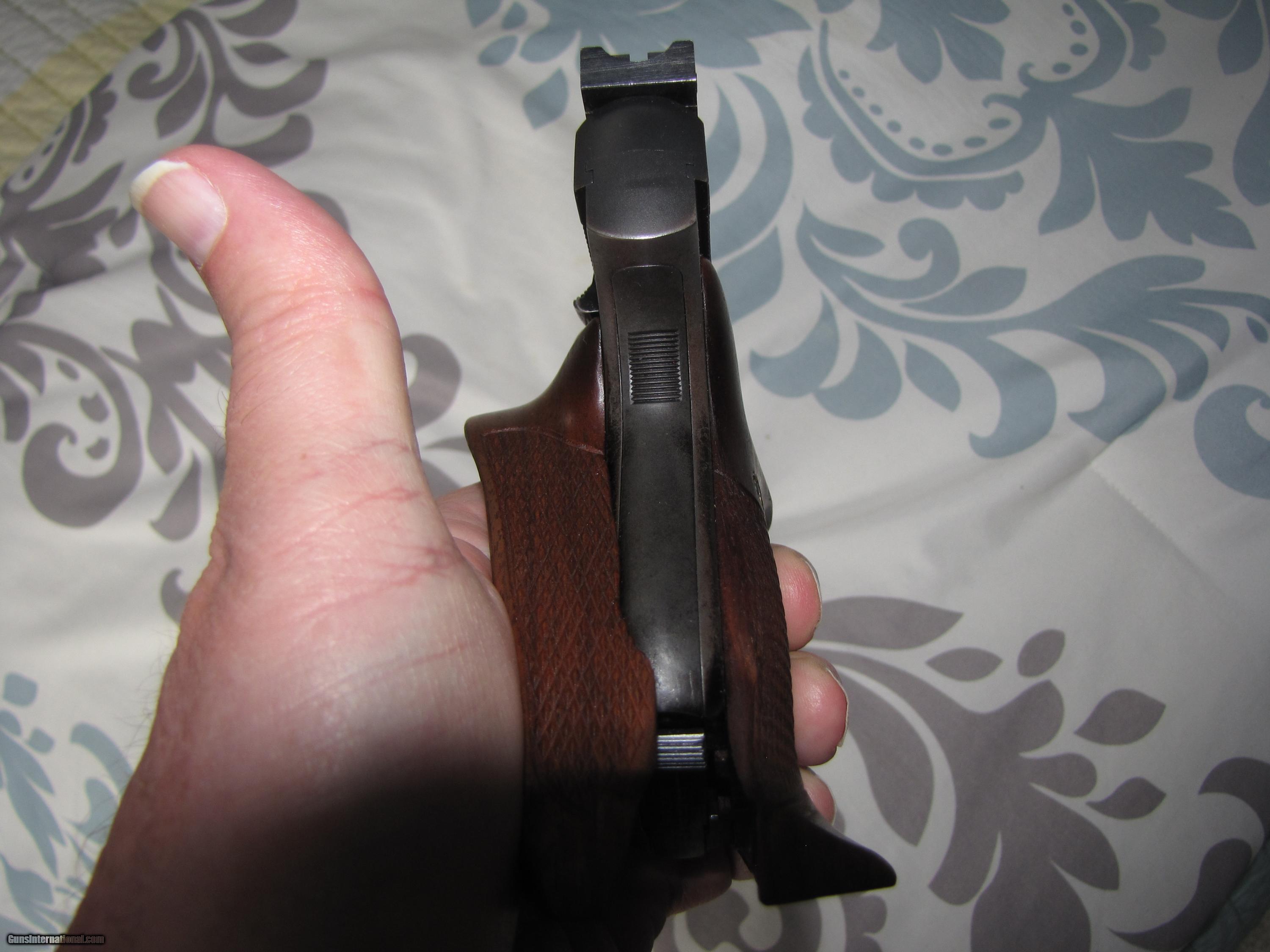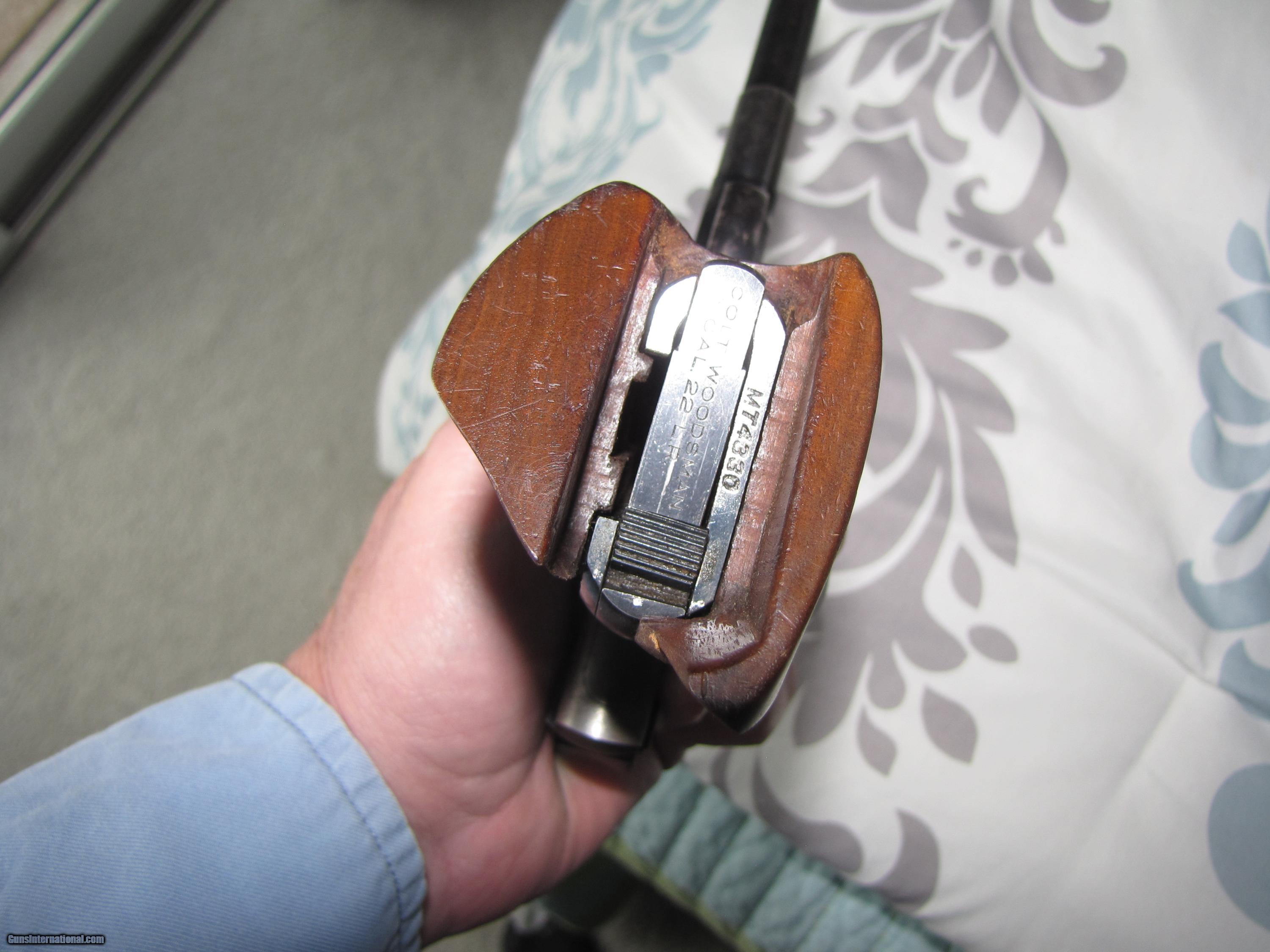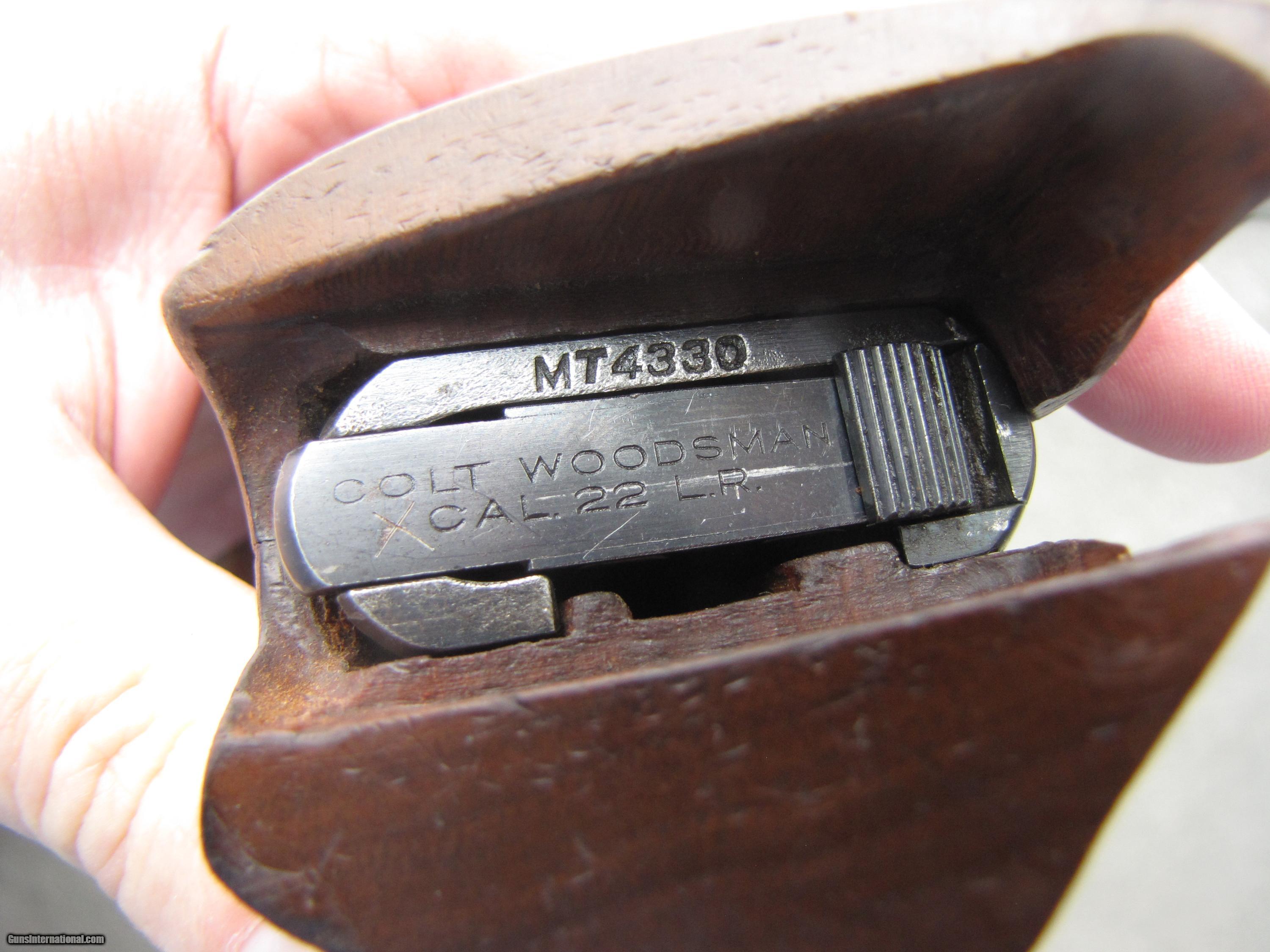 Description: This early 1939/1940 COLT WOODSMAN MATCH TARGET ,is totally blued and in near mint shape, the competition walnut grips give you get control. This comes with nine shot clip, This gun is so smooth and accurate ,and well built, serial number MT 4330 put it being built in 1939/40 the quality is unmatched. SOLD Manufacturer: Colt Model: Match Target 1939/40 Serial Number: MT 4330 Caliber Info: 22 Bore: near mint Condition: near excellent Metal Condition: near mint Wood Condition: walnut/very good Bore Condition: near mint |