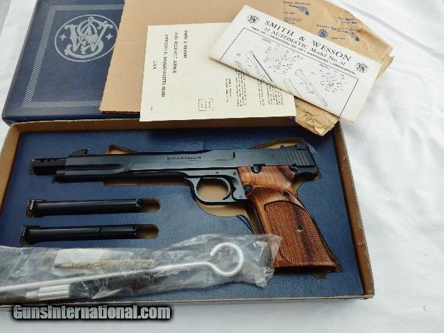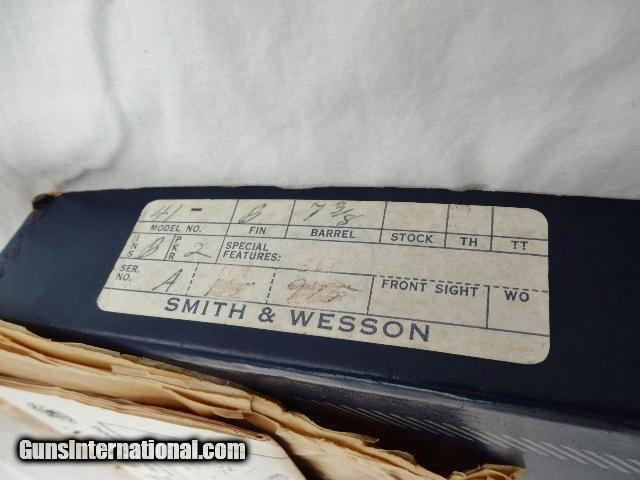Description: This is a Smith Wesson 41 22 with a 7 3/8 inch barrel. This gun is 99% in a correct 41 box but not the matching serial numbered box. Kept it in this box just to keep all the accessories together. Serial # is A119xxx. Buyer pay 35.00 shipping. Thank you. 39-6-11 SOLD |